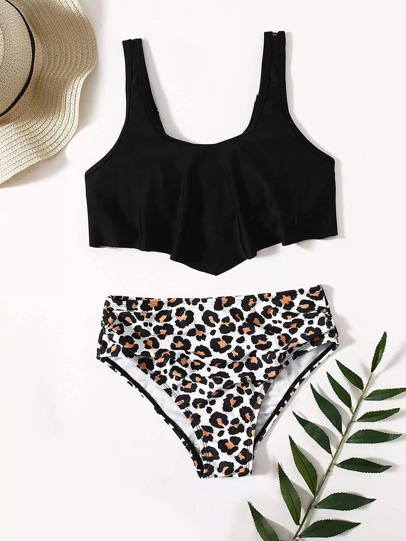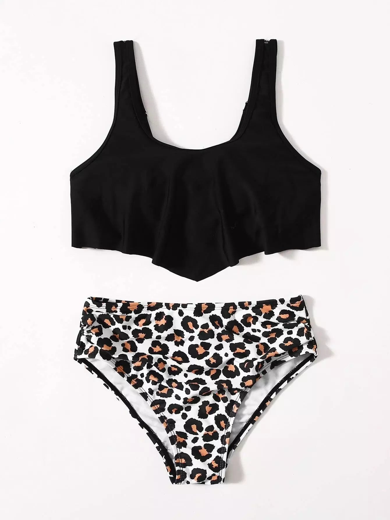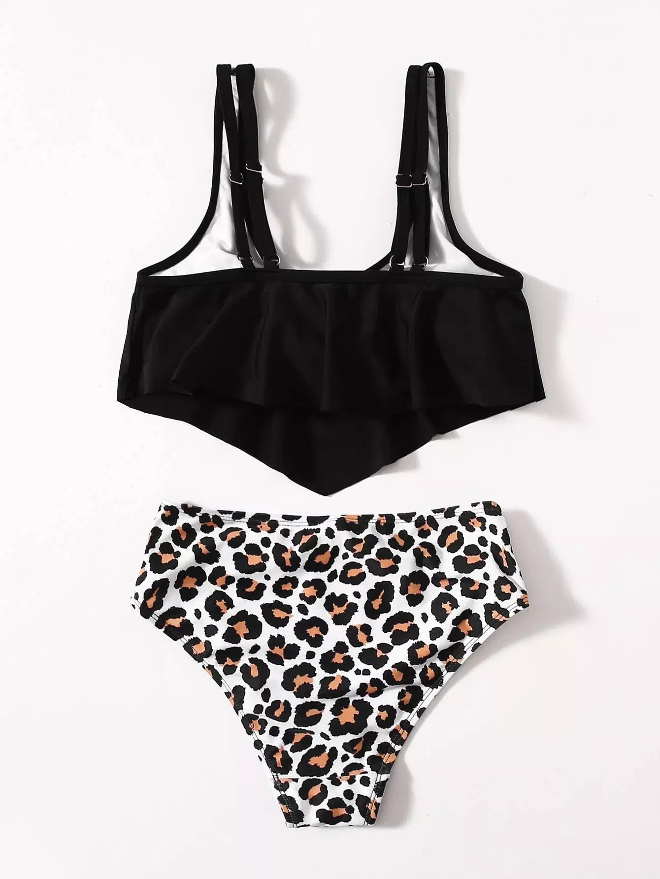 ملابس سباحة بيكيني بناتي بطبعة كشكش للبنات