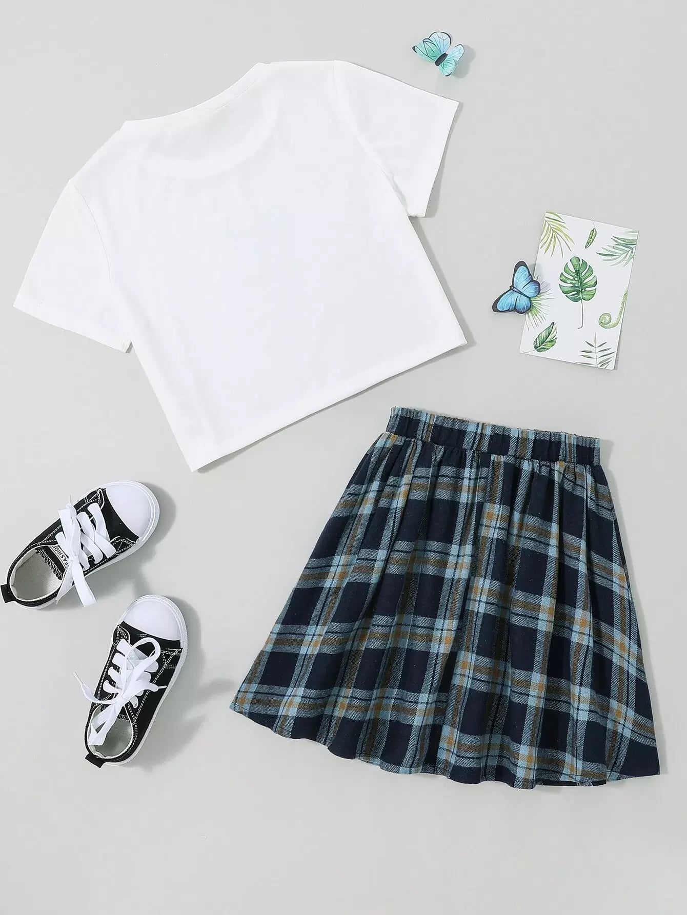 تي شيرت بطبعة حروف وفراشات للبنات وتنورة منقوشة بطبعة فراشات