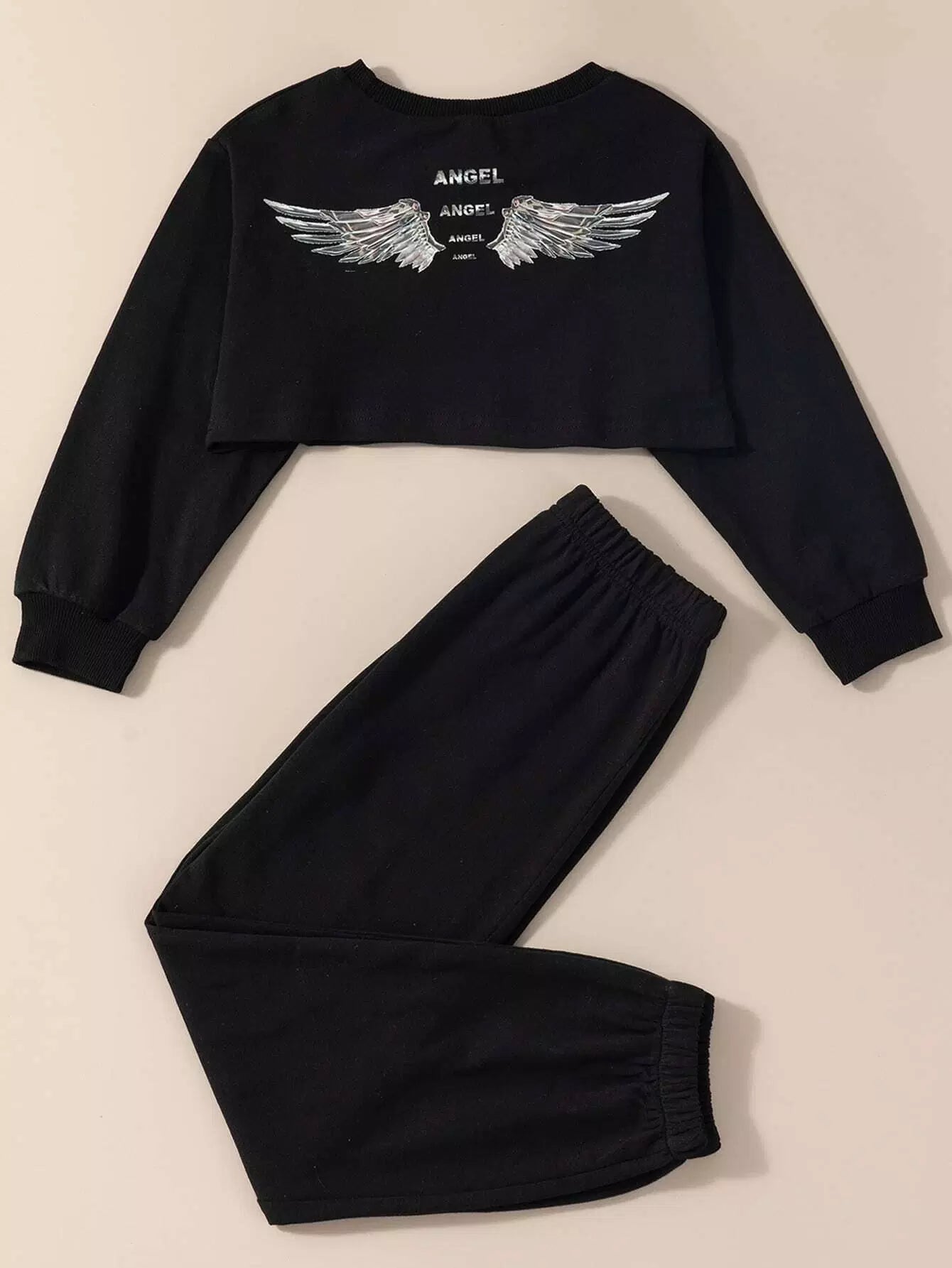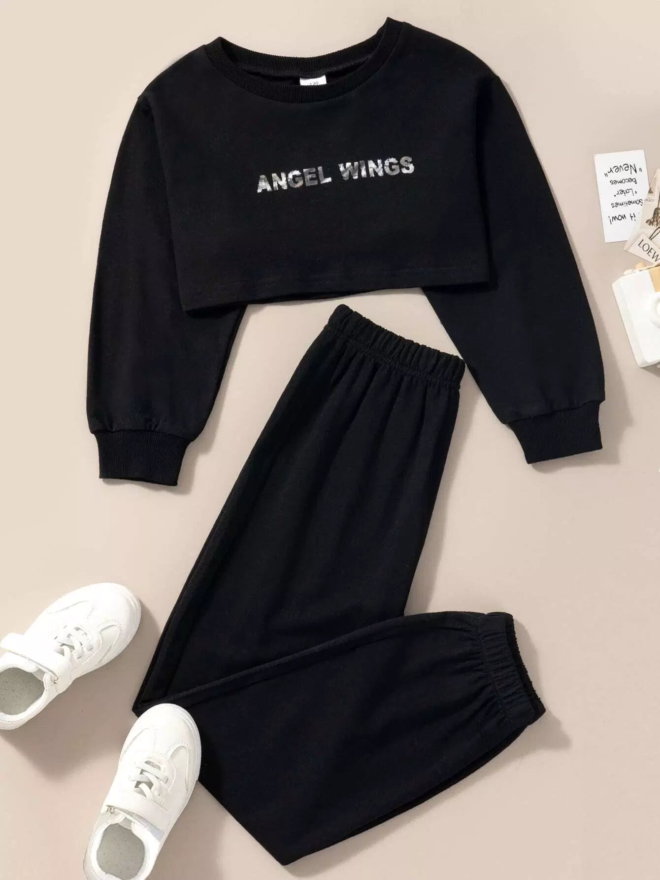 الأطفال - سويت شيرت وبنطال رياضي برسومات حروف للفتيات