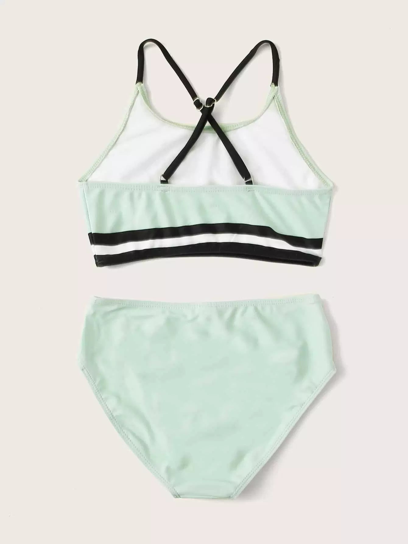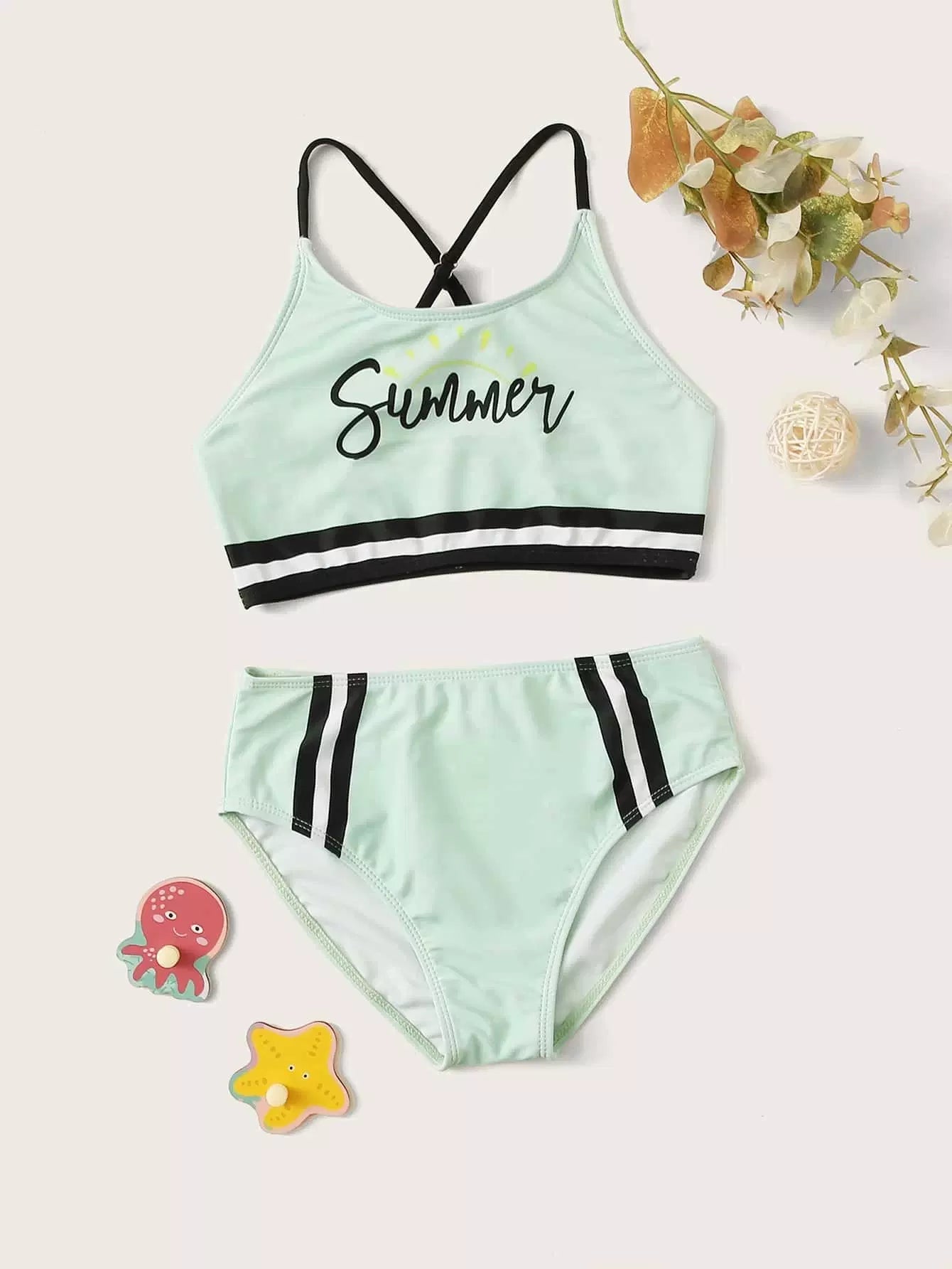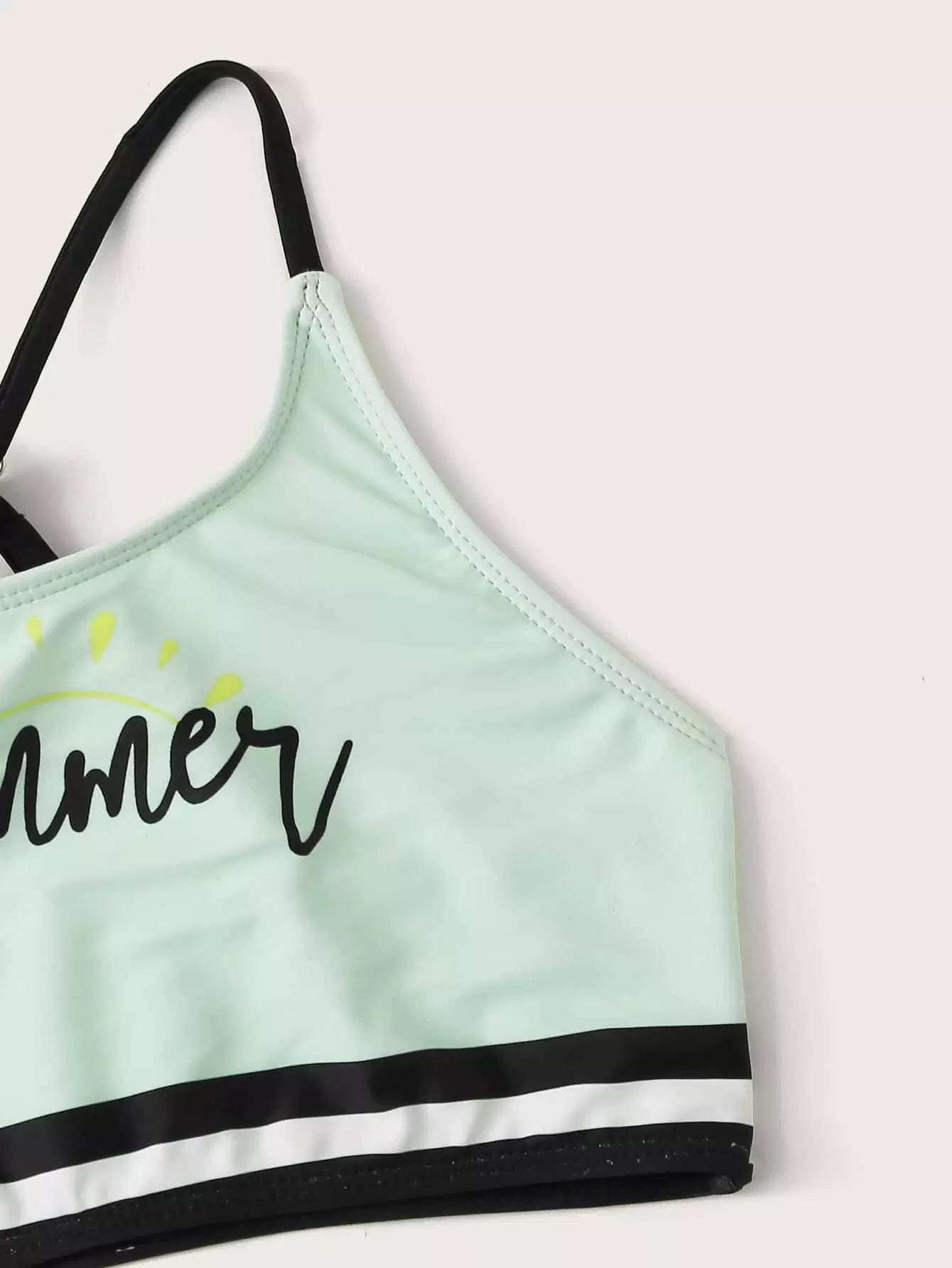 بلوزة برسومات حروف للفتيات مع طقم بيكيني عالي الخصر
