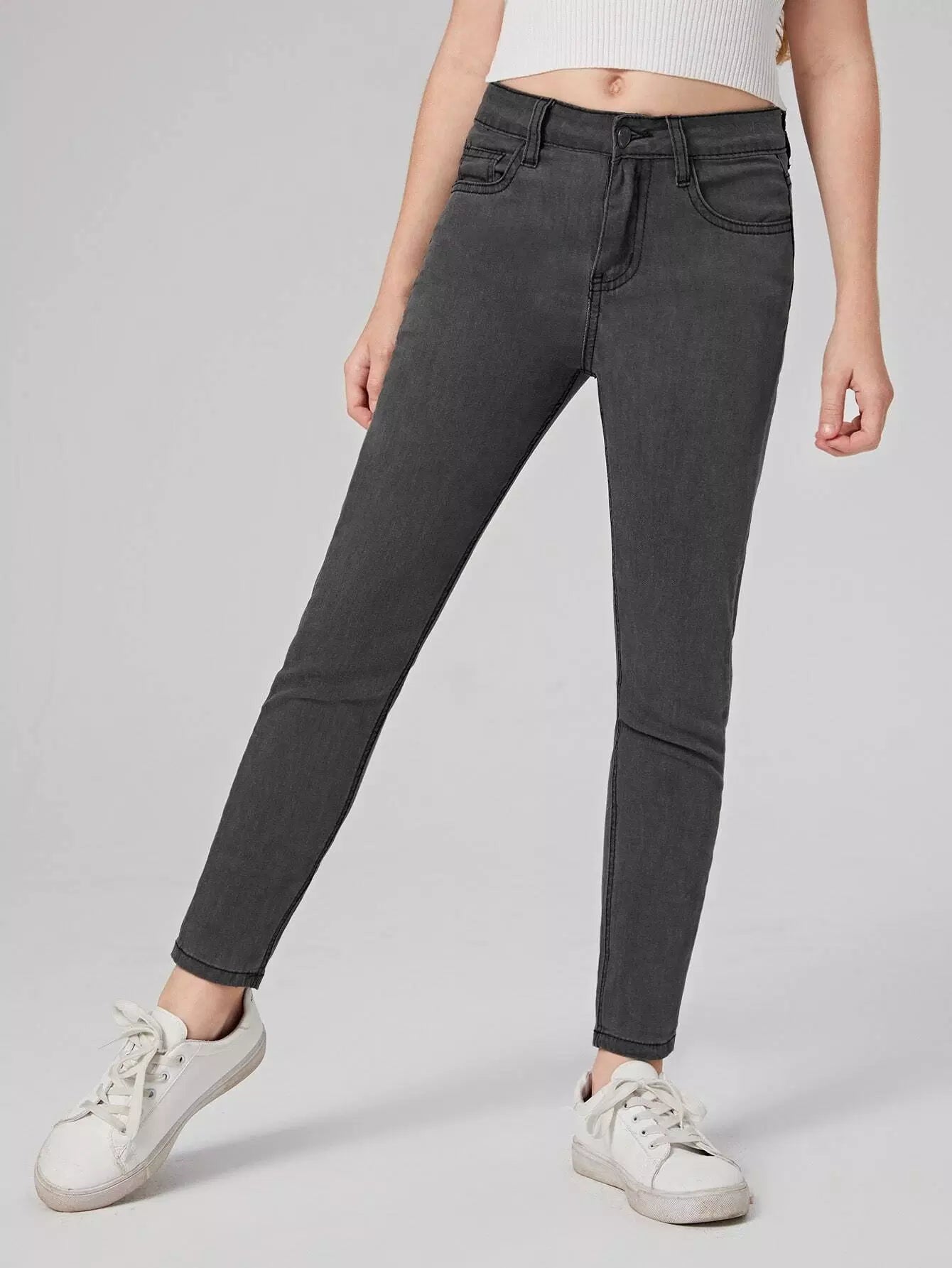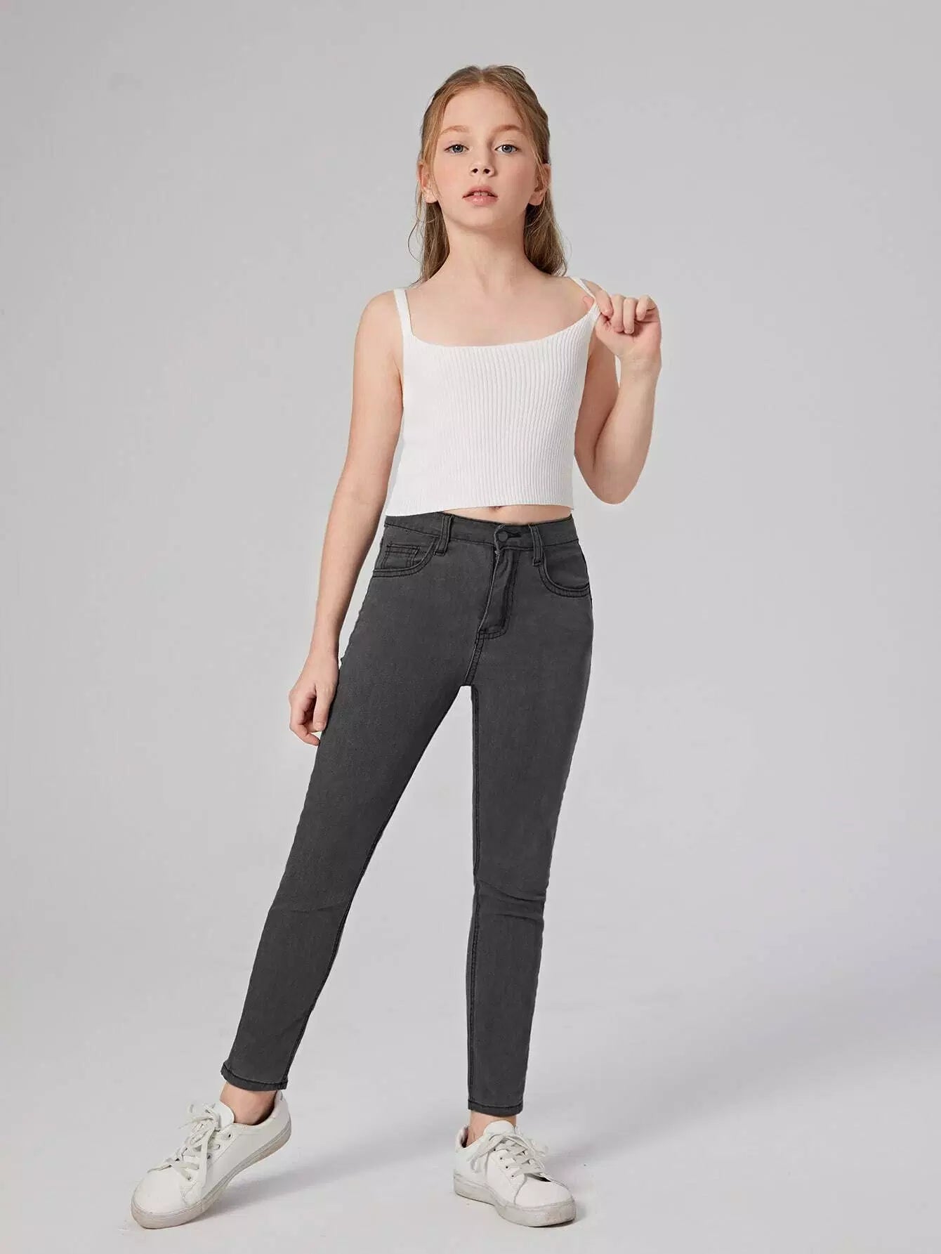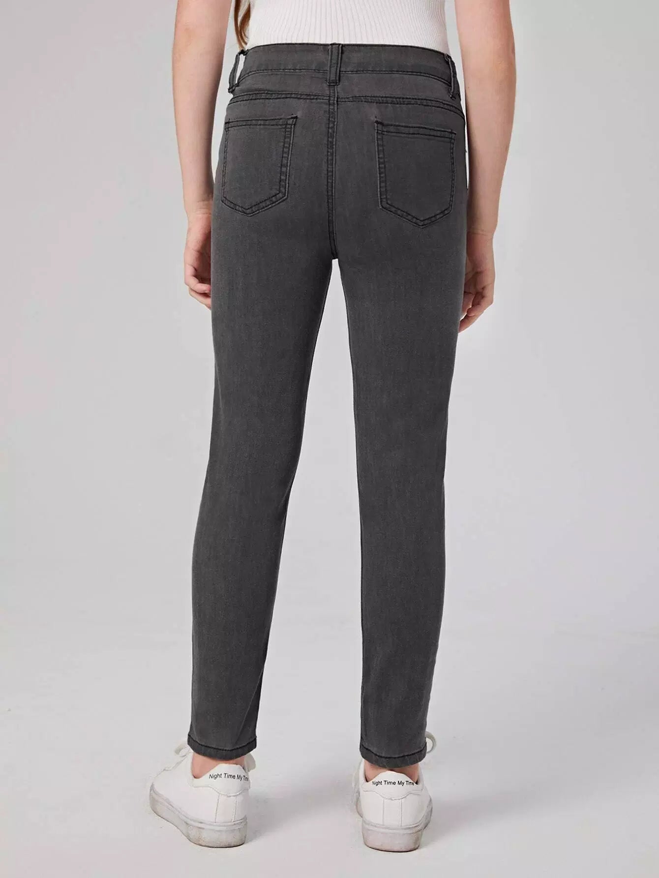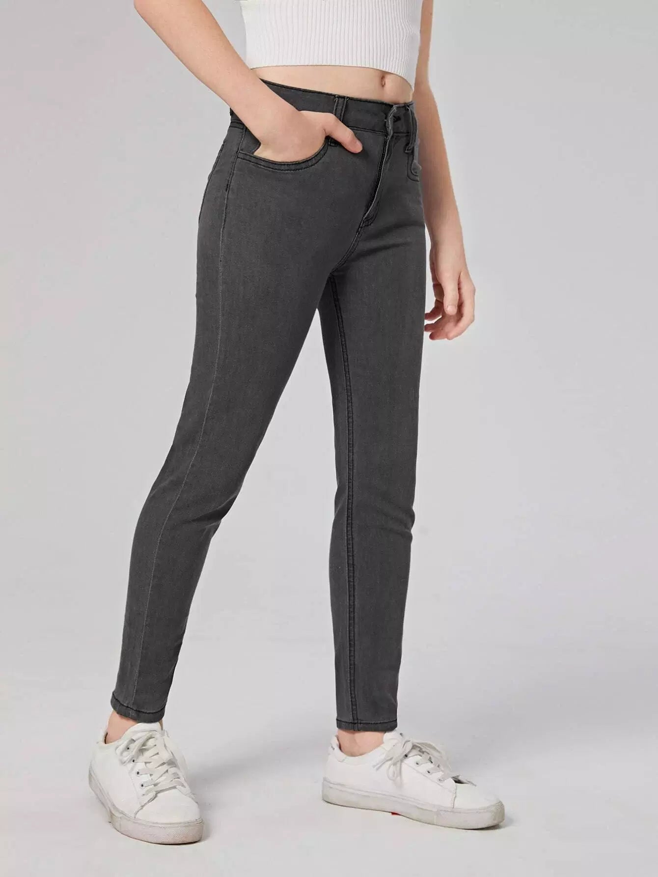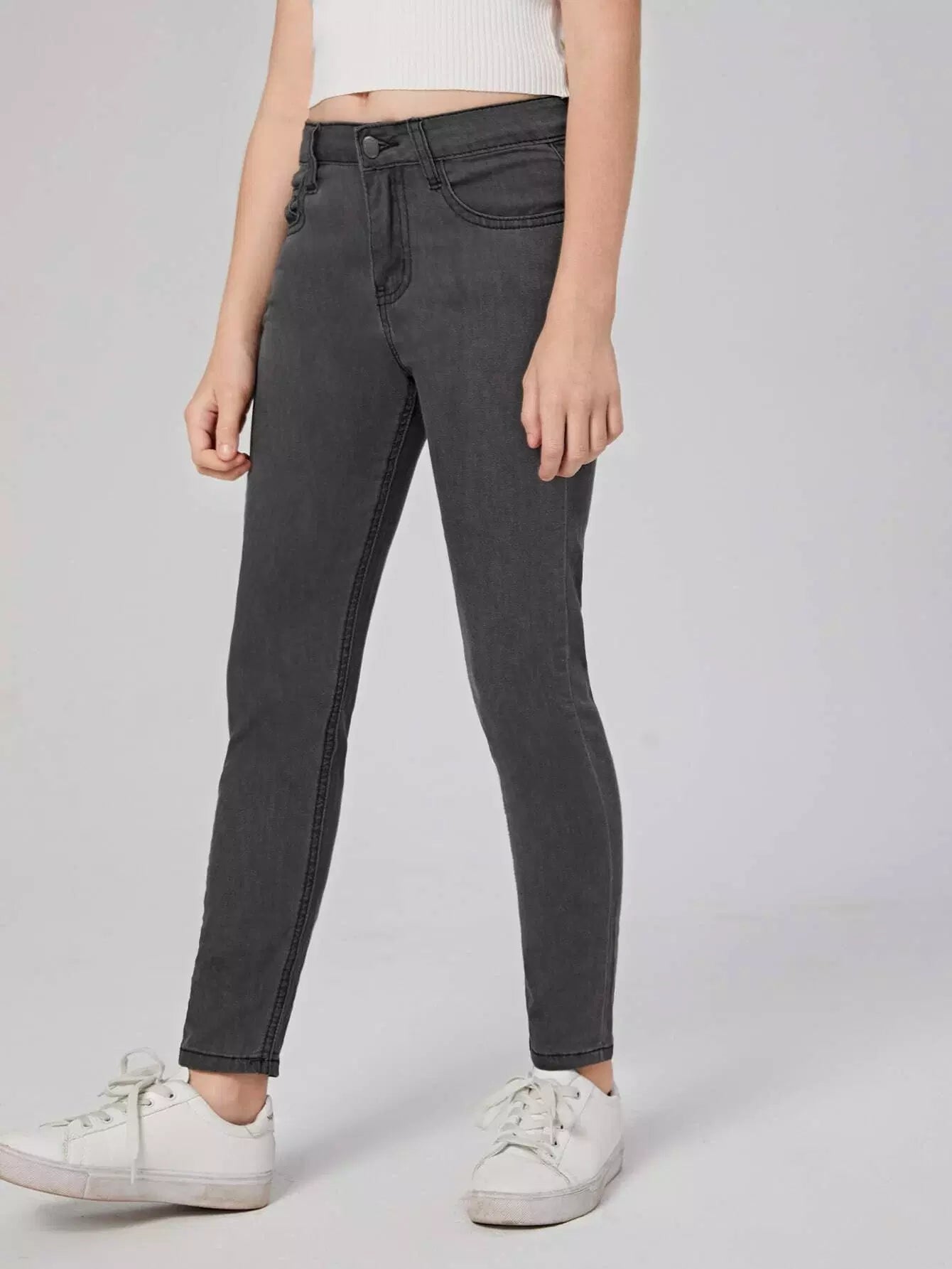 بنطلون جينز ضيق بخصر متوسط وجيب مائل للفتيات