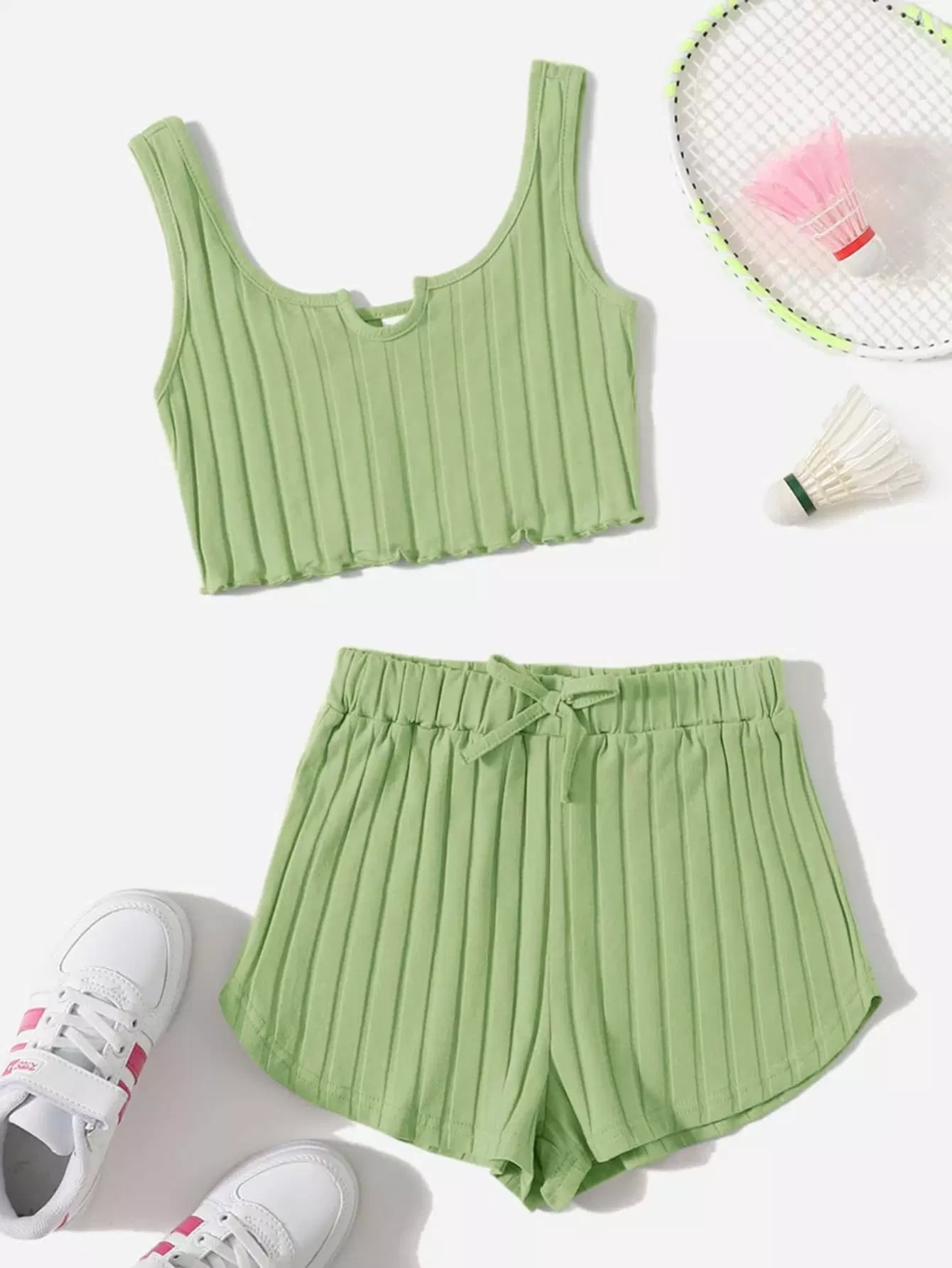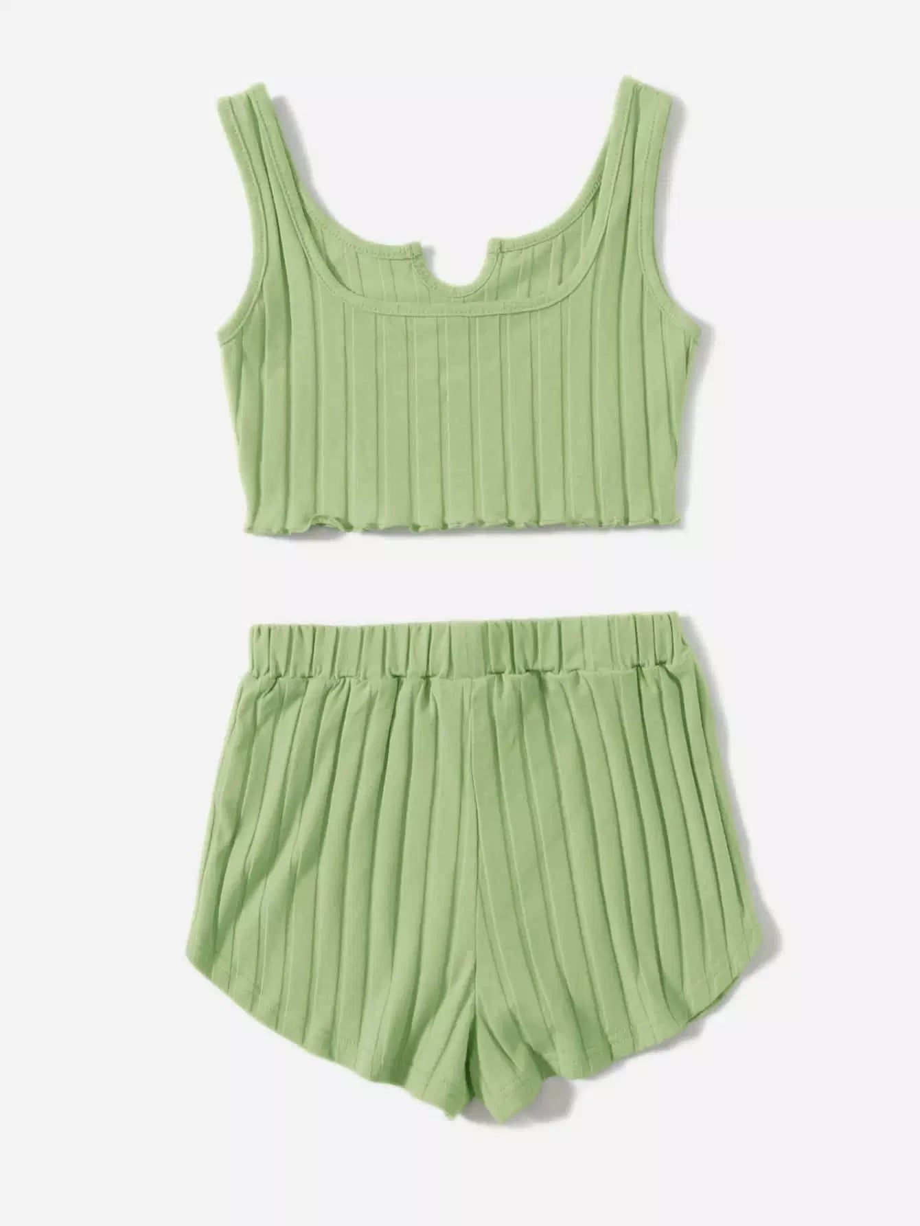 طقم تانك برقبة رقبة مفتوح للبنات وشورت قصير