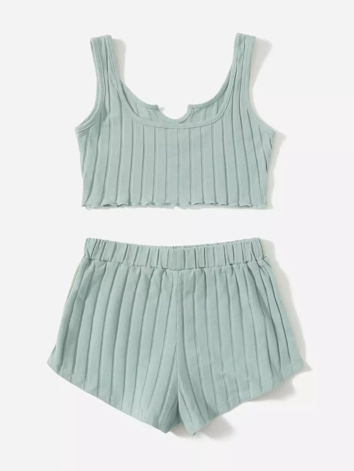 طقم تانك توب وشورت بفتحة رقبة واسعة للبنات