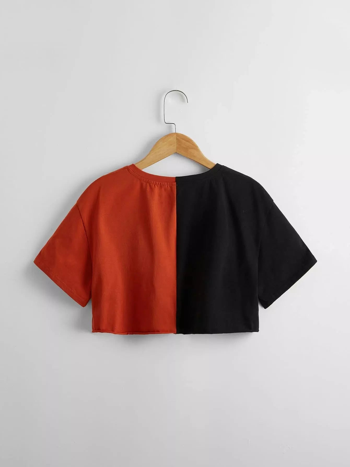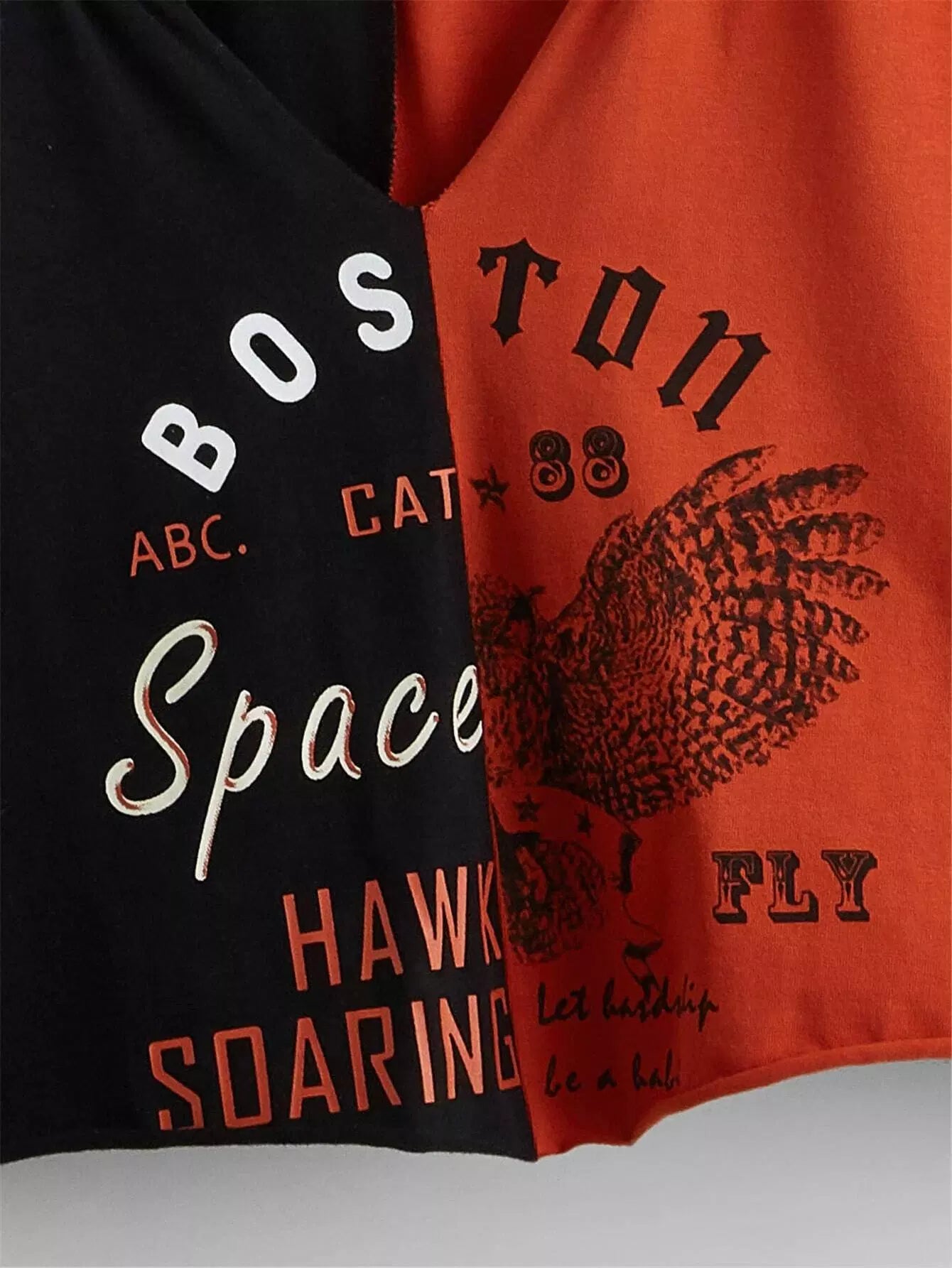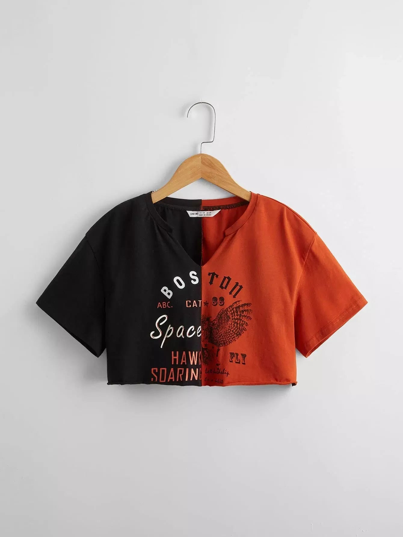 بلوزة بناتية بطبعة حروف وأجنحة بفتحة رقبة مدببة بلونين