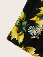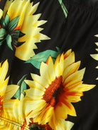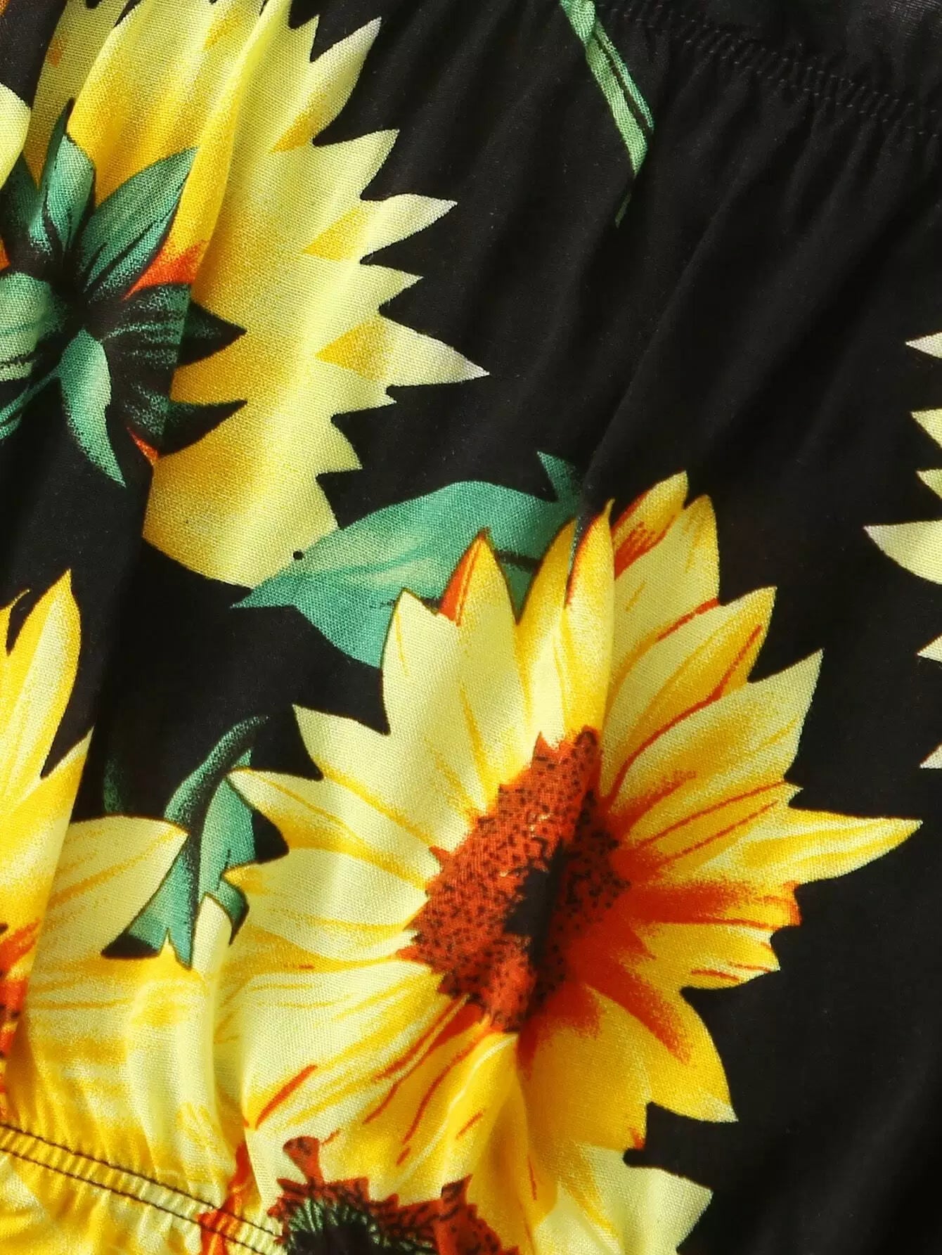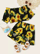 الأطفال - طقم شورت وقميص بدون أكتاف مكشكش مزين بطبعة عباد الشمس للفتيات