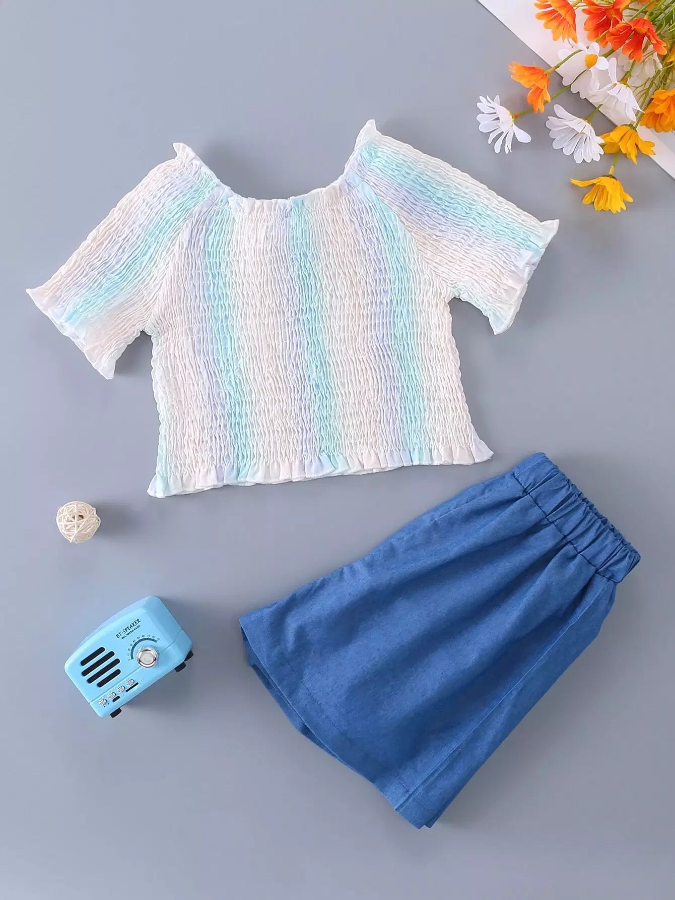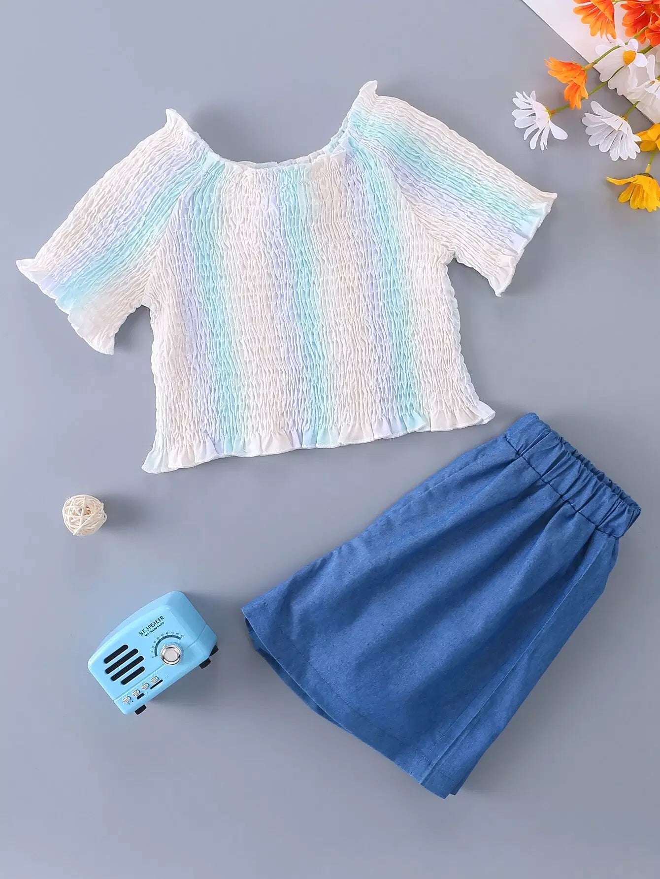 توب أومبيري شيرد للبنات مع شورت جينز قصير