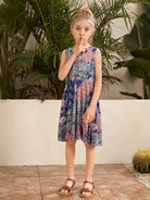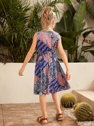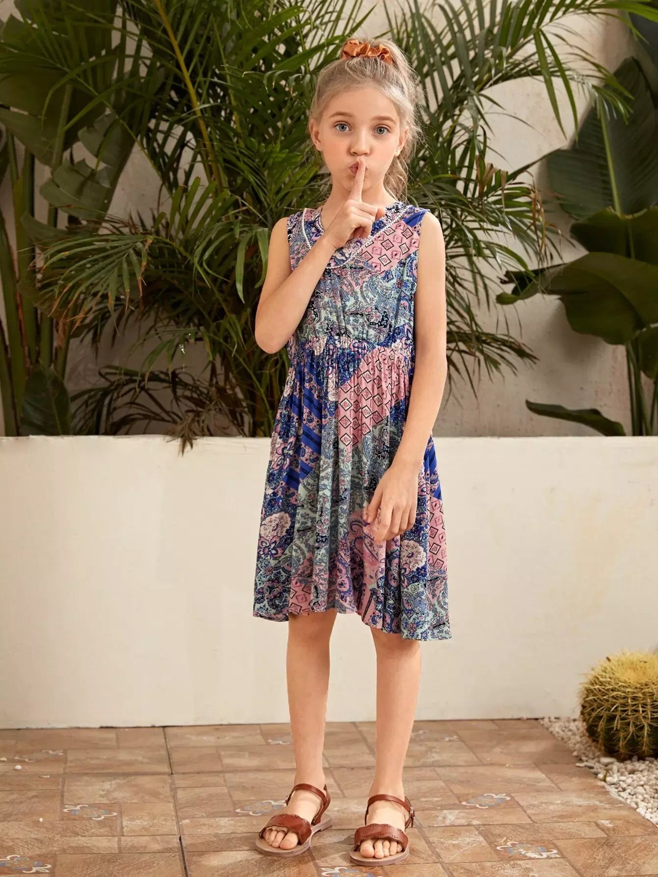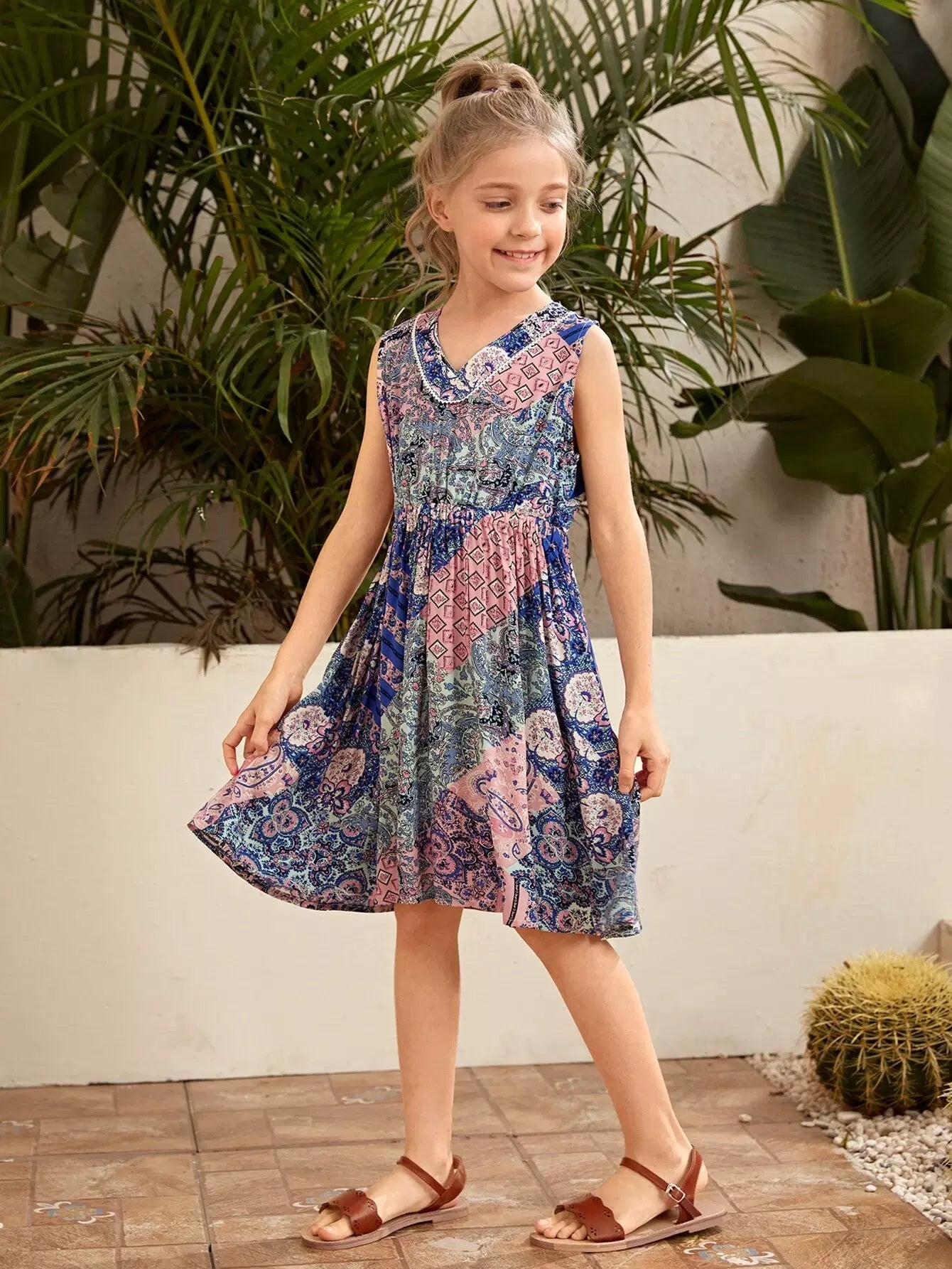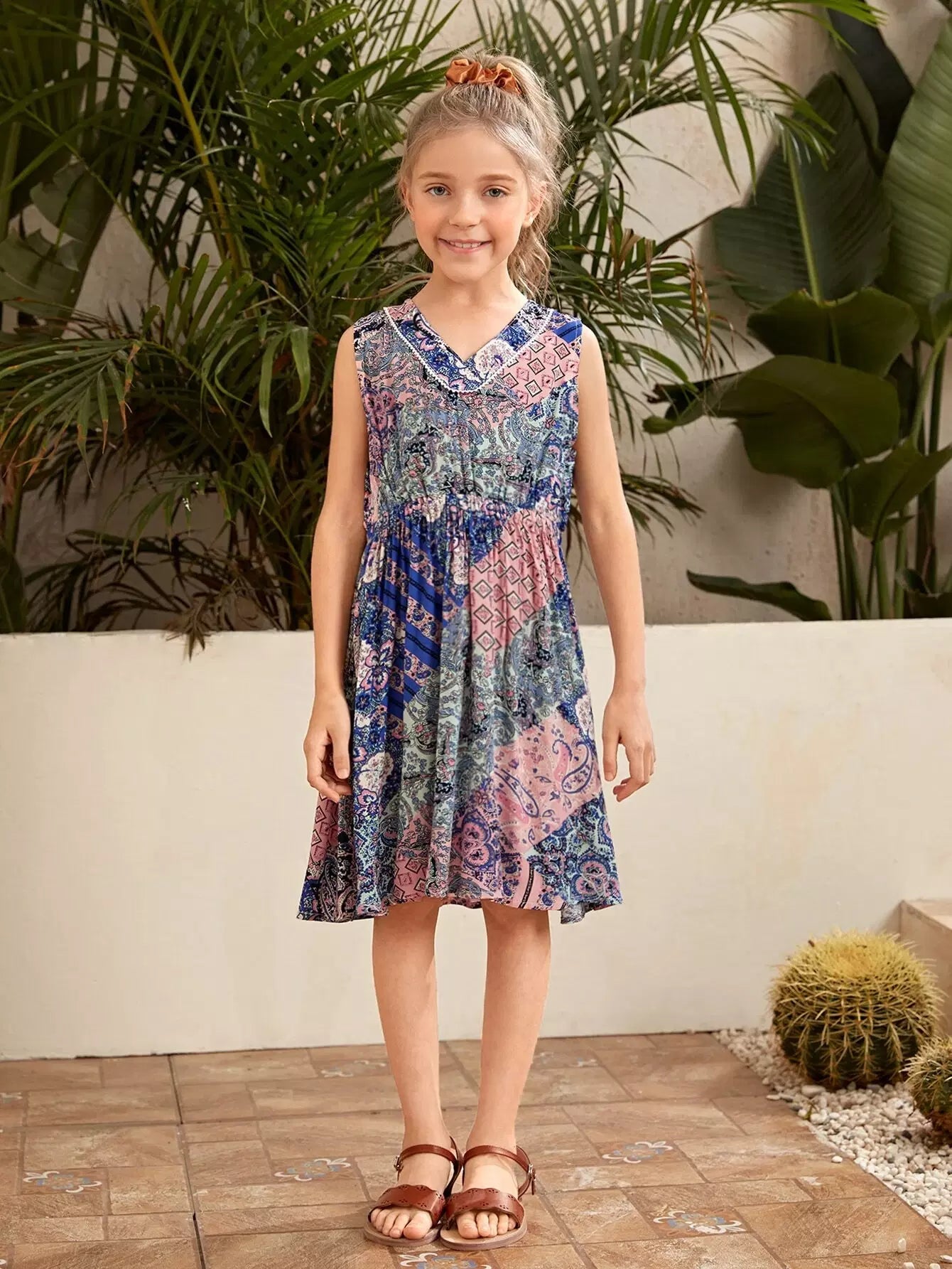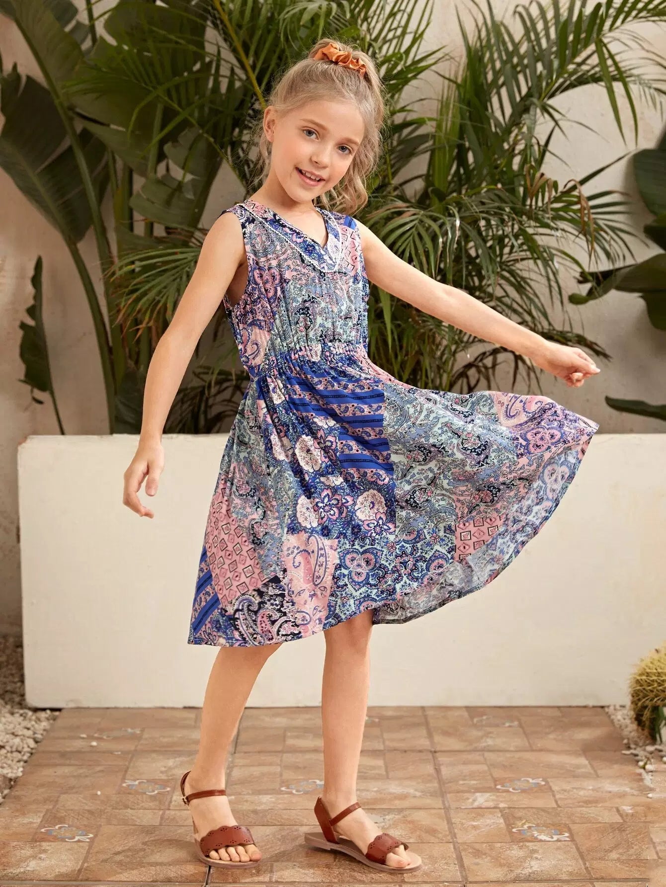 فستان بنات بطبعة بيزلي مرقع بنقشة مرقعة بحافة واسعة