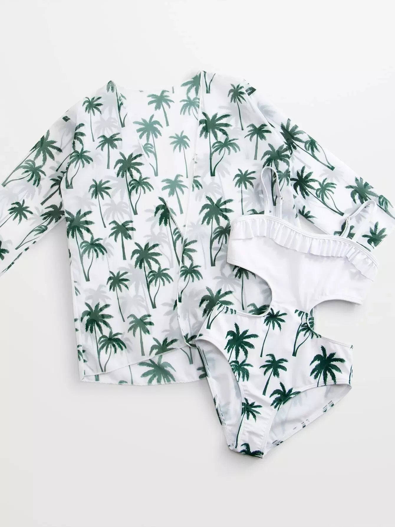 بدلة سباحة بناتي بطبعة شجرة النخيل بقطعة واحدة مع كيمونو