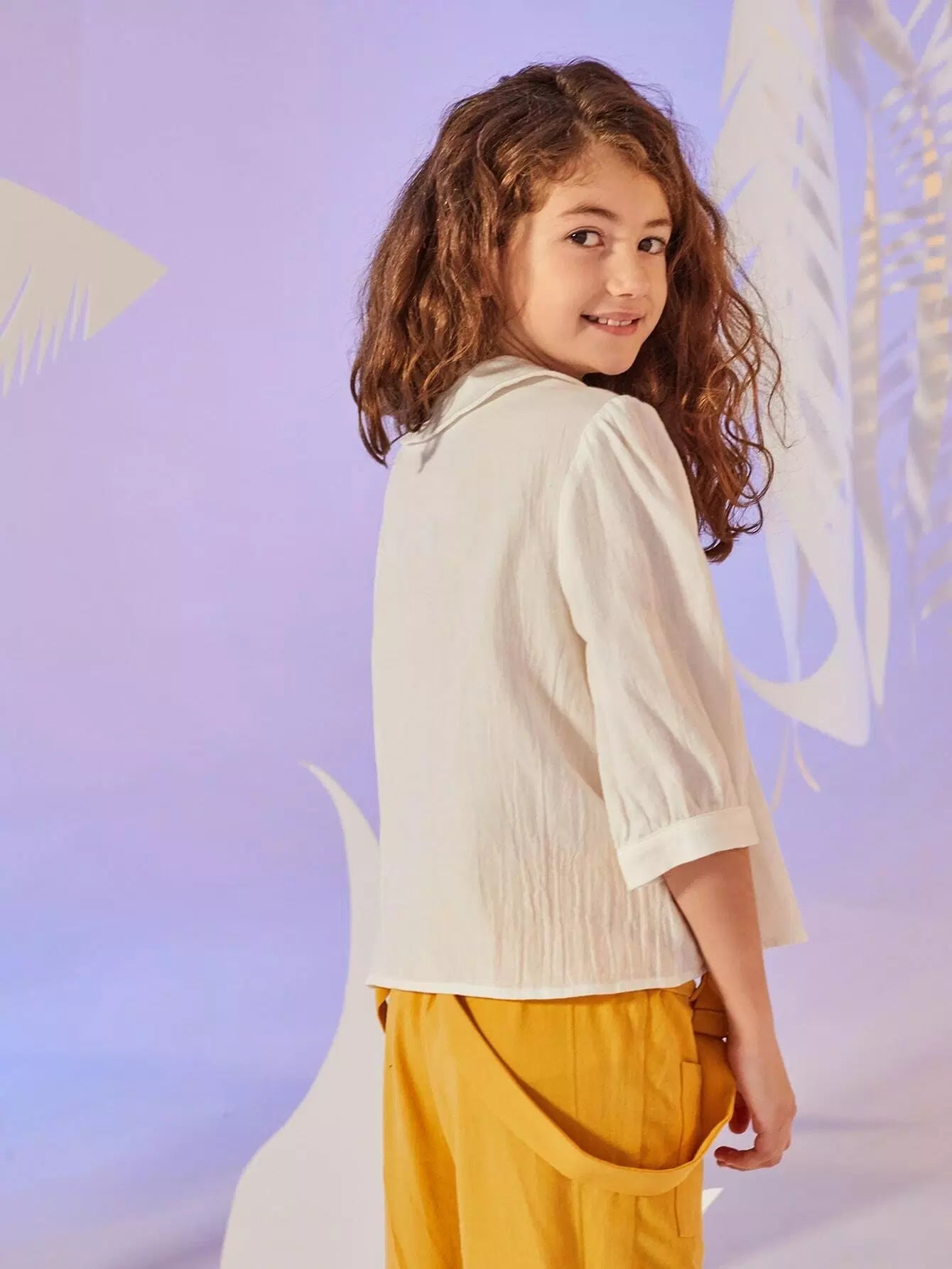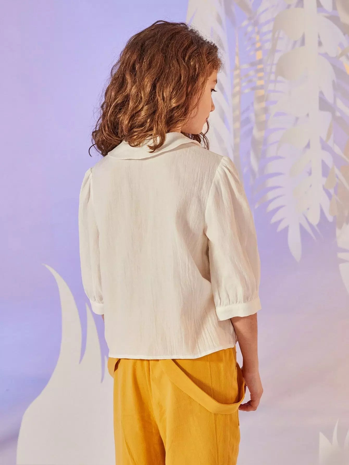 بلوزة مطرزة من الأمام بياقة بيتر بان للبنات