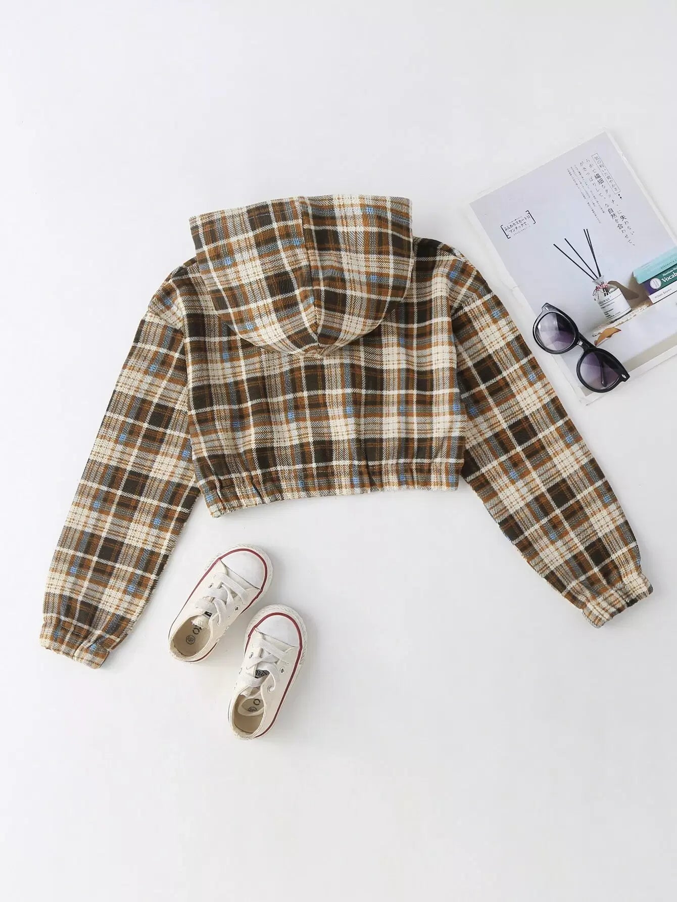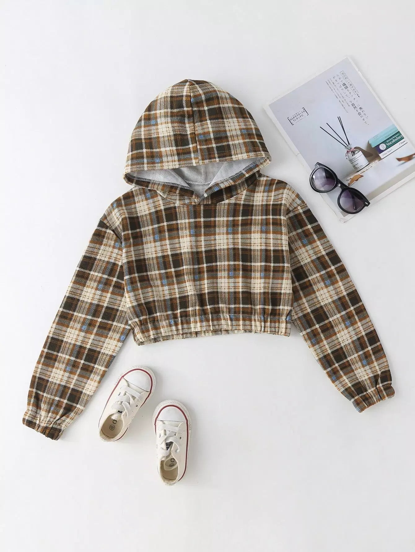 سويت شيرت بنات بأكمام منقوشة بغطاء رأس منقوش بغطاء رأس من الأسقف