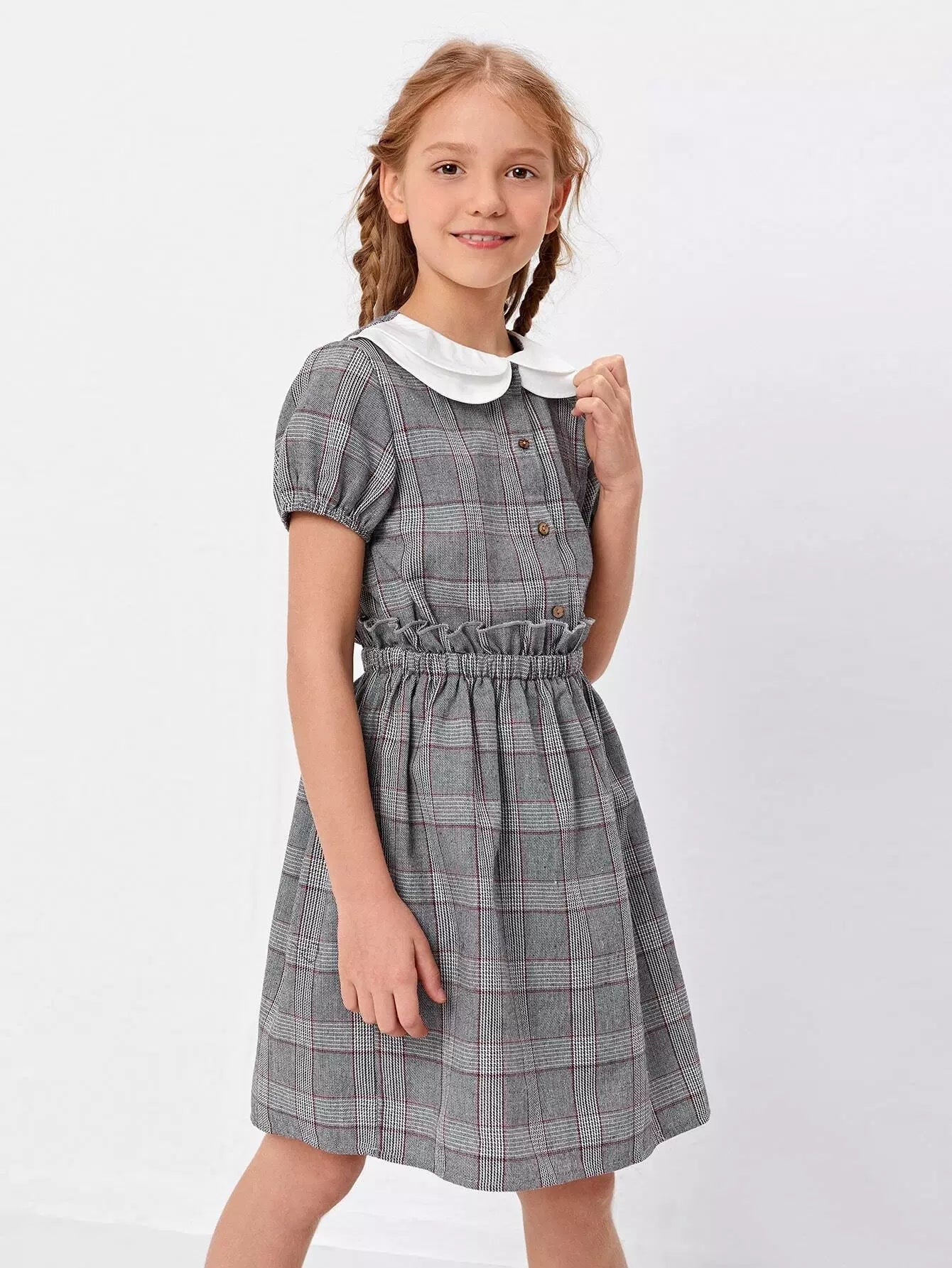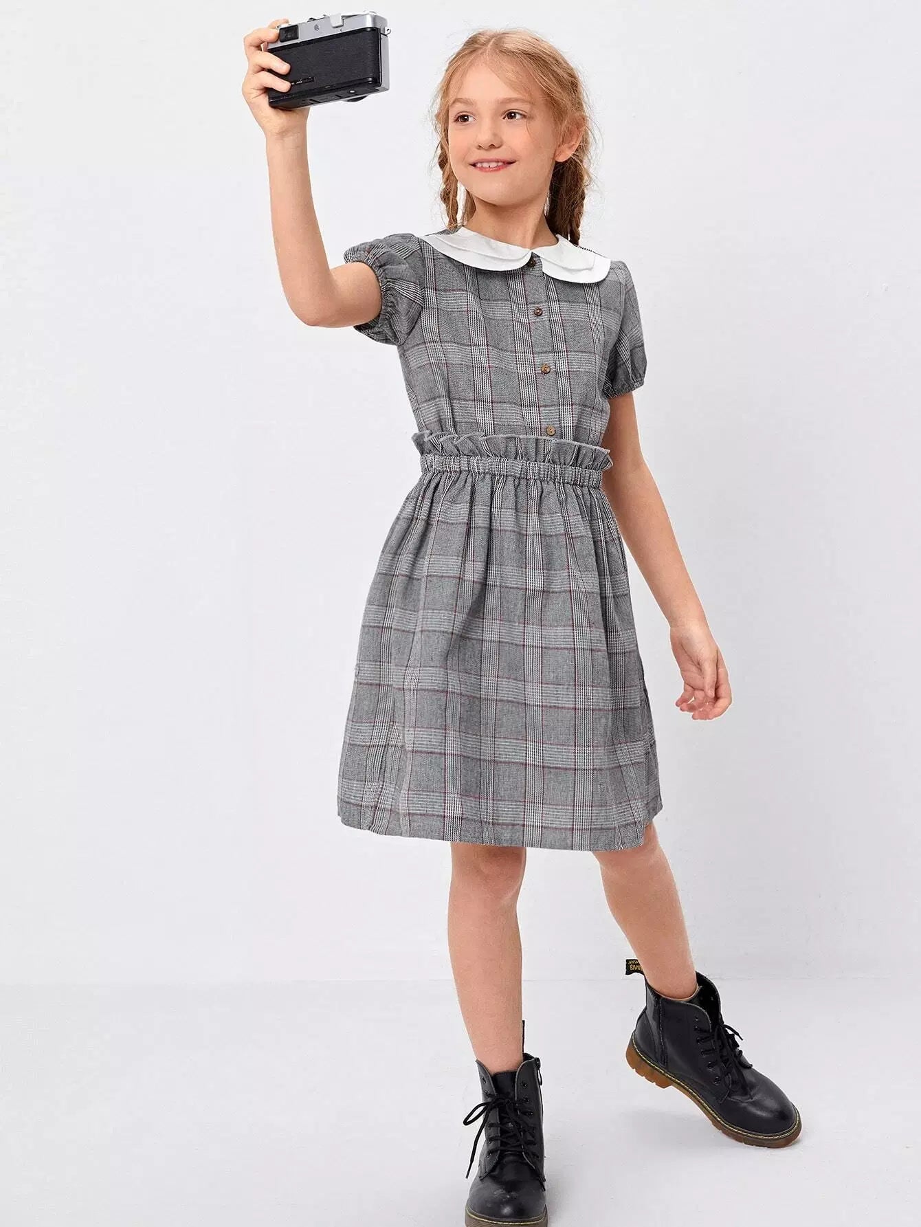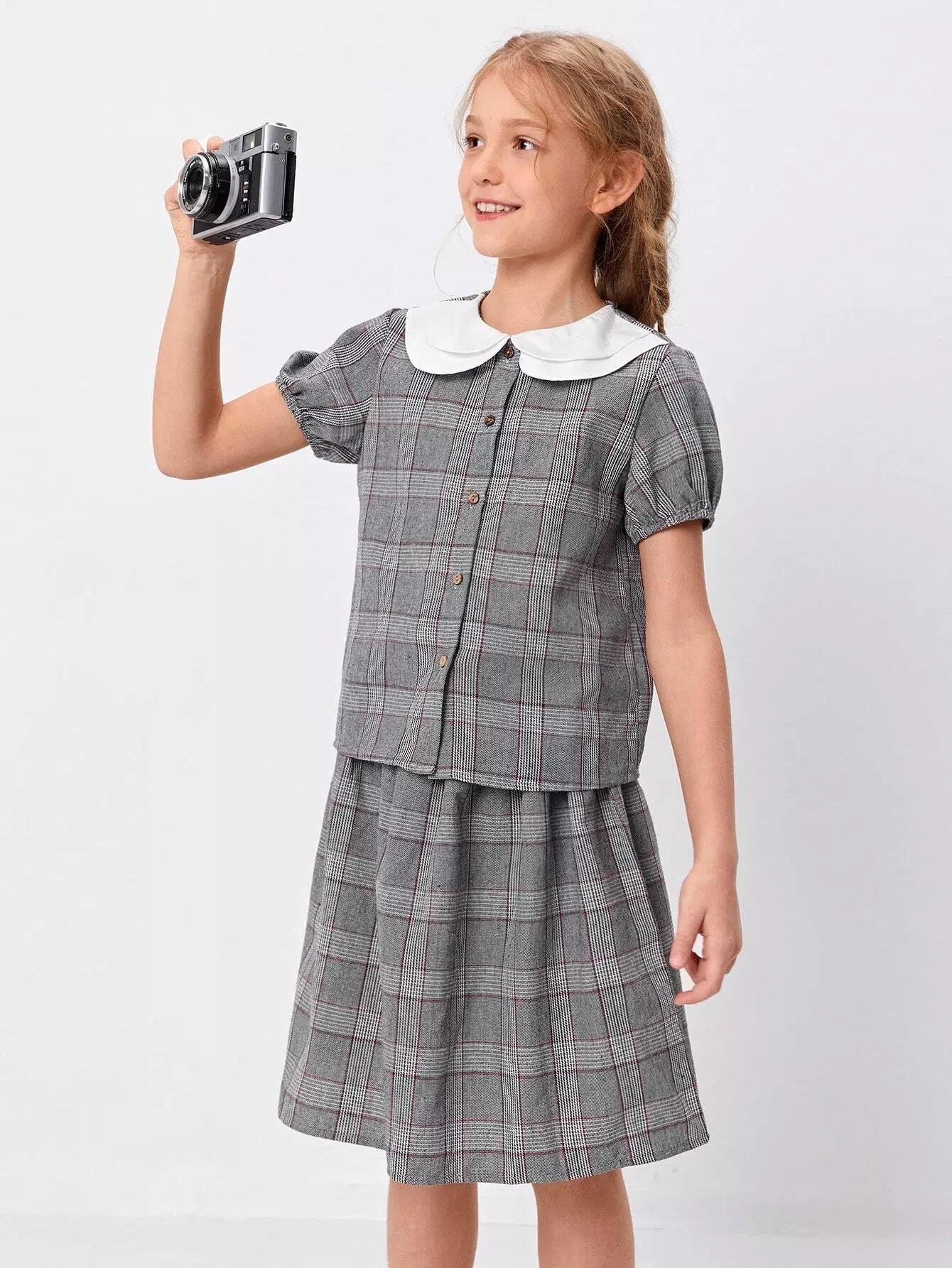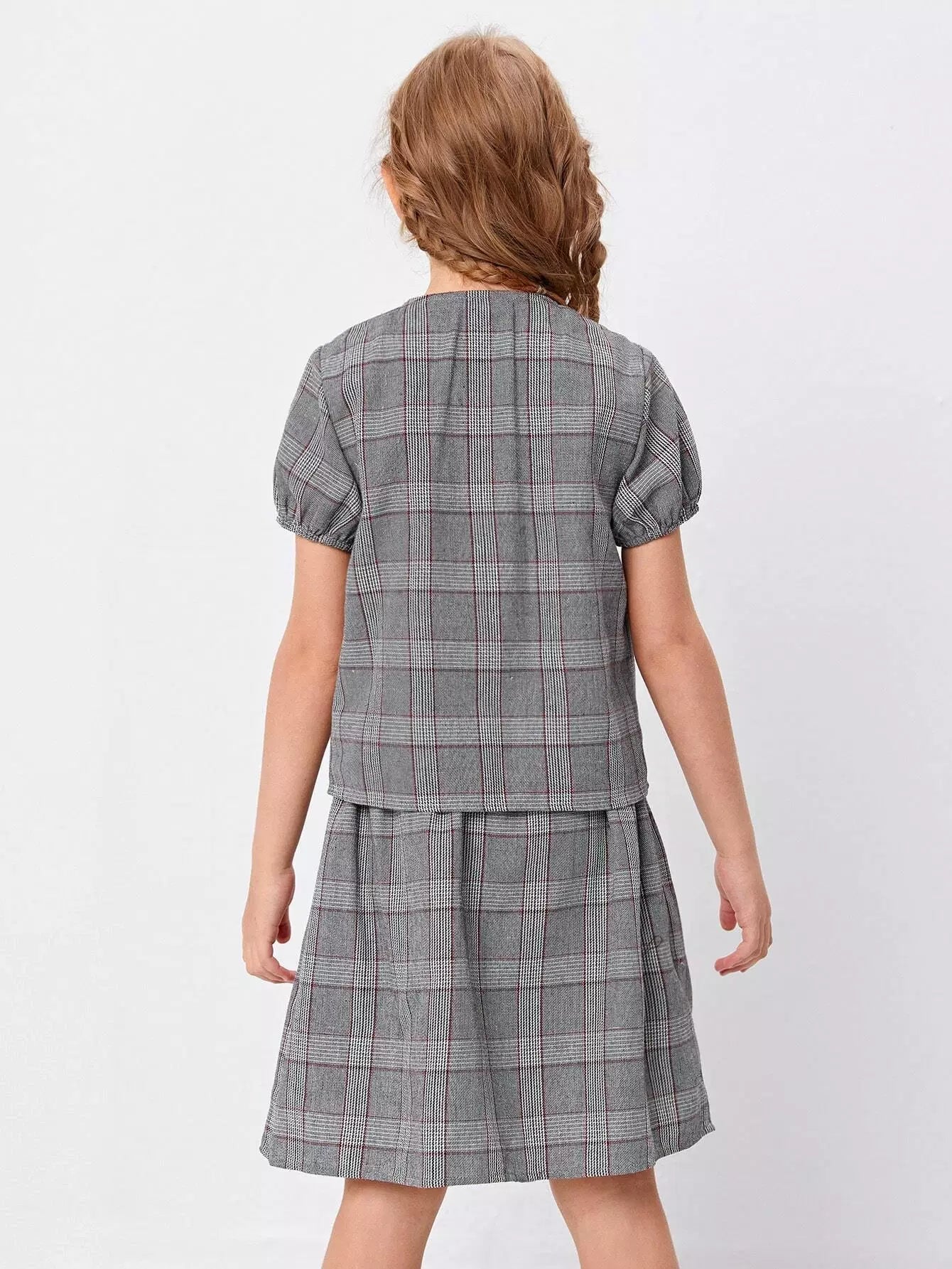 طقم بلوزة منقوشة وتنورة على شكل كيس ورقي للبنات