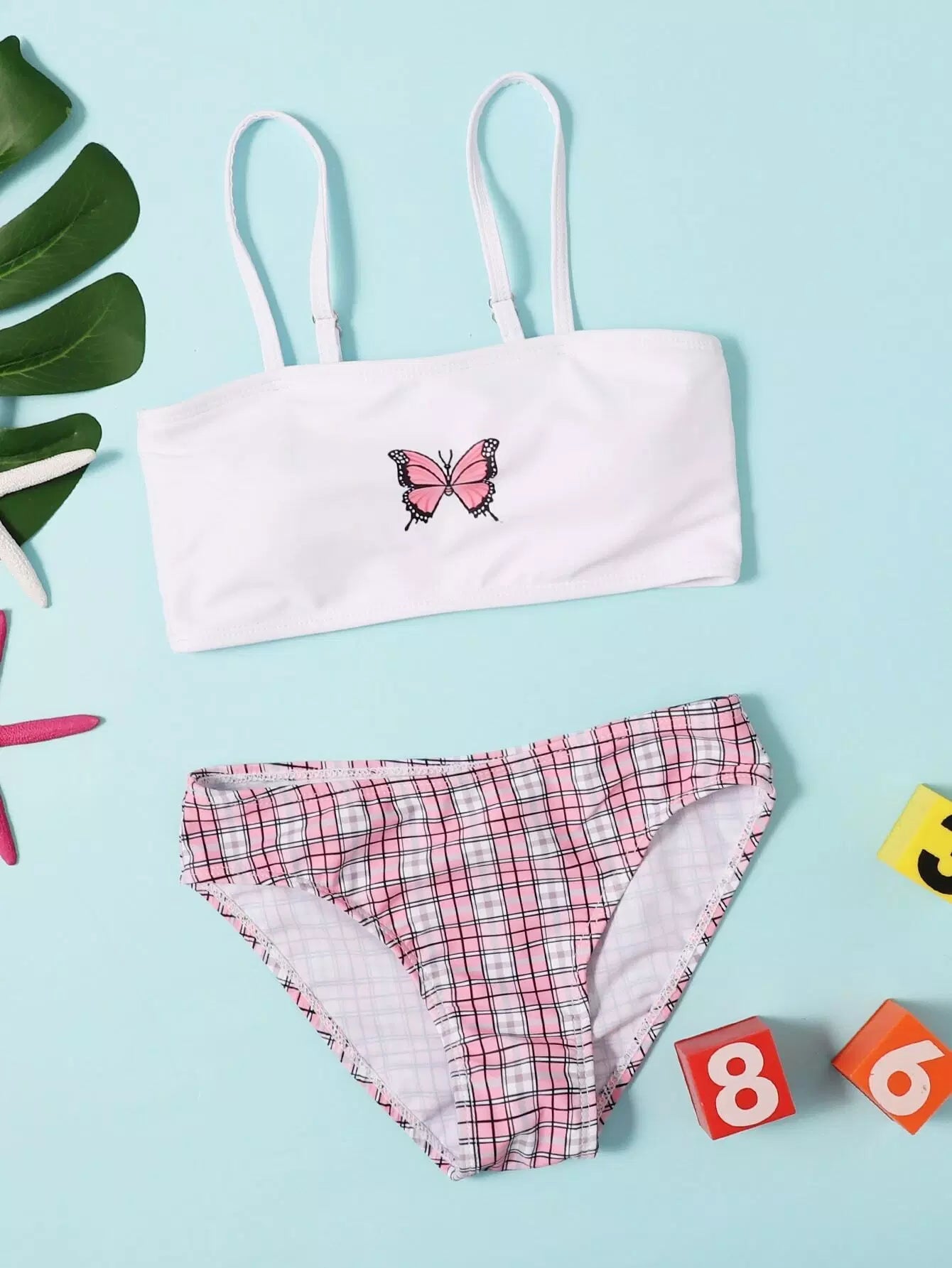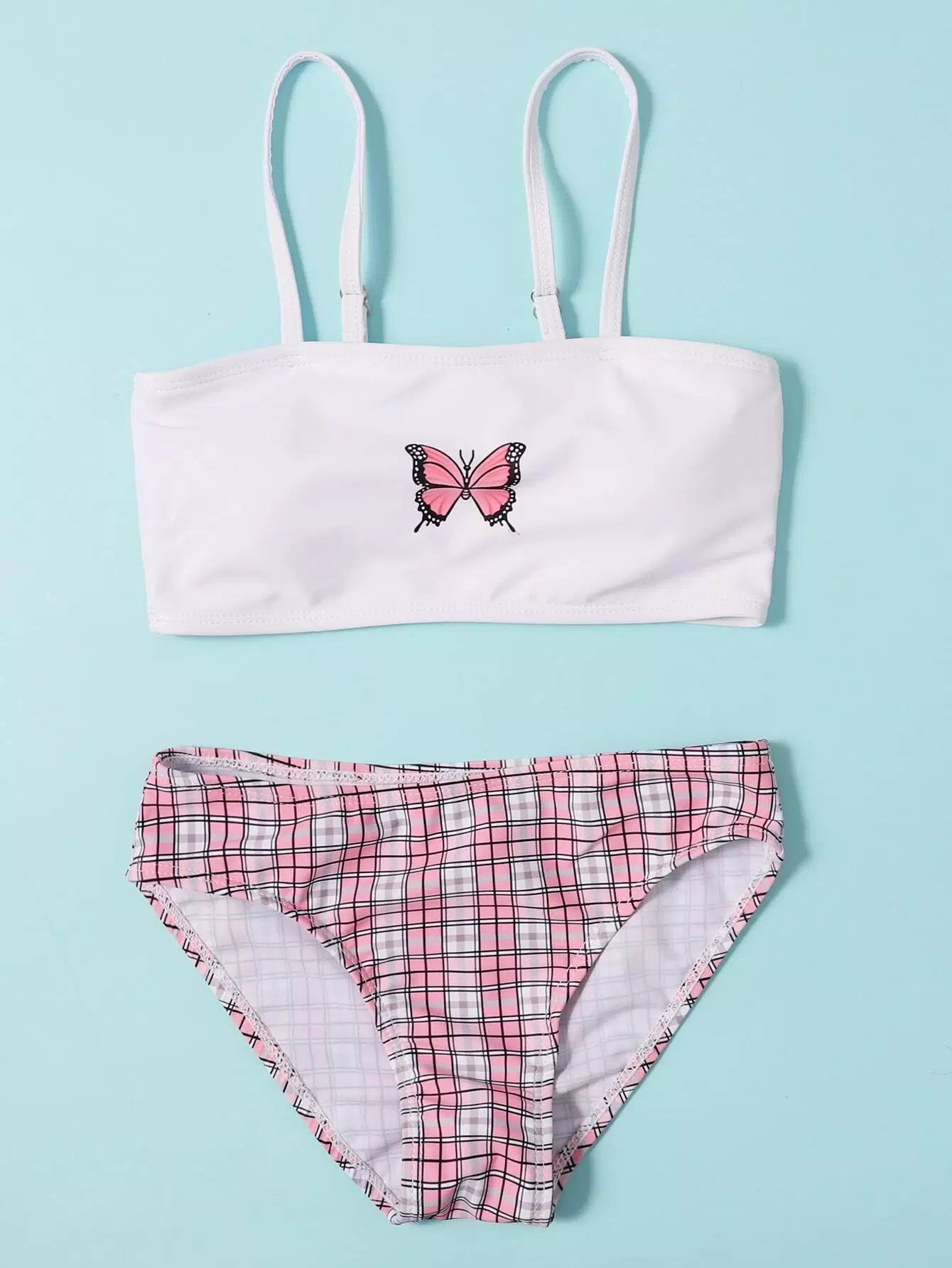 ملابس سباحة بيكيني منقوشة بطبعة فراشات للبنات