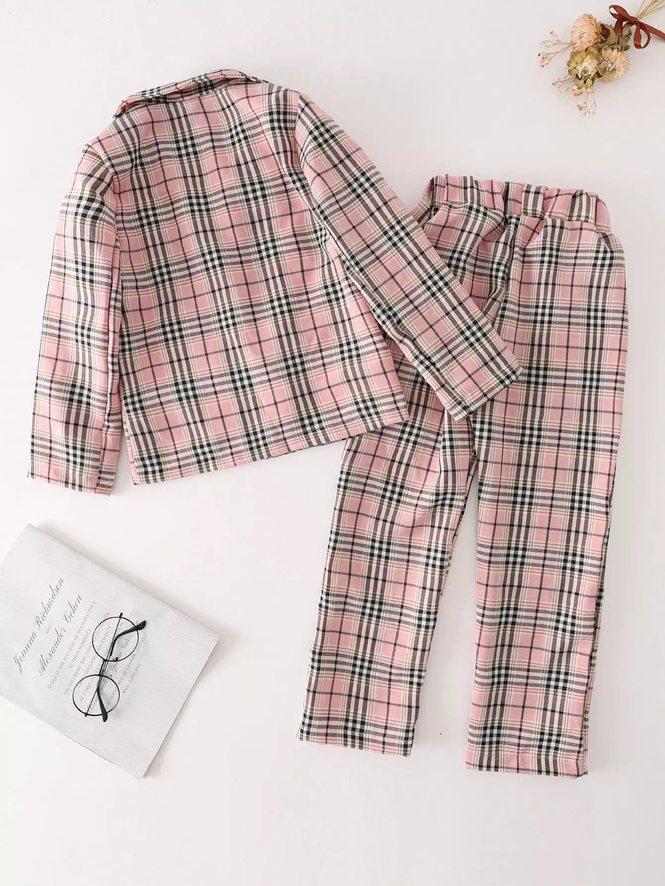 سترة وبنطلون منقوشة بجيبين أمامي منقوشين للبنات