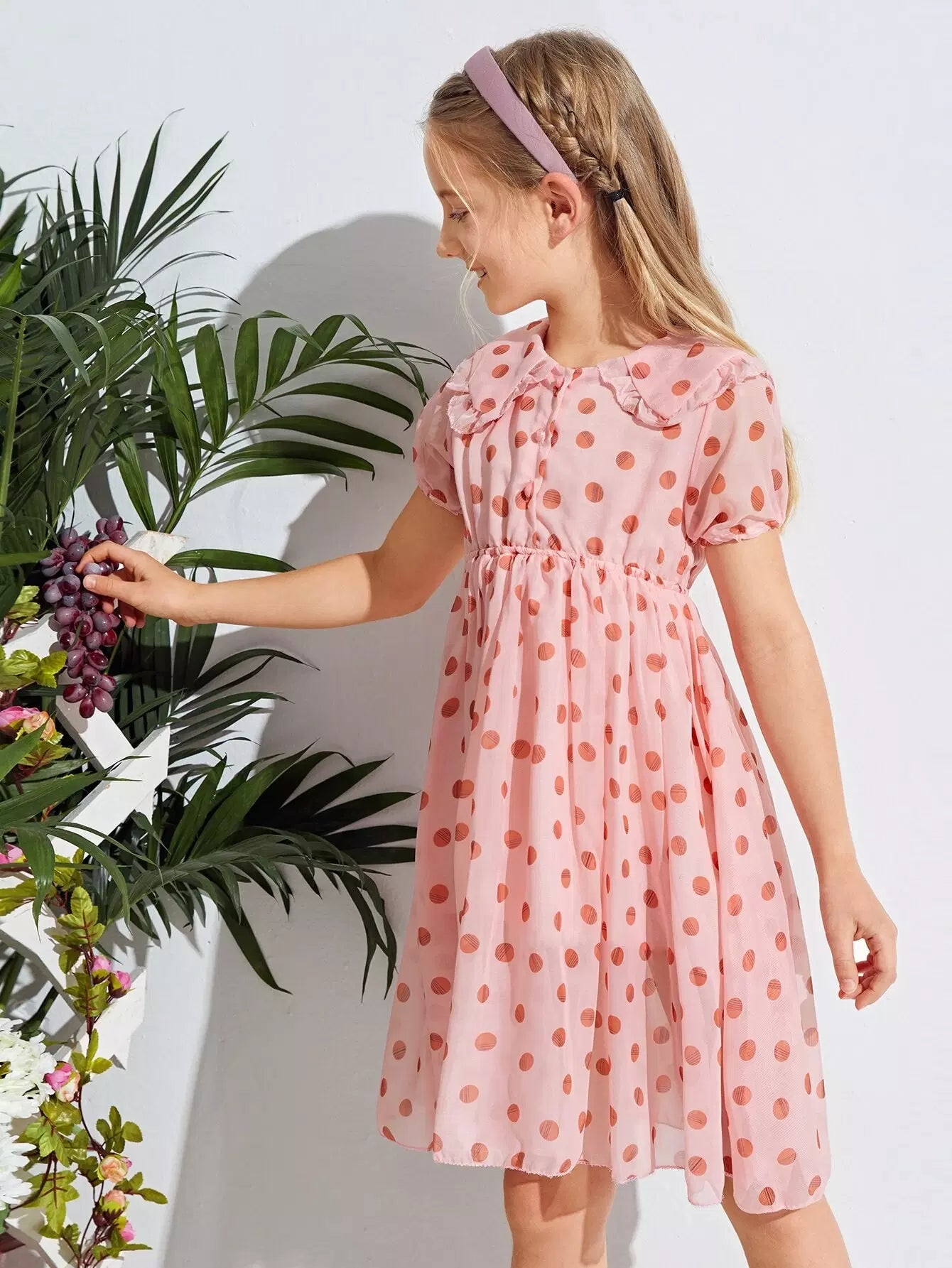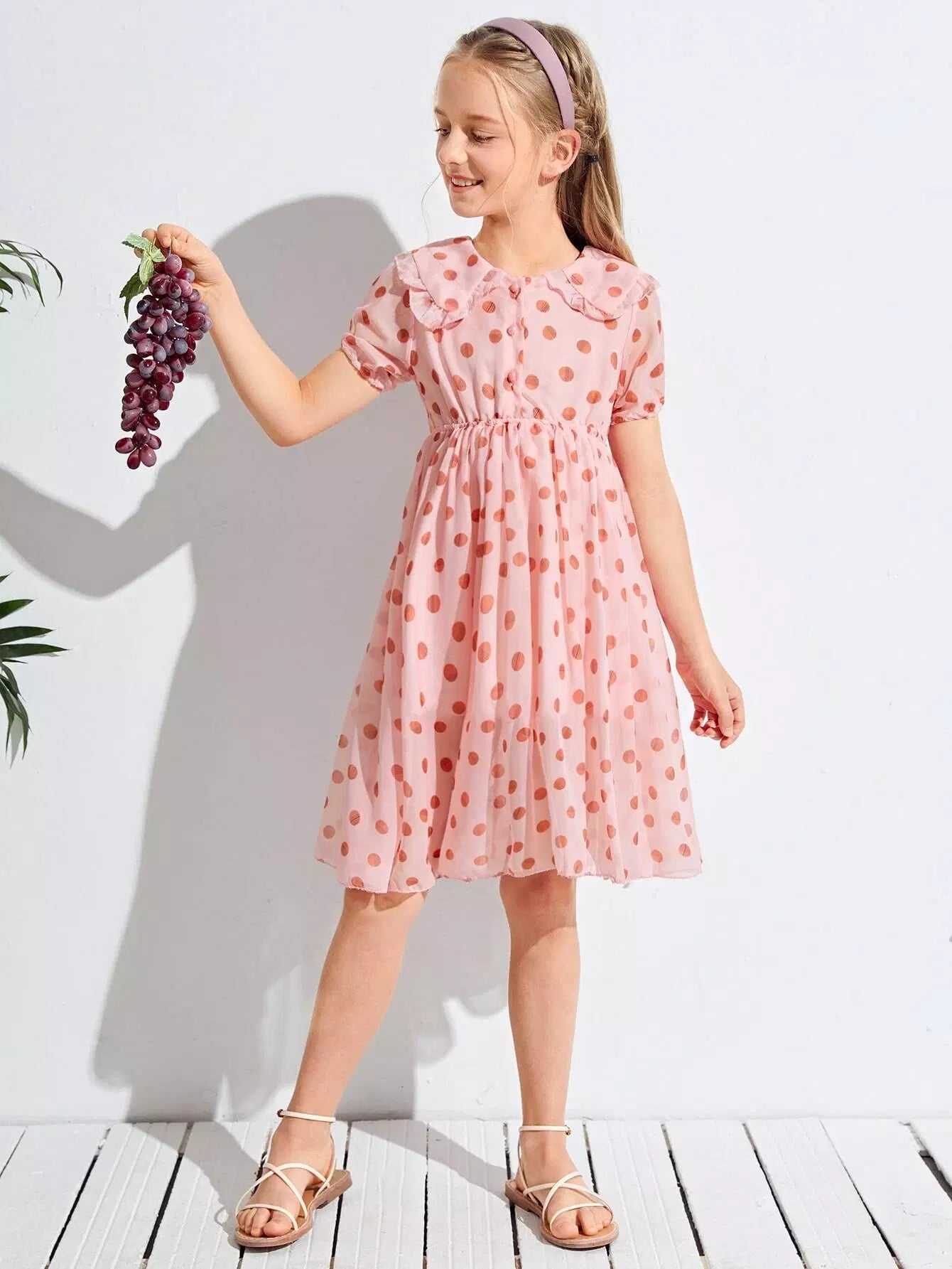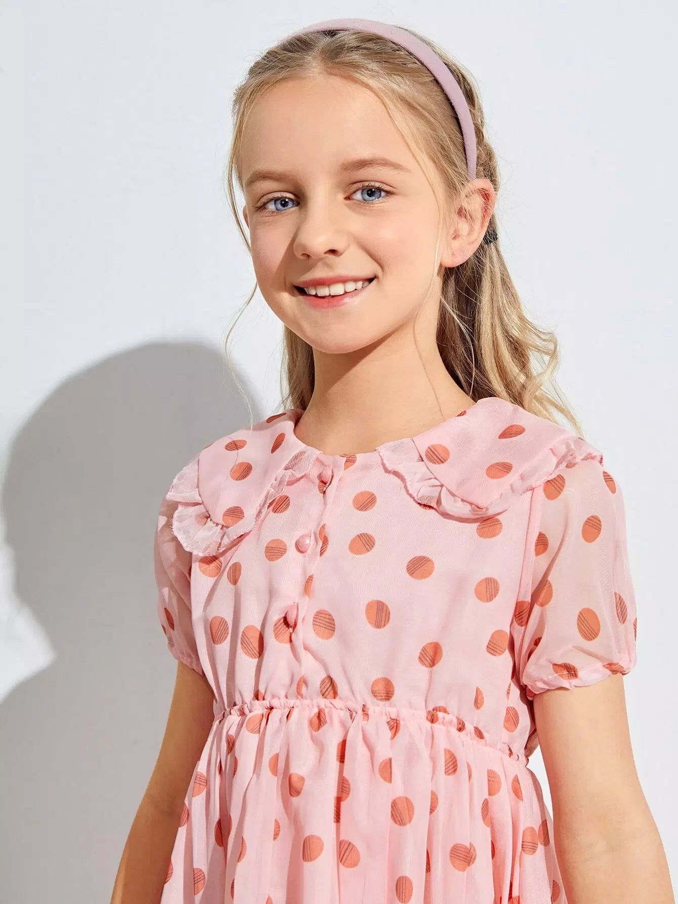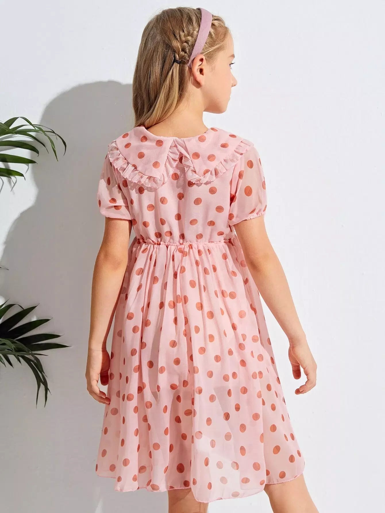 فستان شيفون منقّط من الكشكش على شكل حرف A للبنات
