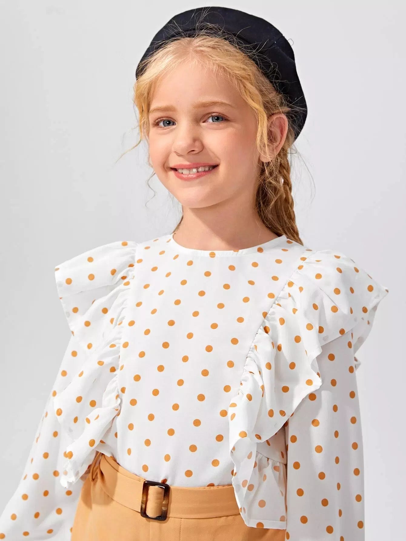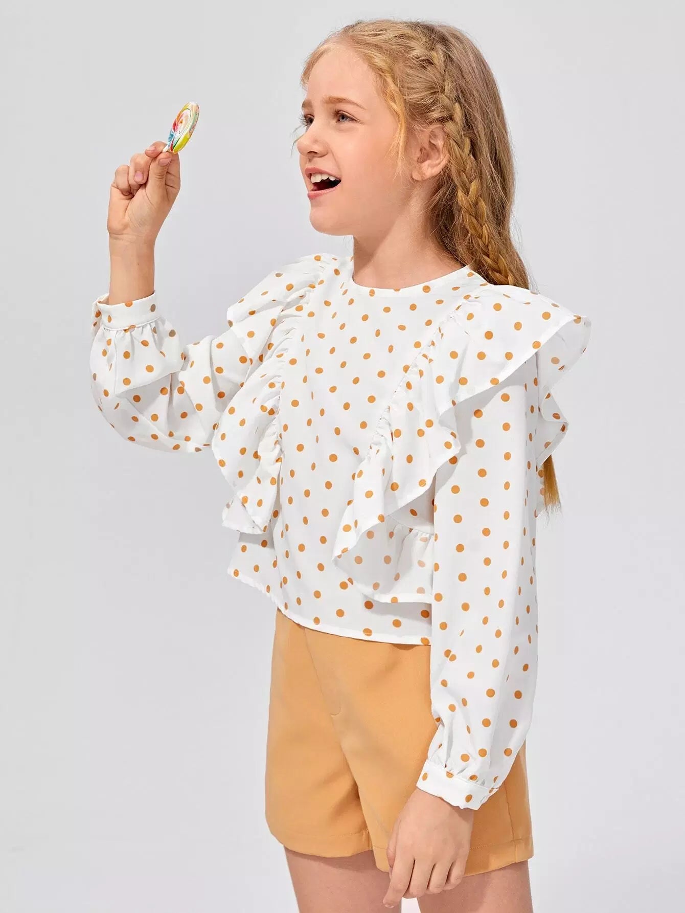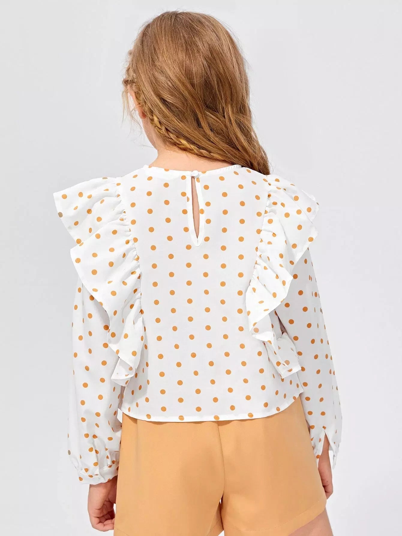 الأطفال - بلوزة بولكا دوت مكشكشة للفتيات