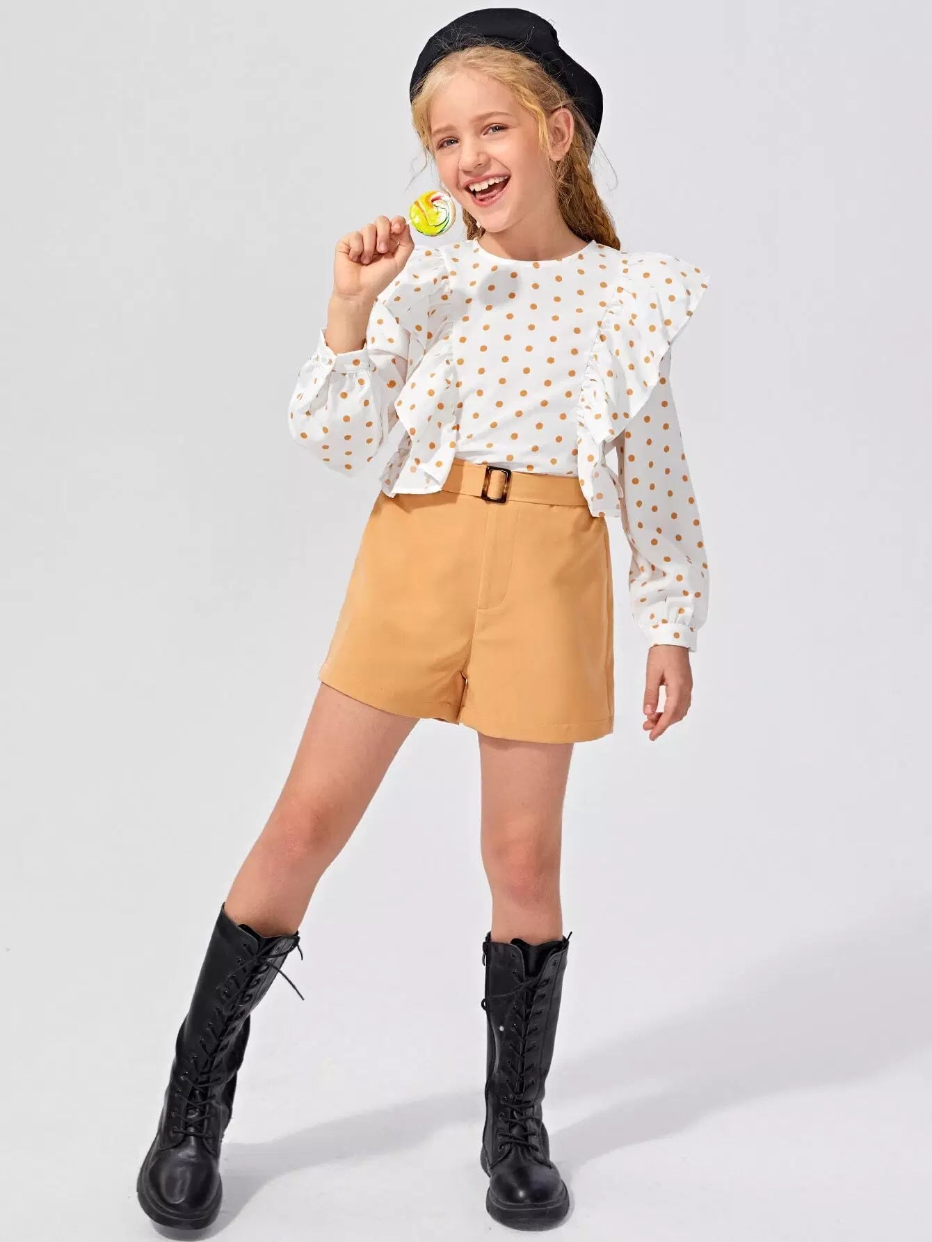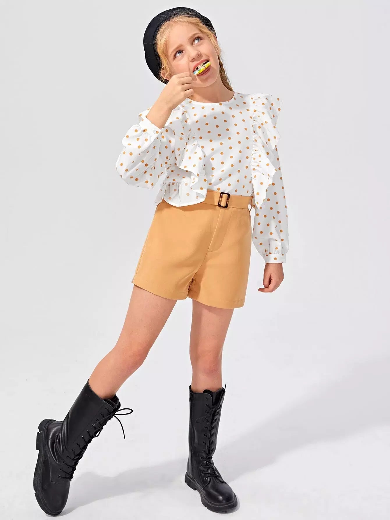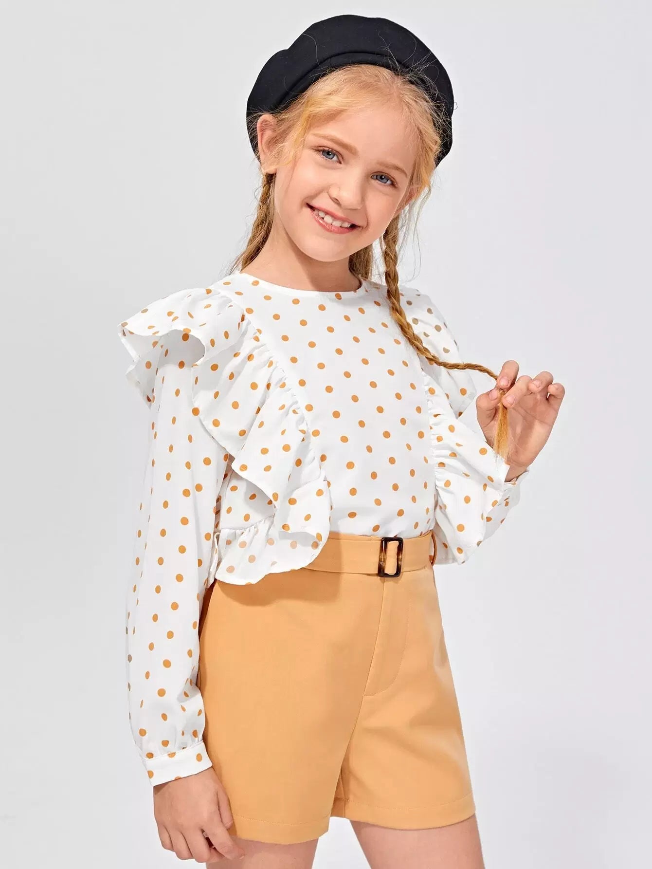 الأطفال - بلوزة بولكا دوت مكشكشة للفتيات