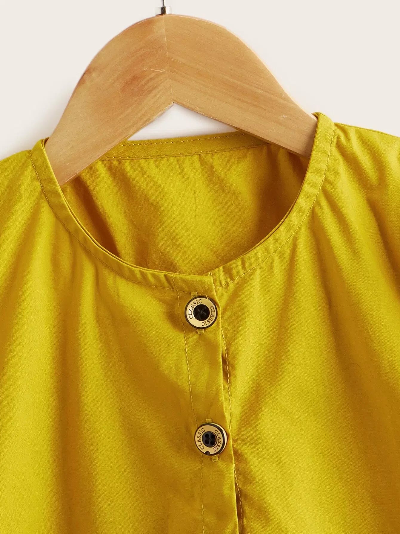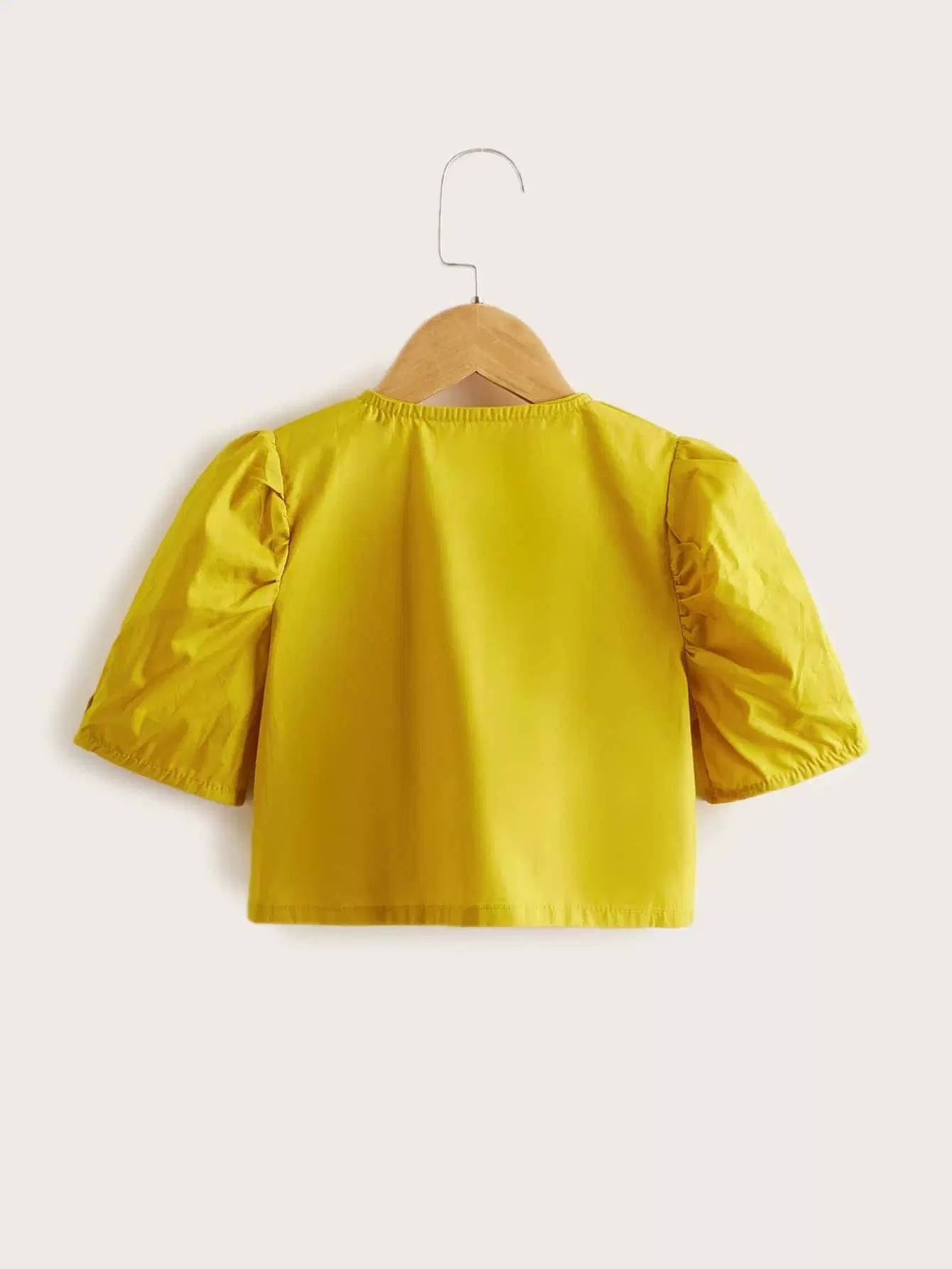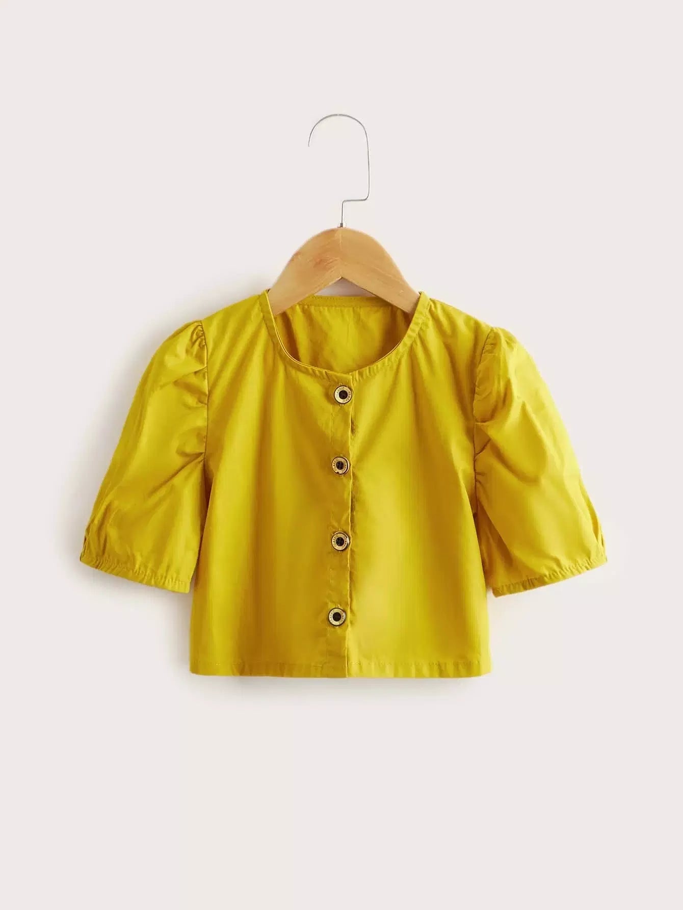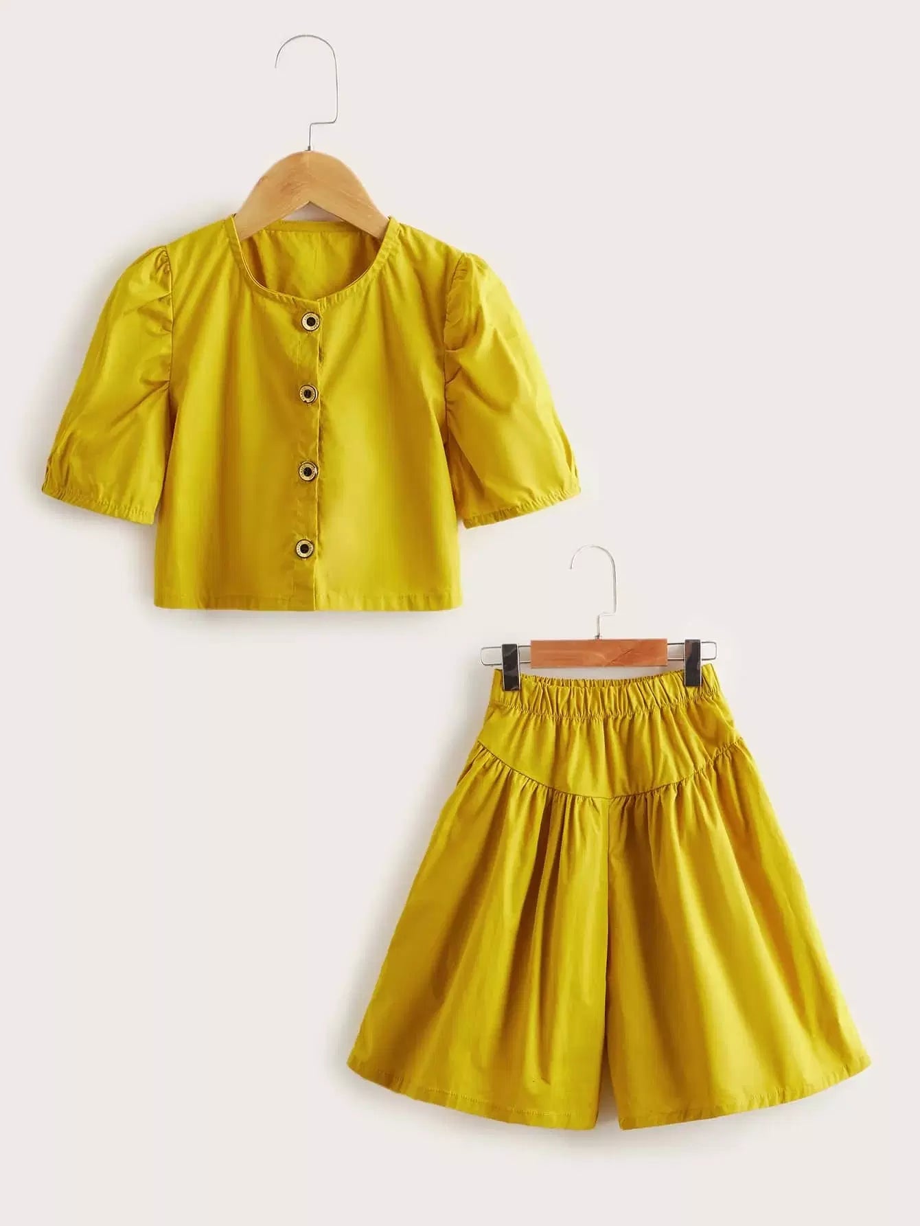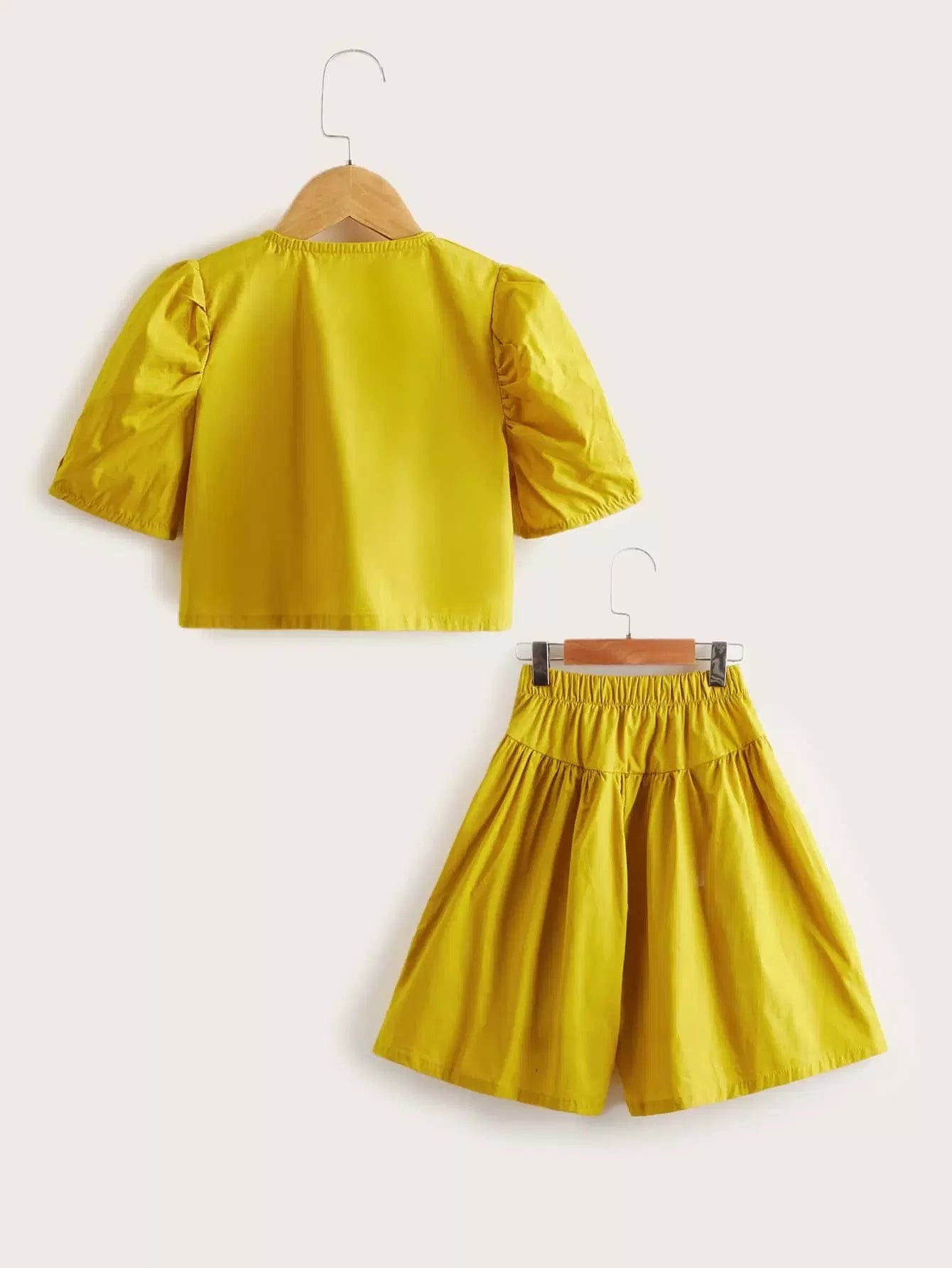 بلوزة بأكمام منتفخة وبنطلون قصير للبنات