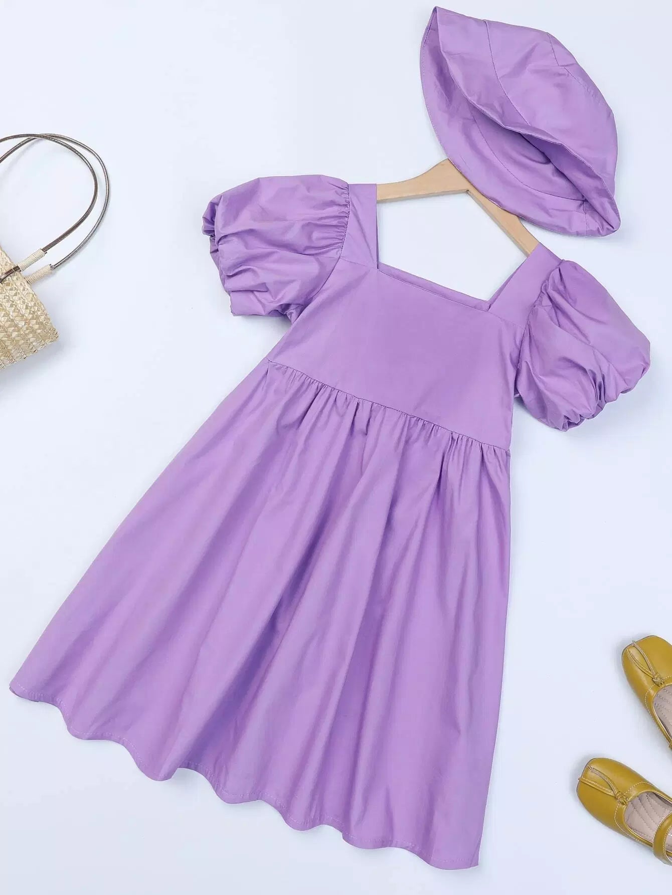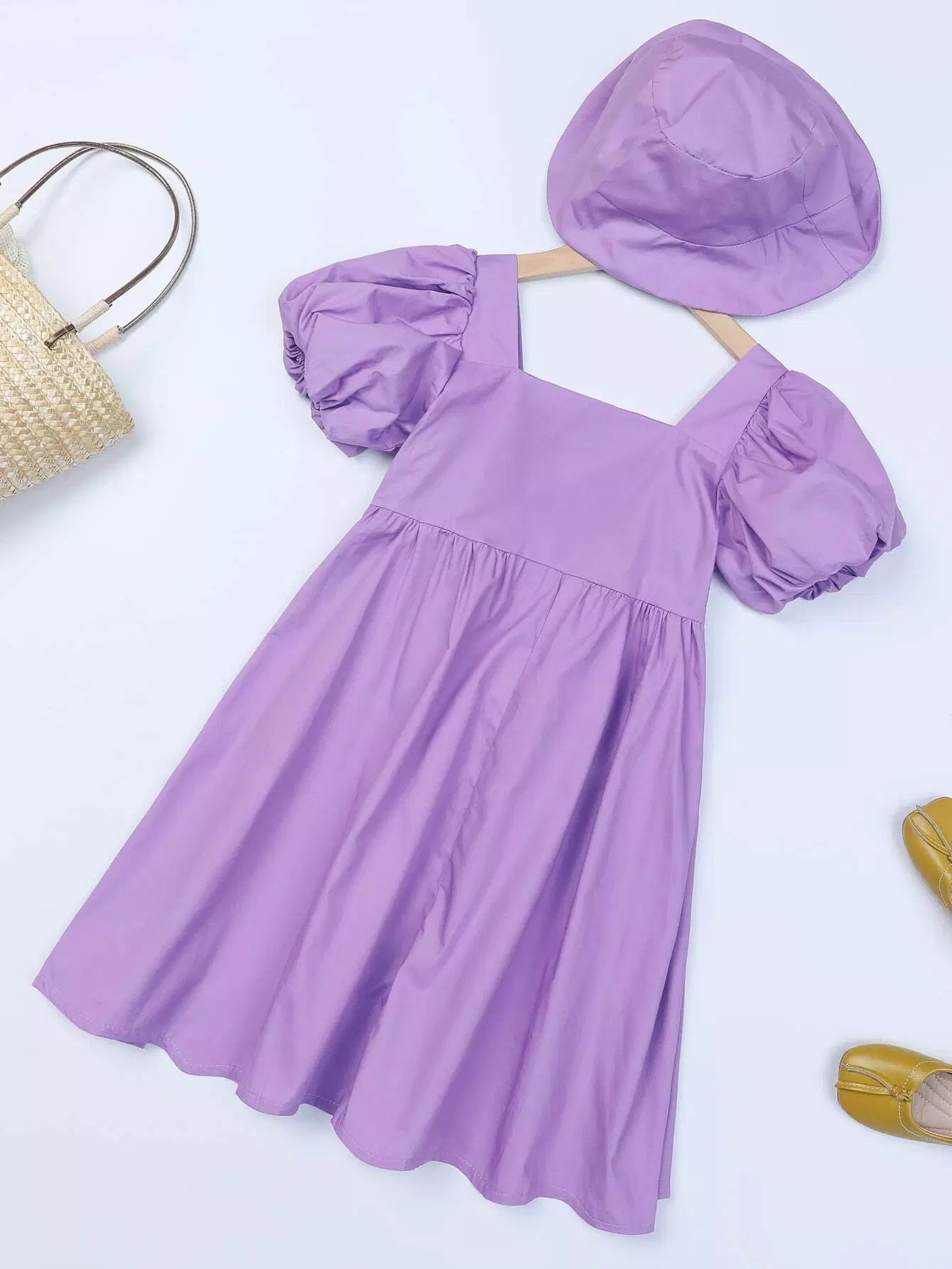 فستان سموك بأكمام منفوشة للبنات مع قبعة