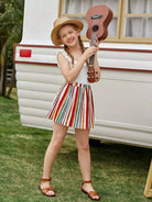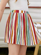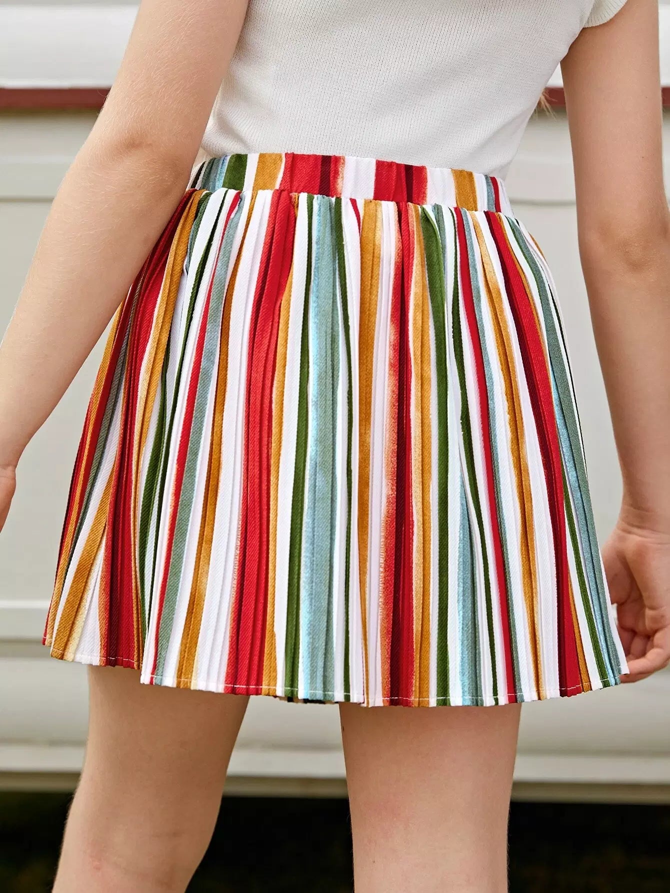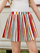 تنورة مطوية مخططة بألوان قوس قزح للبنات