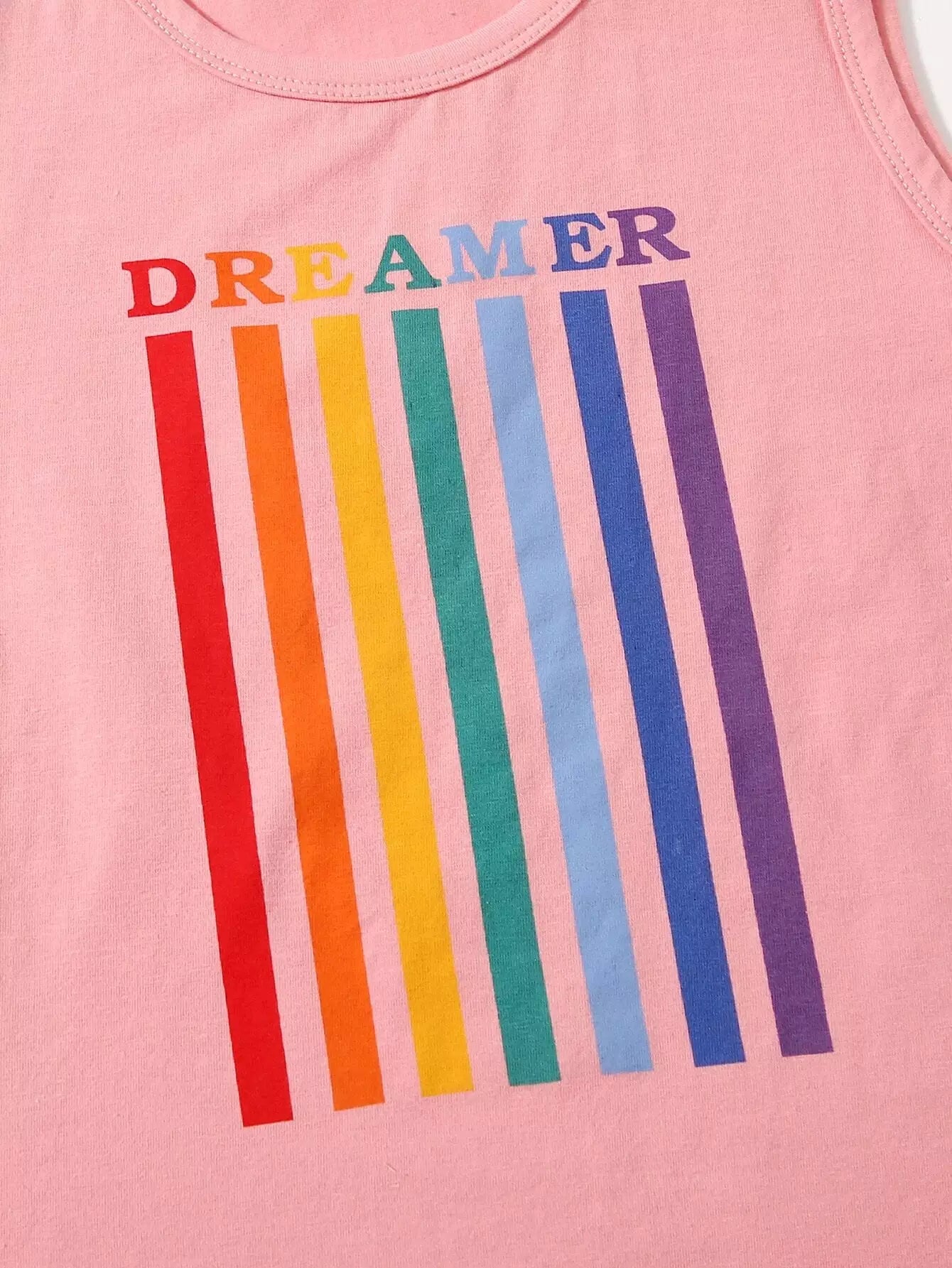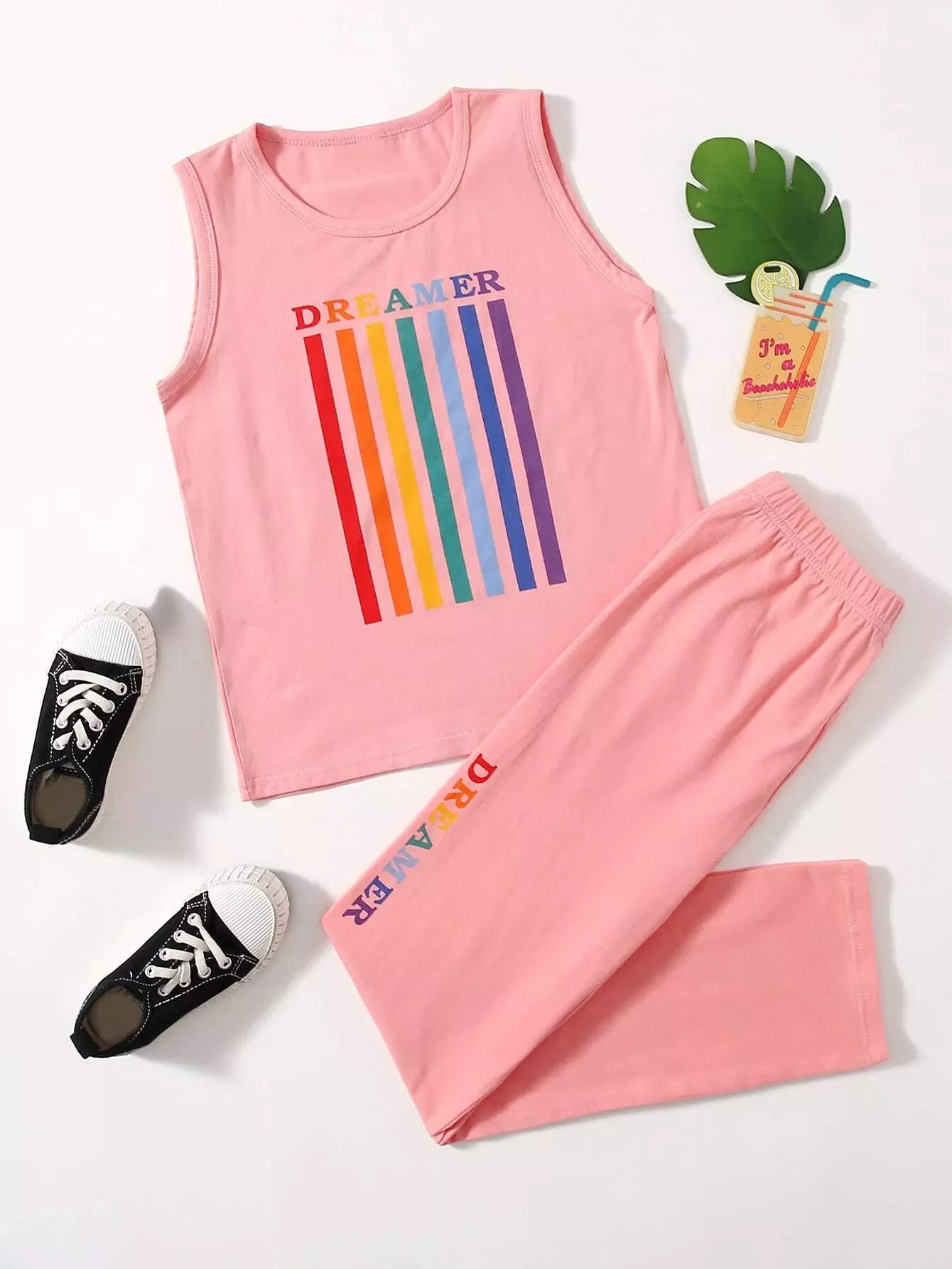 توب بناتي مخطط بقوس قزح مخطط مع بنطال