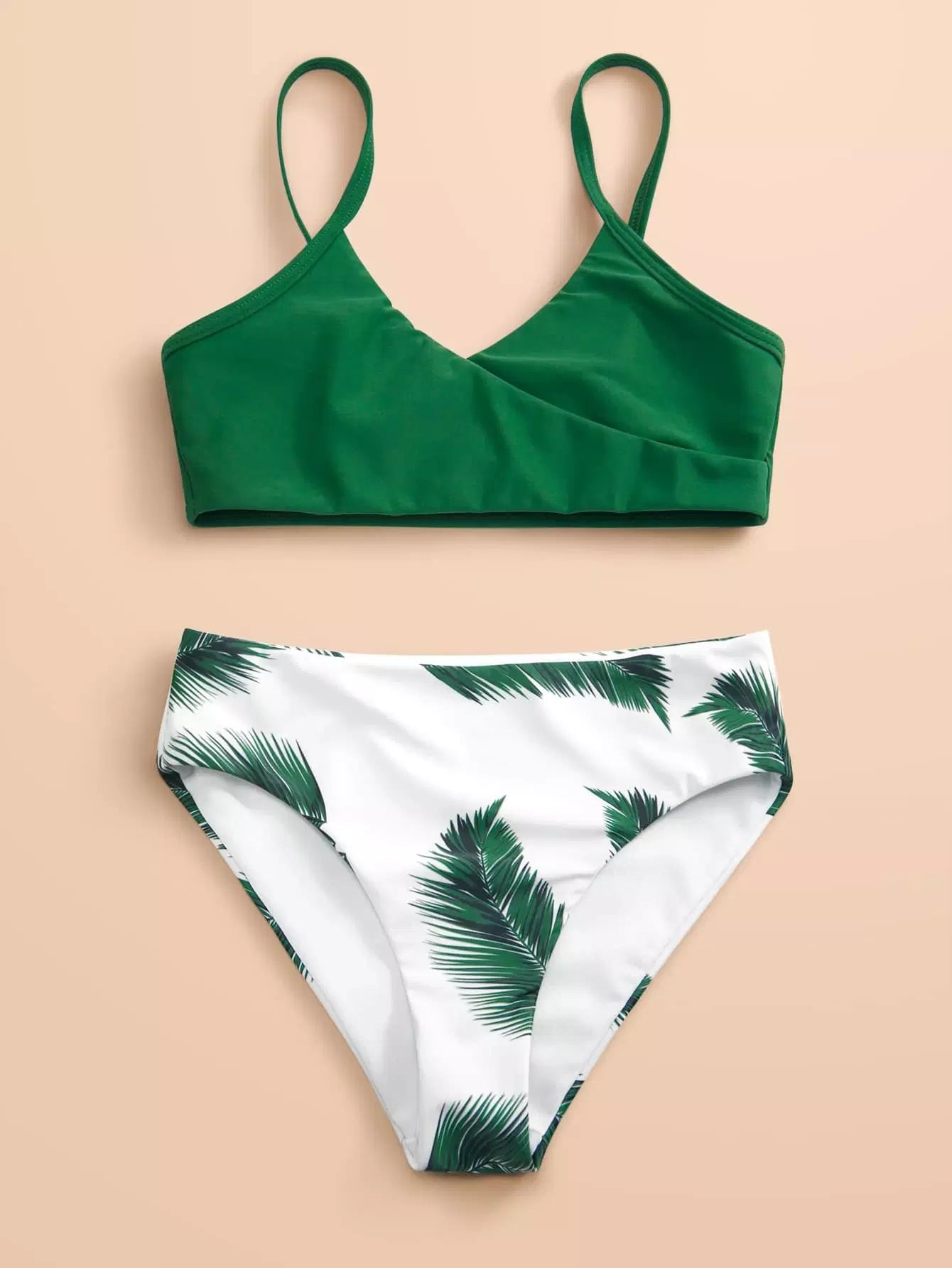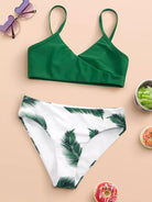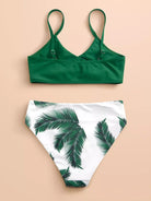 ملابس سباحة بيكيني بطبعة أوراق عشوائية للبنات