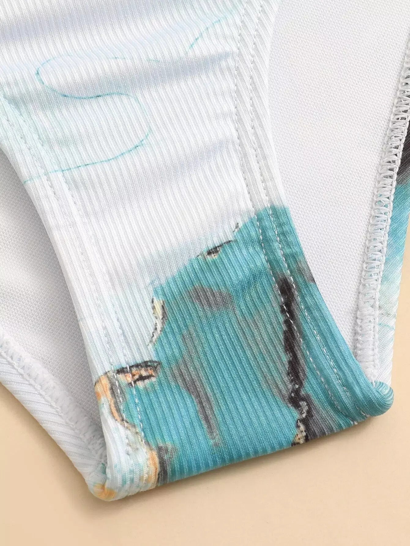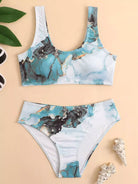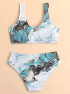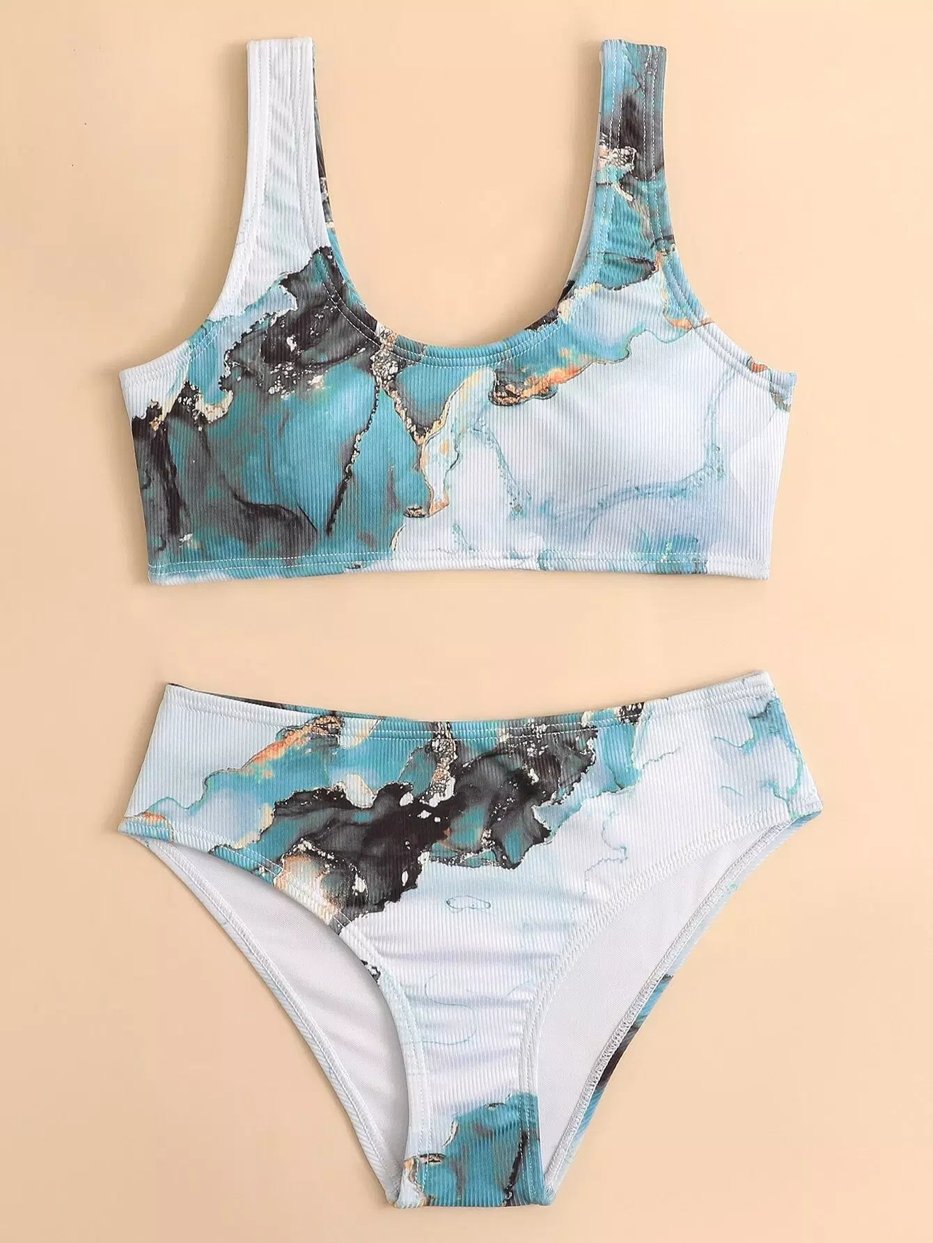 ملابس سباحة بيكيني بطبعة رخام عشوائية للبنات