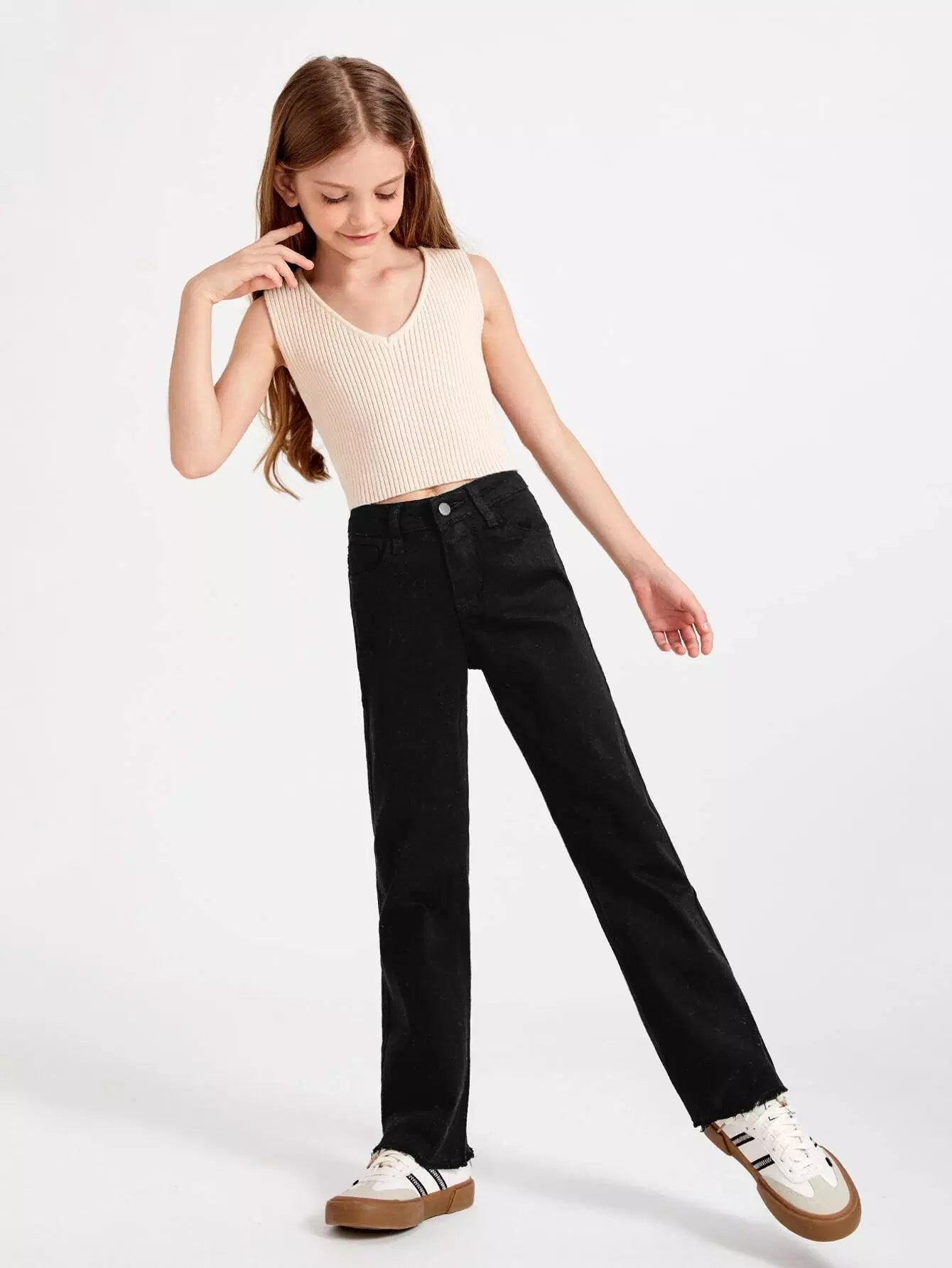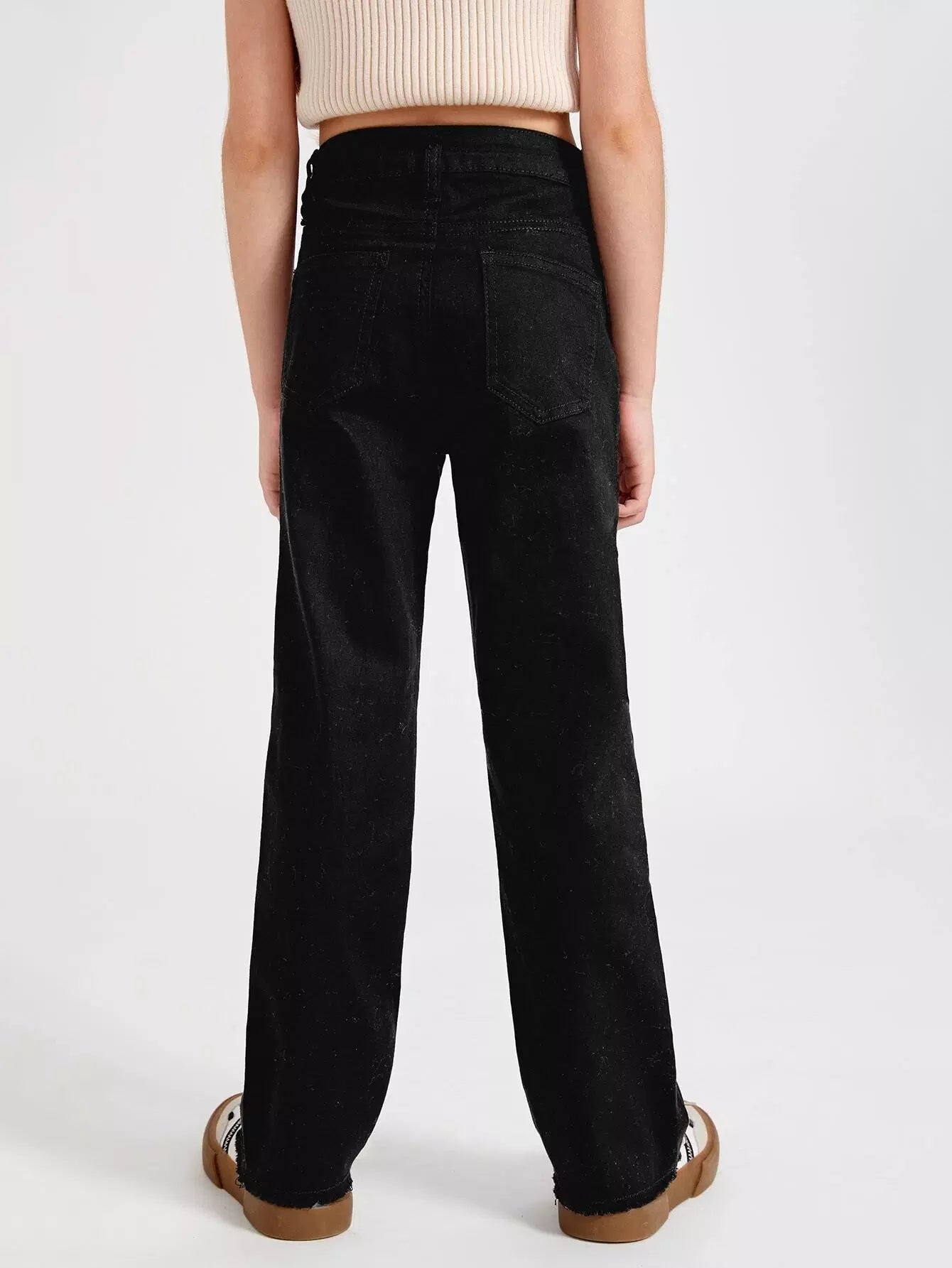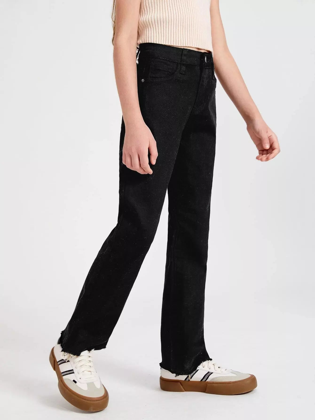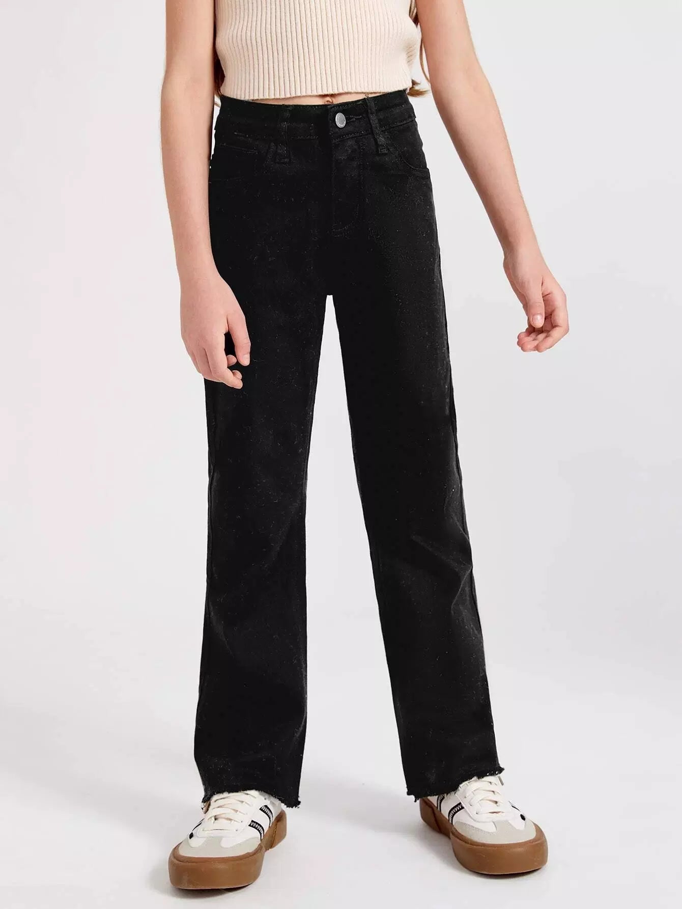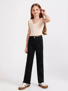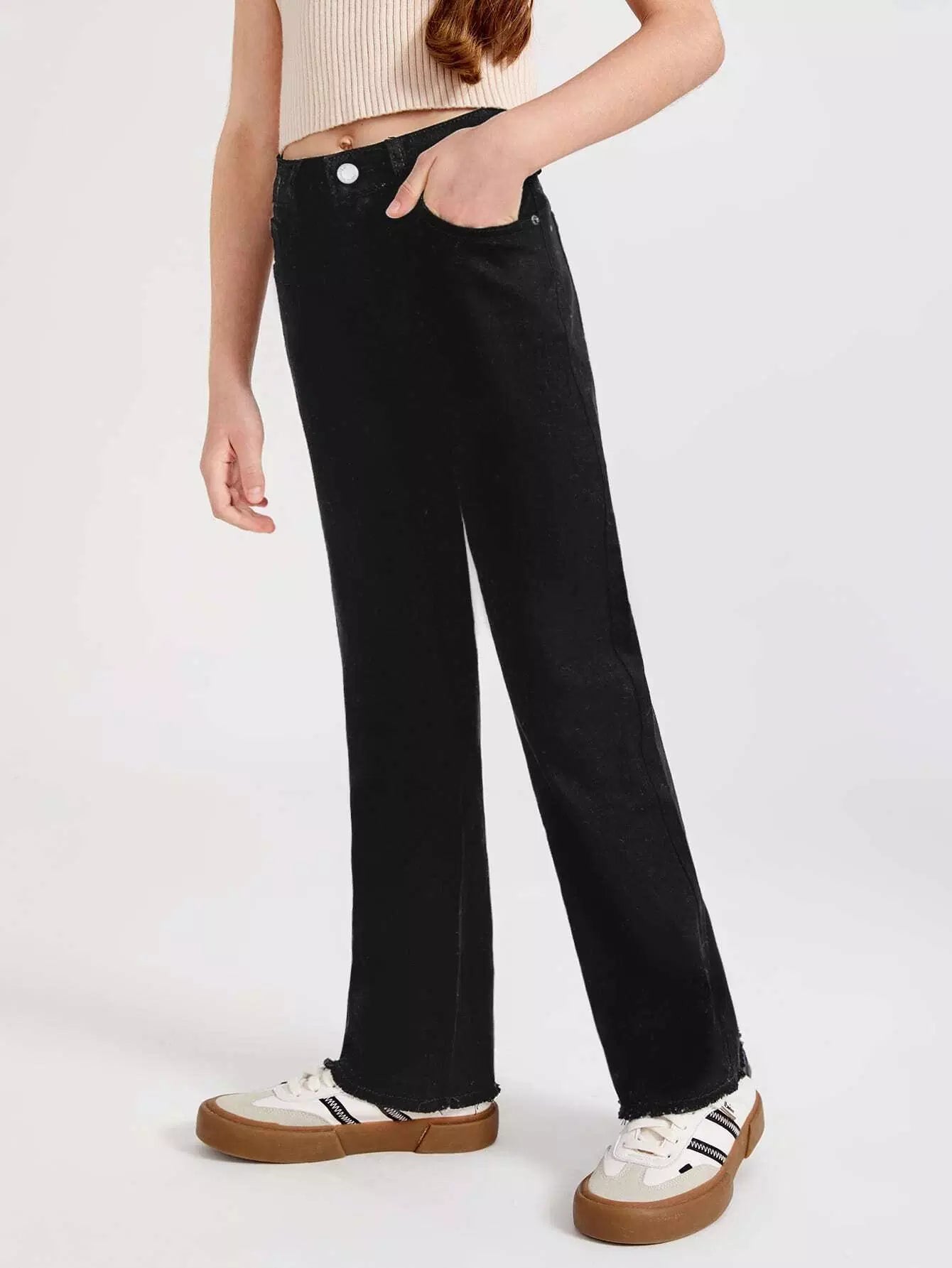بنطلون جينز واسع الساق بحاشية خام للبنات