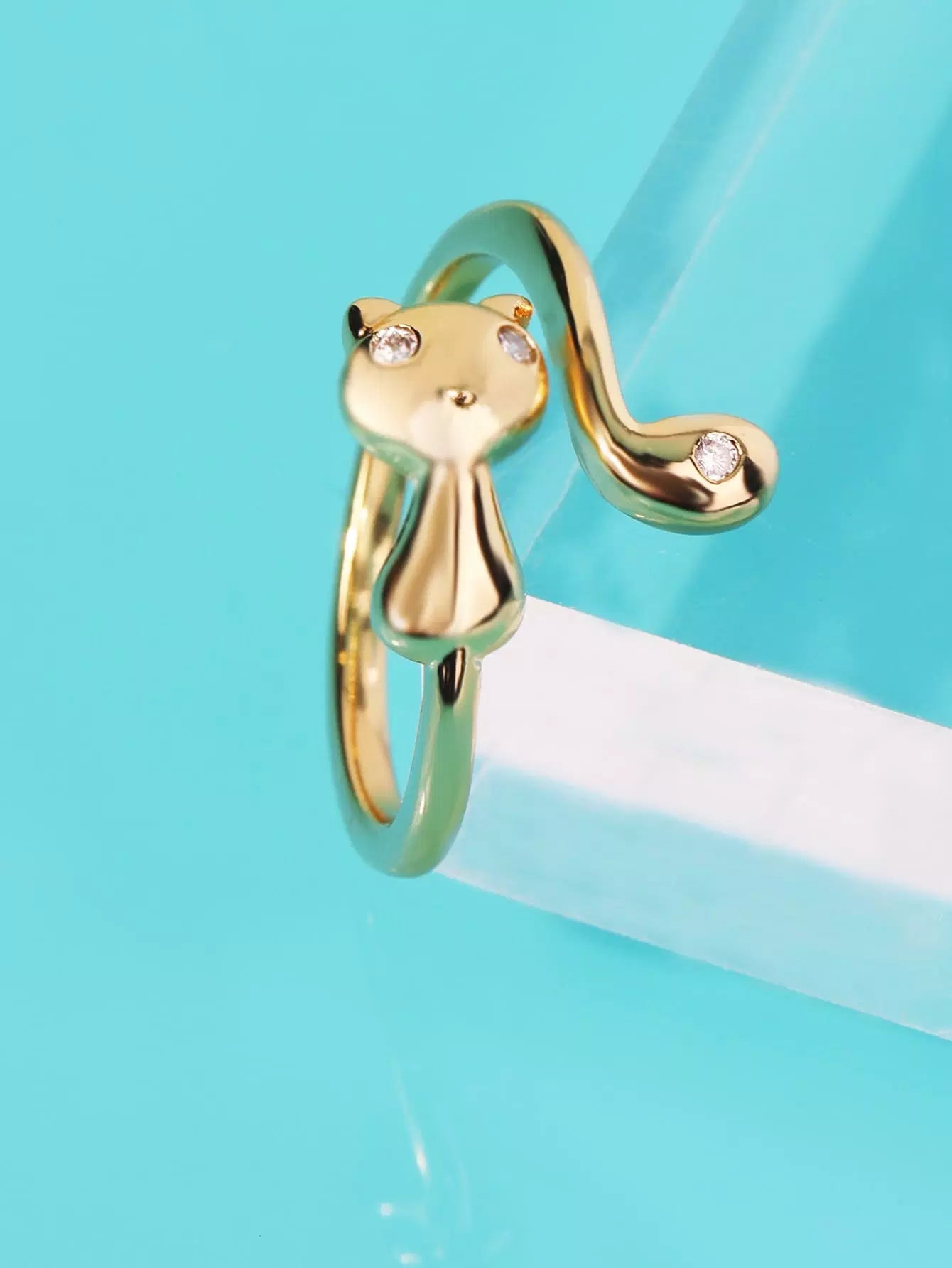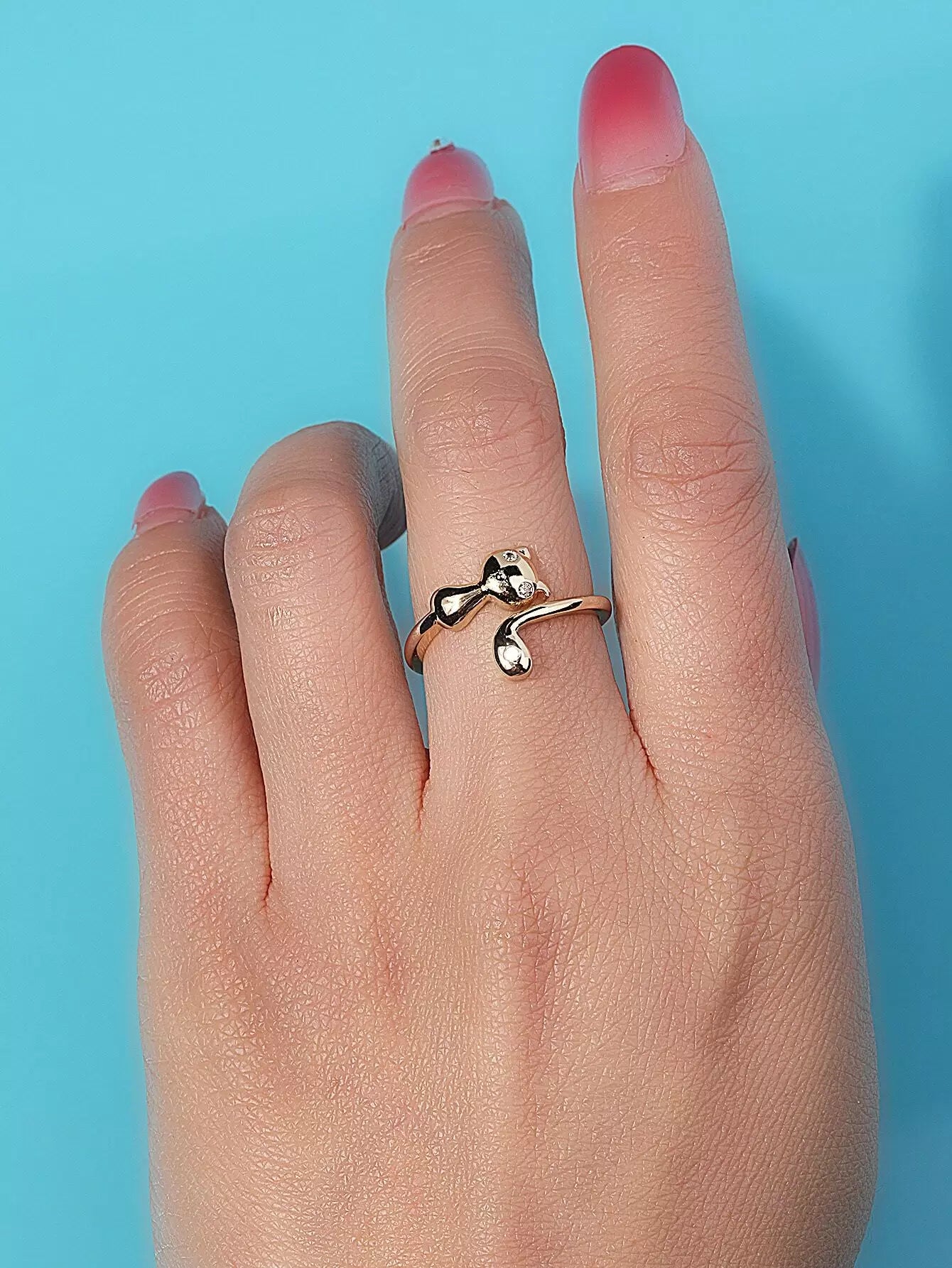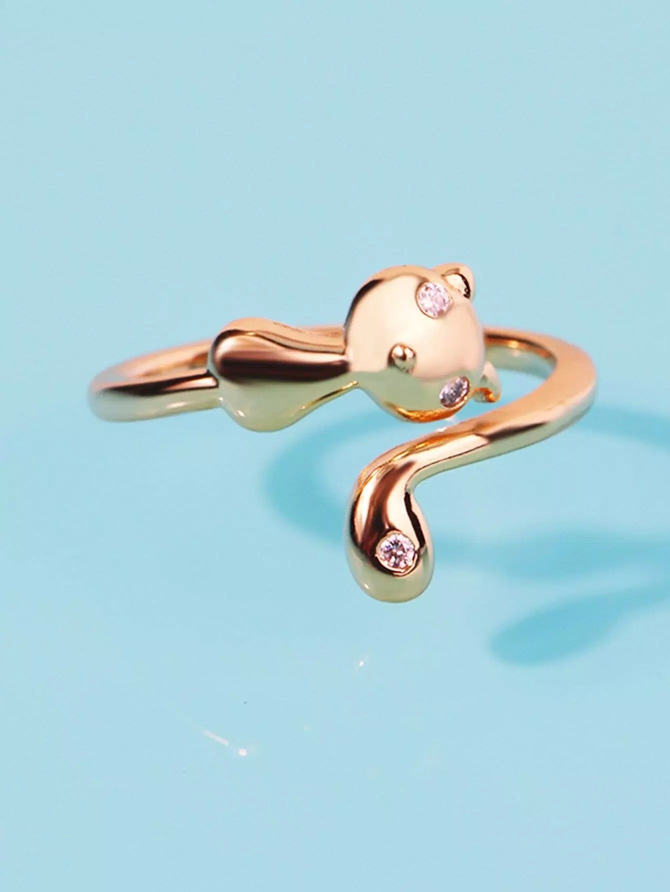 خاتم بناتي مزين بأحجار الراين على شكل حيوان