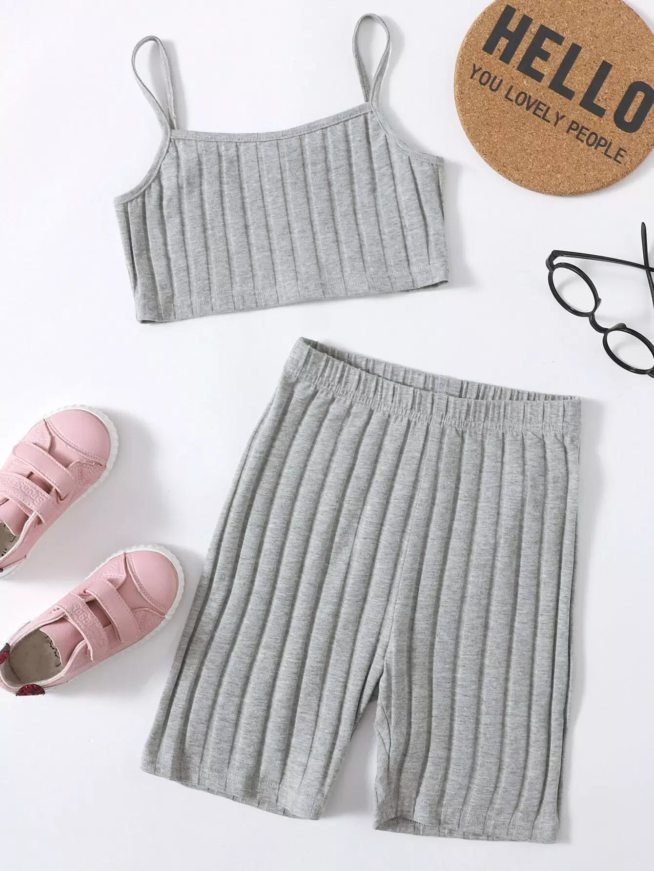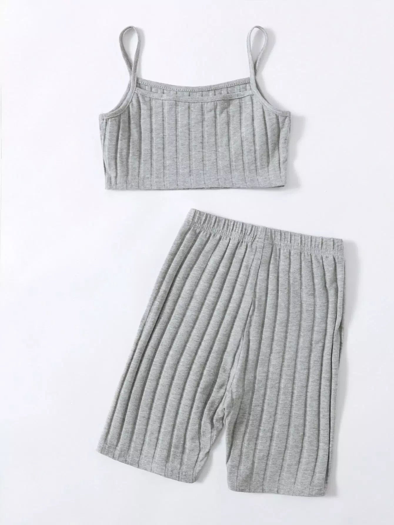 طقم من بلوزة كامي محبوكة وشورت بايكر للبنات