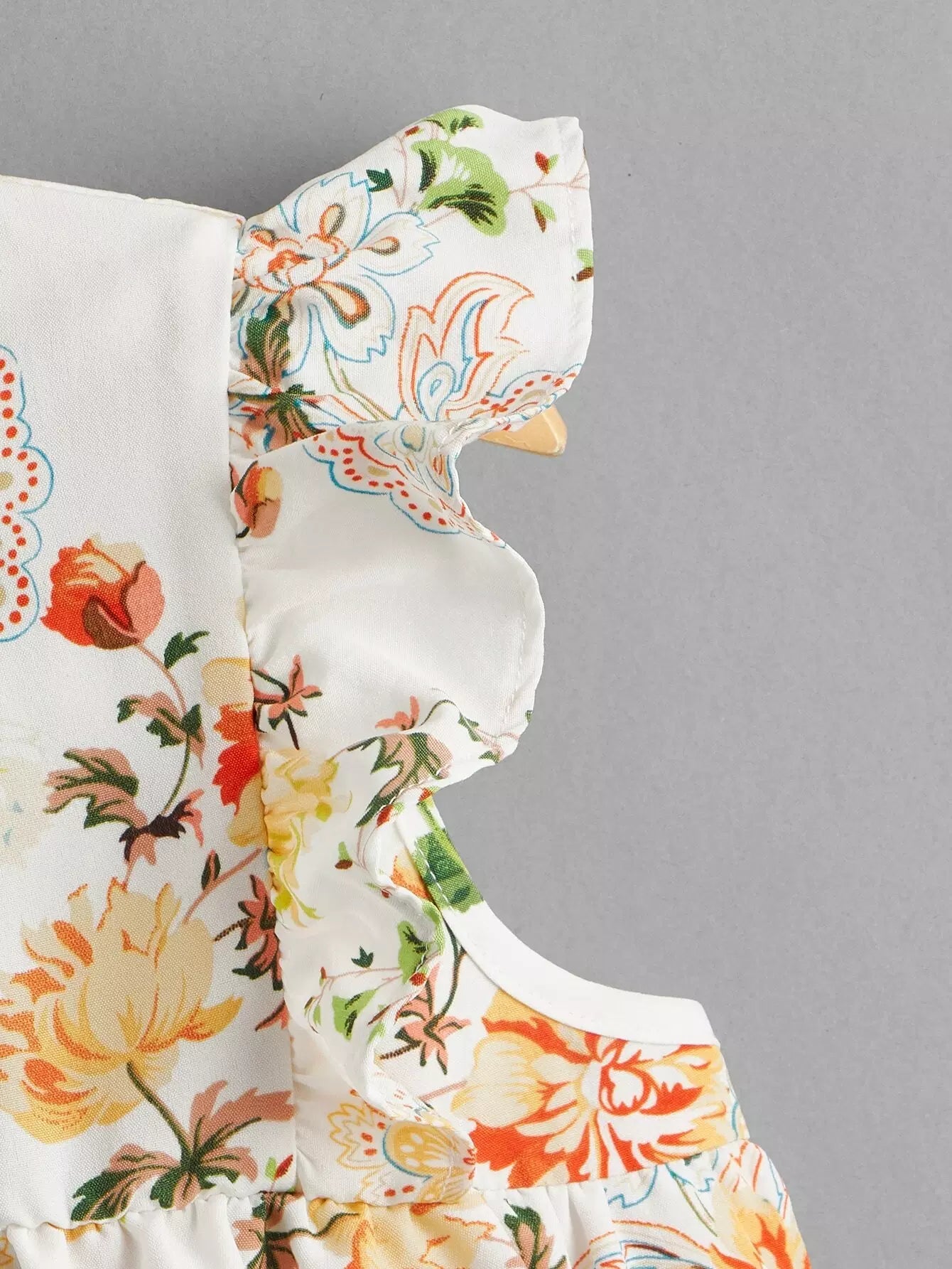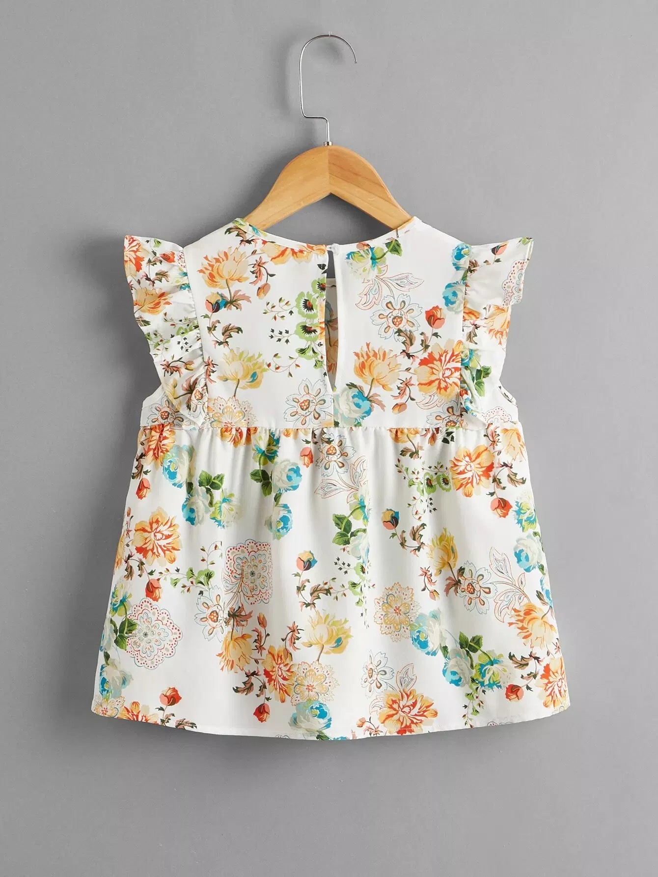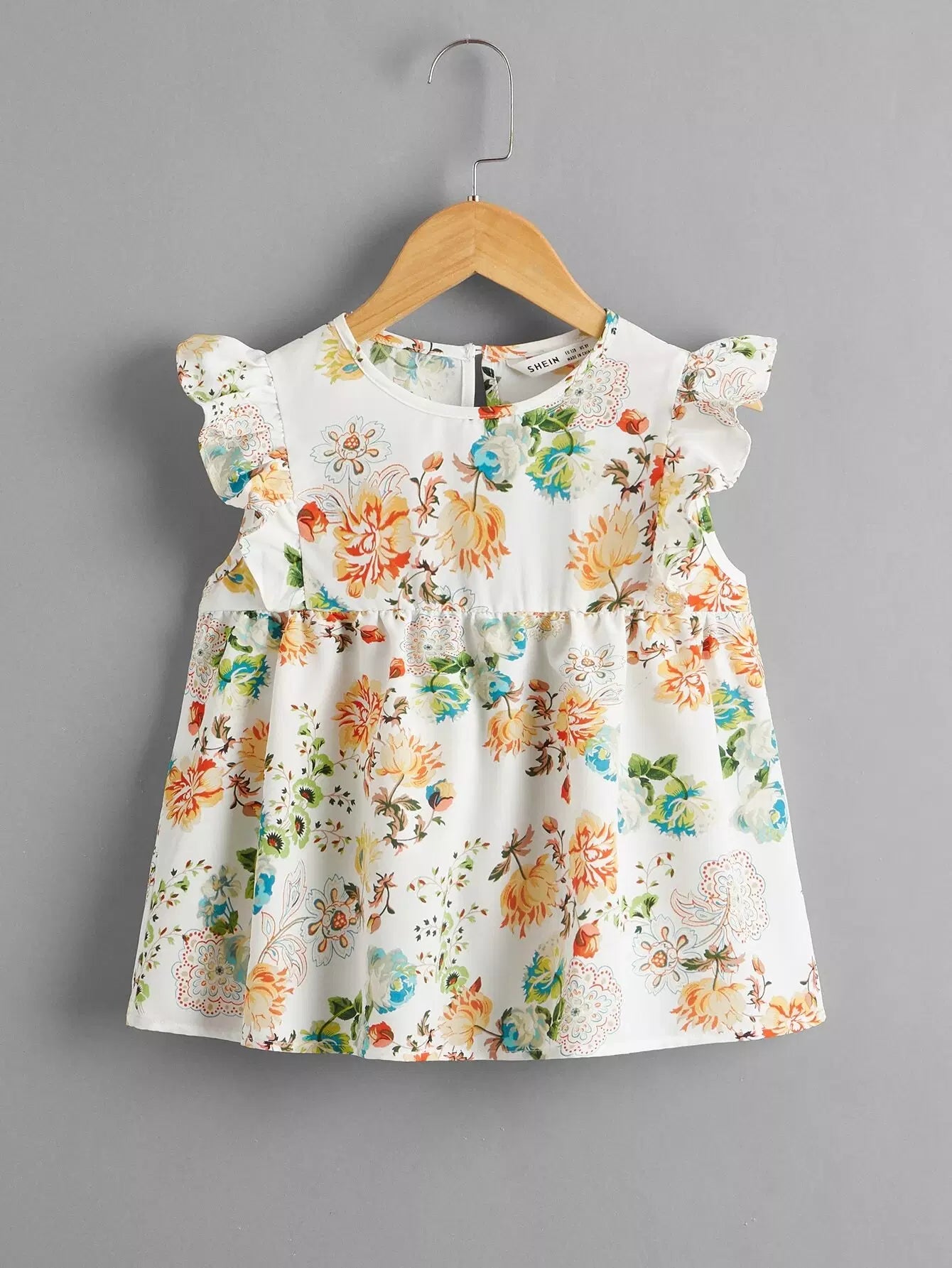بلوزة زهرية بفتحة أكمام مكشكشة للبنات