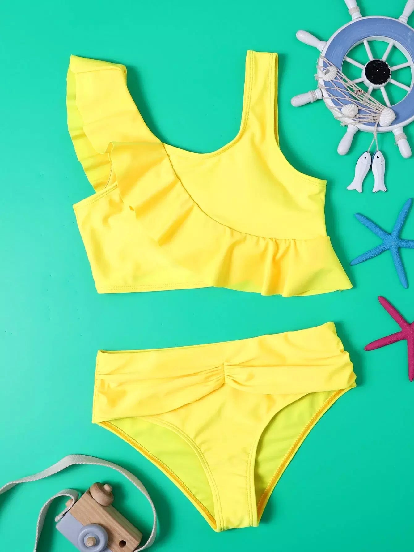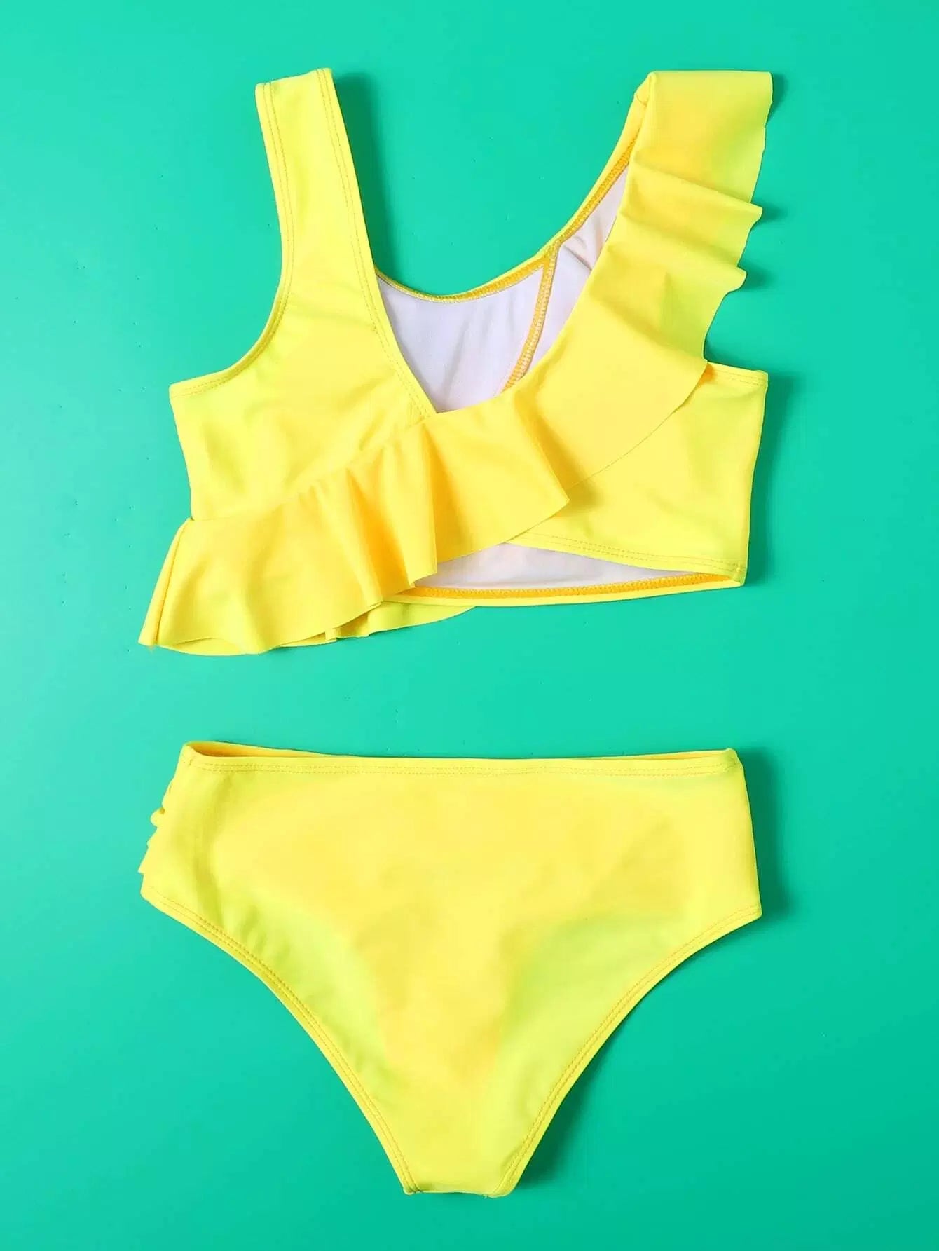 بدلة سباحة بيكيني كشكش بحواف مكشكشة للبنات