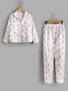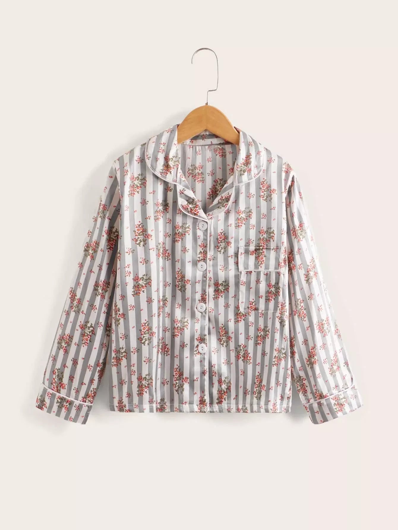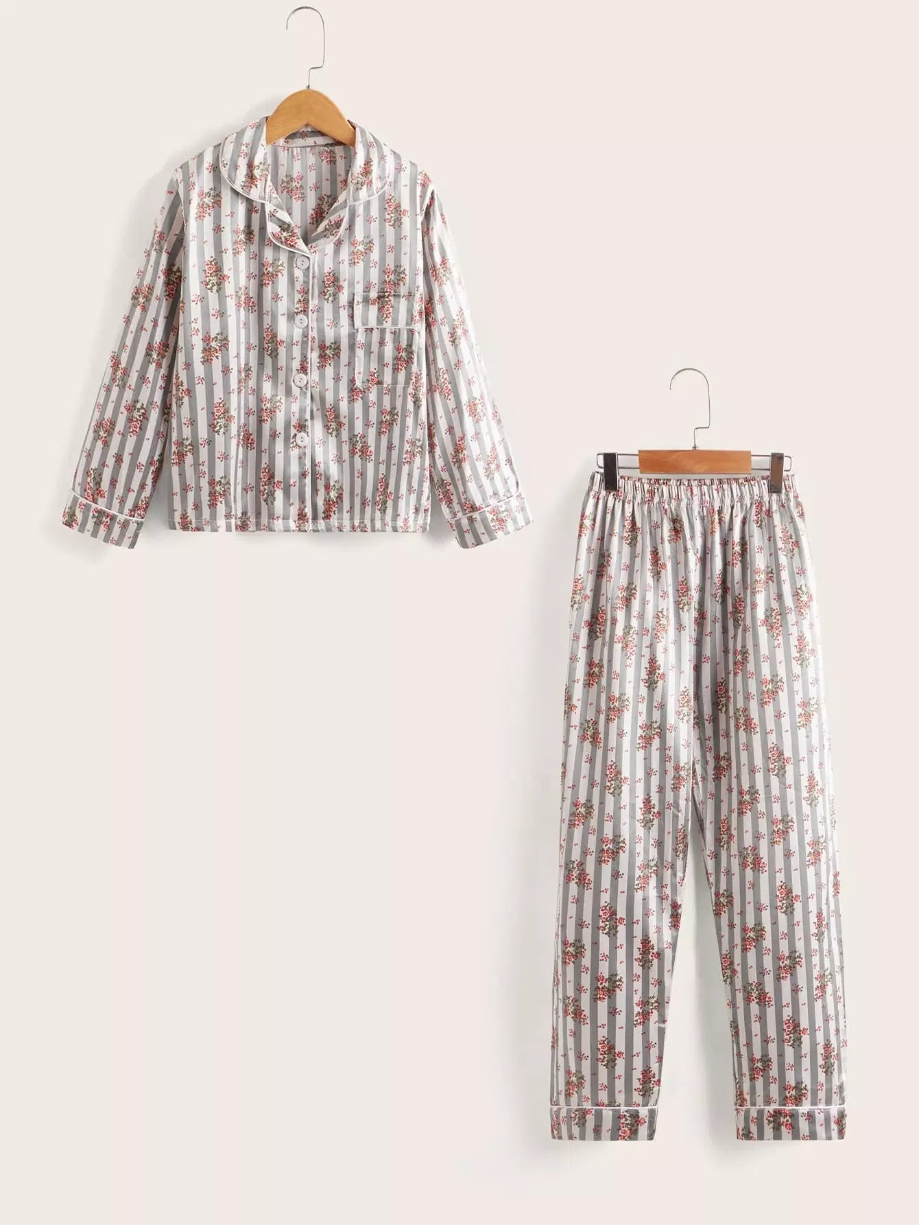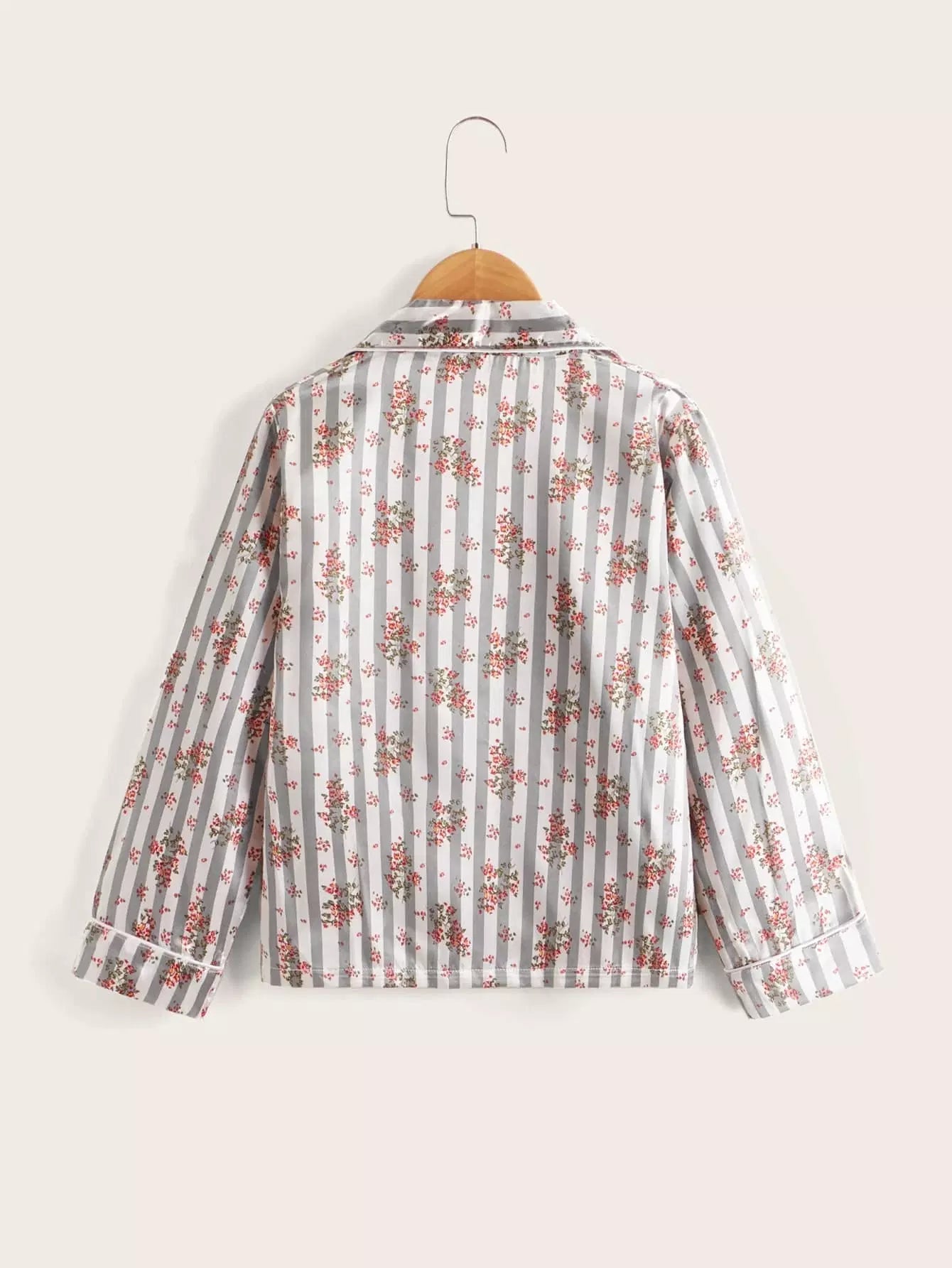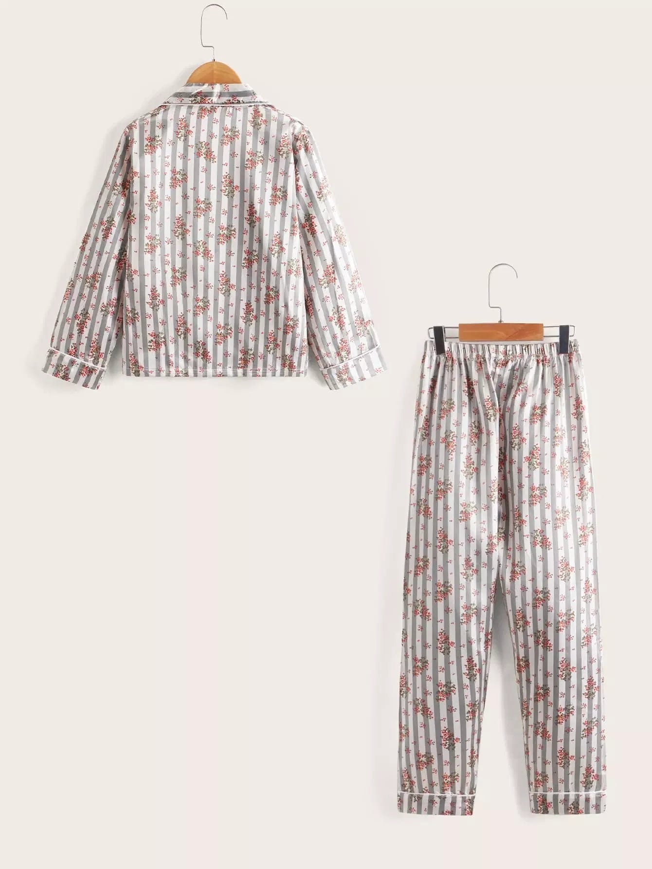 طقم بيجامة بياقة من الساتان بياقة من الساتان بطبعة زهور للبنات