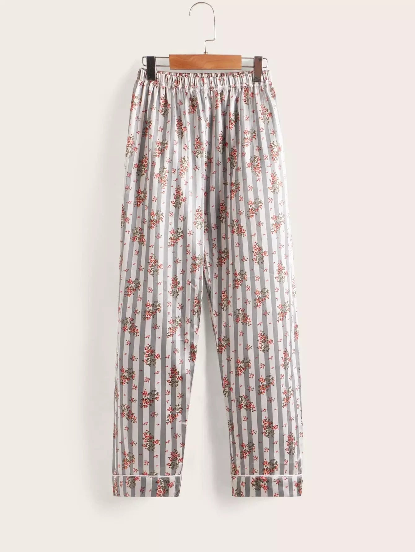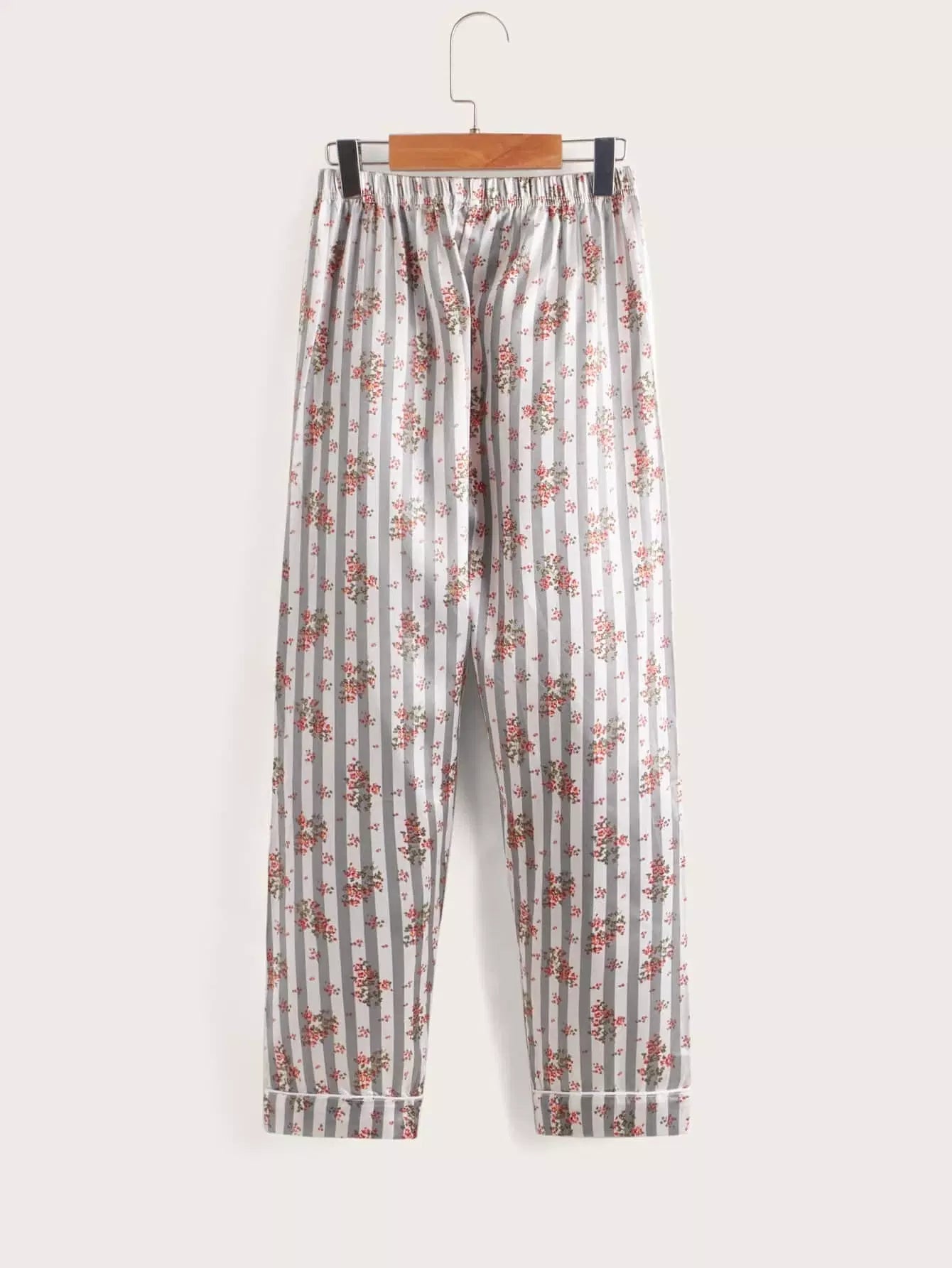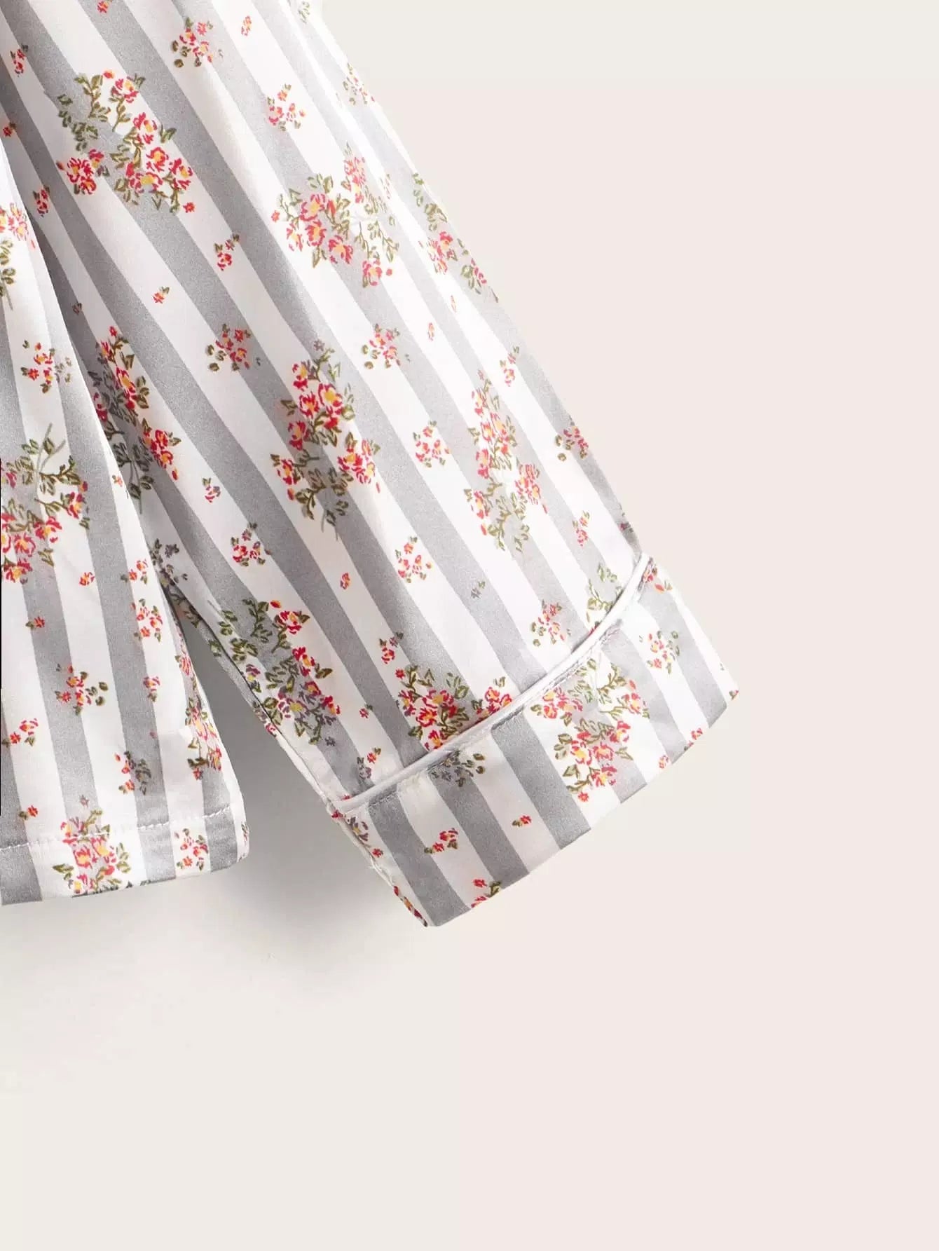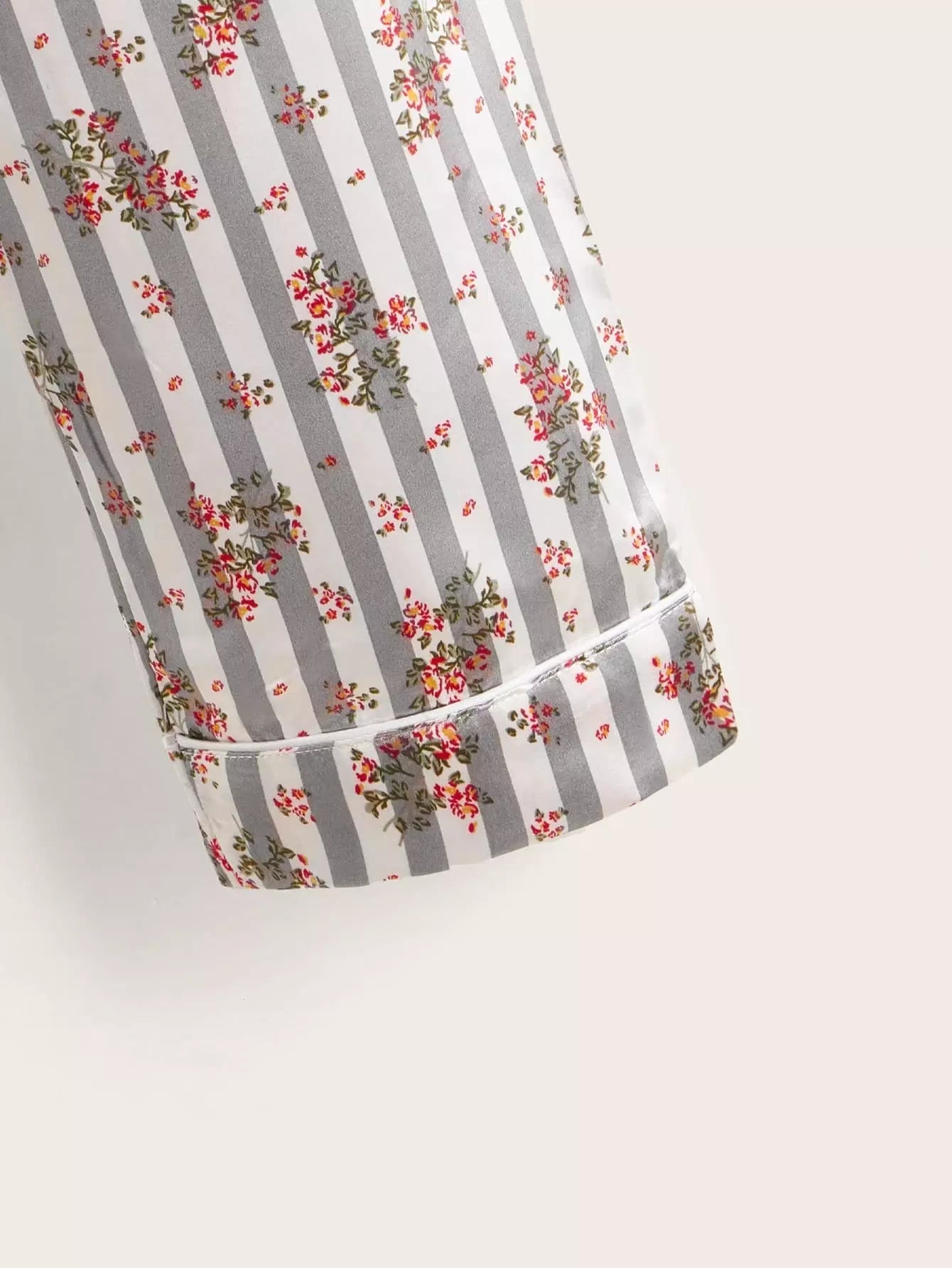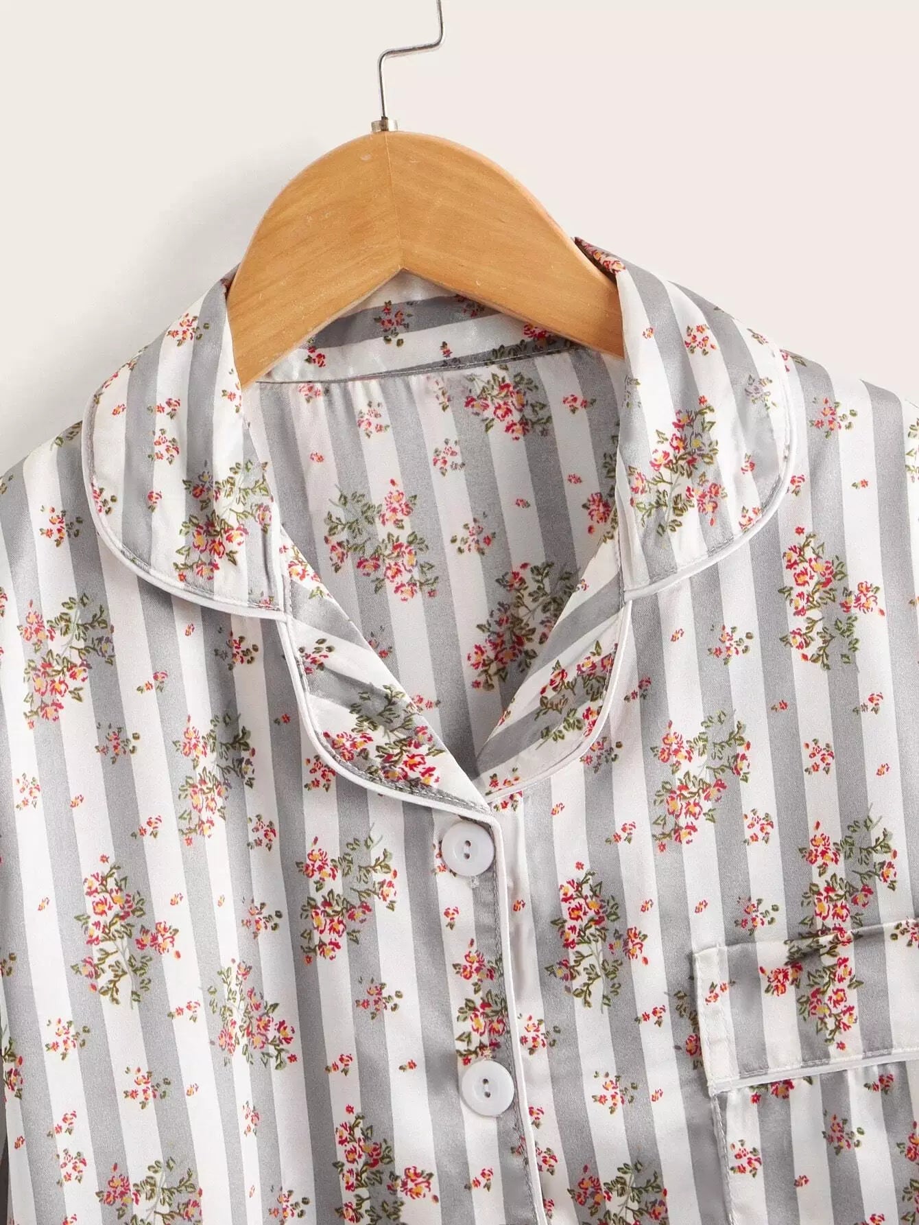 طقم بيجامة بياقة من الساتان بياقة من الساتان بطبعة زهور للبنات