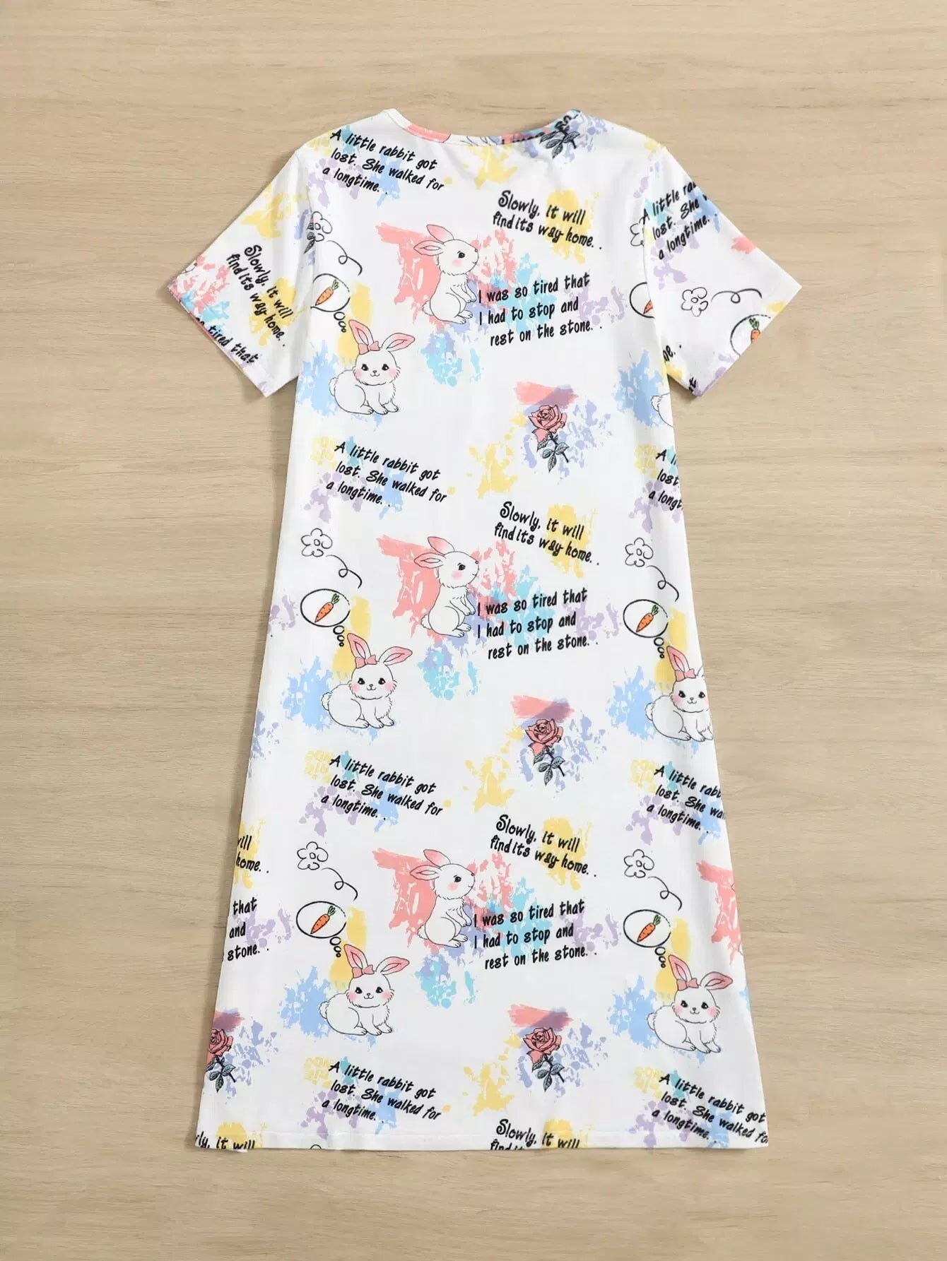 فستان نوم برسومات كرتونية وشعارات للبنات