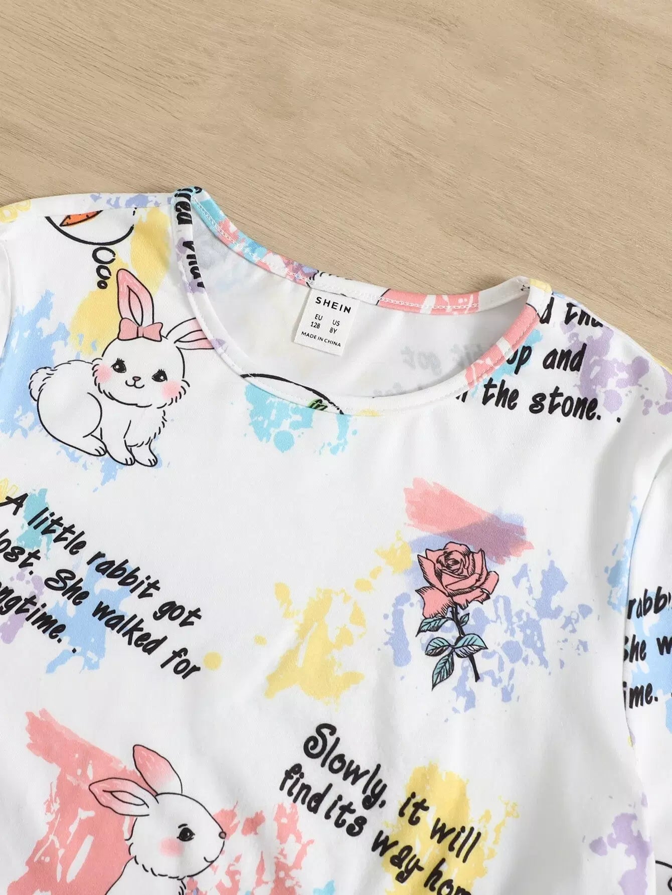 الأطفال - فستان مريح للفتيات برسومات كرتونية وشعار