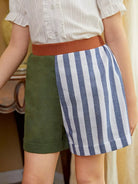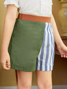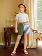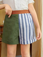 شورت مخطط بألوان متعددة للبنات مع حافة مطوية