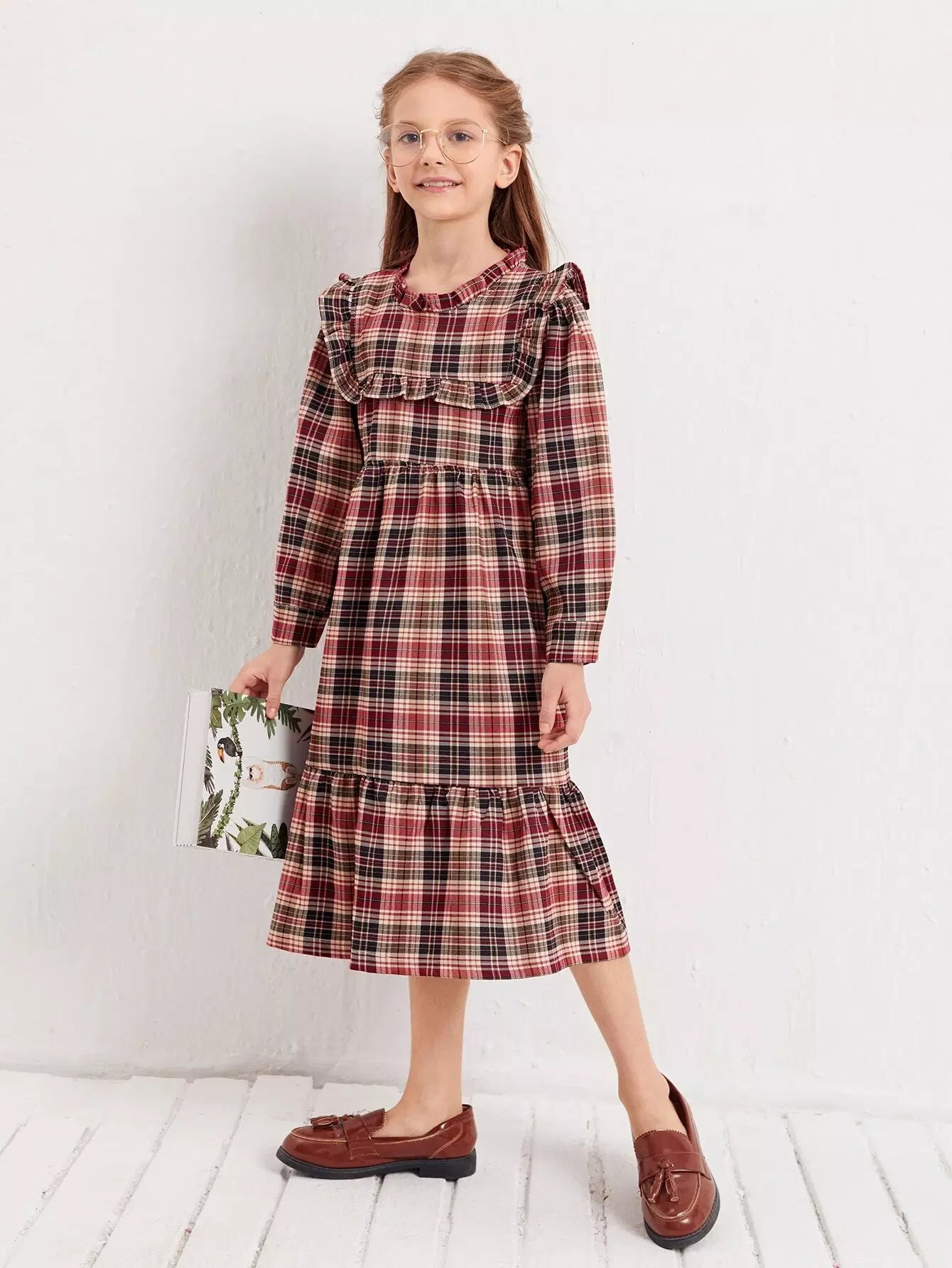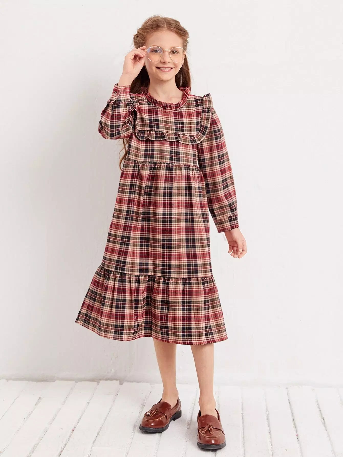 فستان بنات بحواف مكشكشة من الترتان للبنات