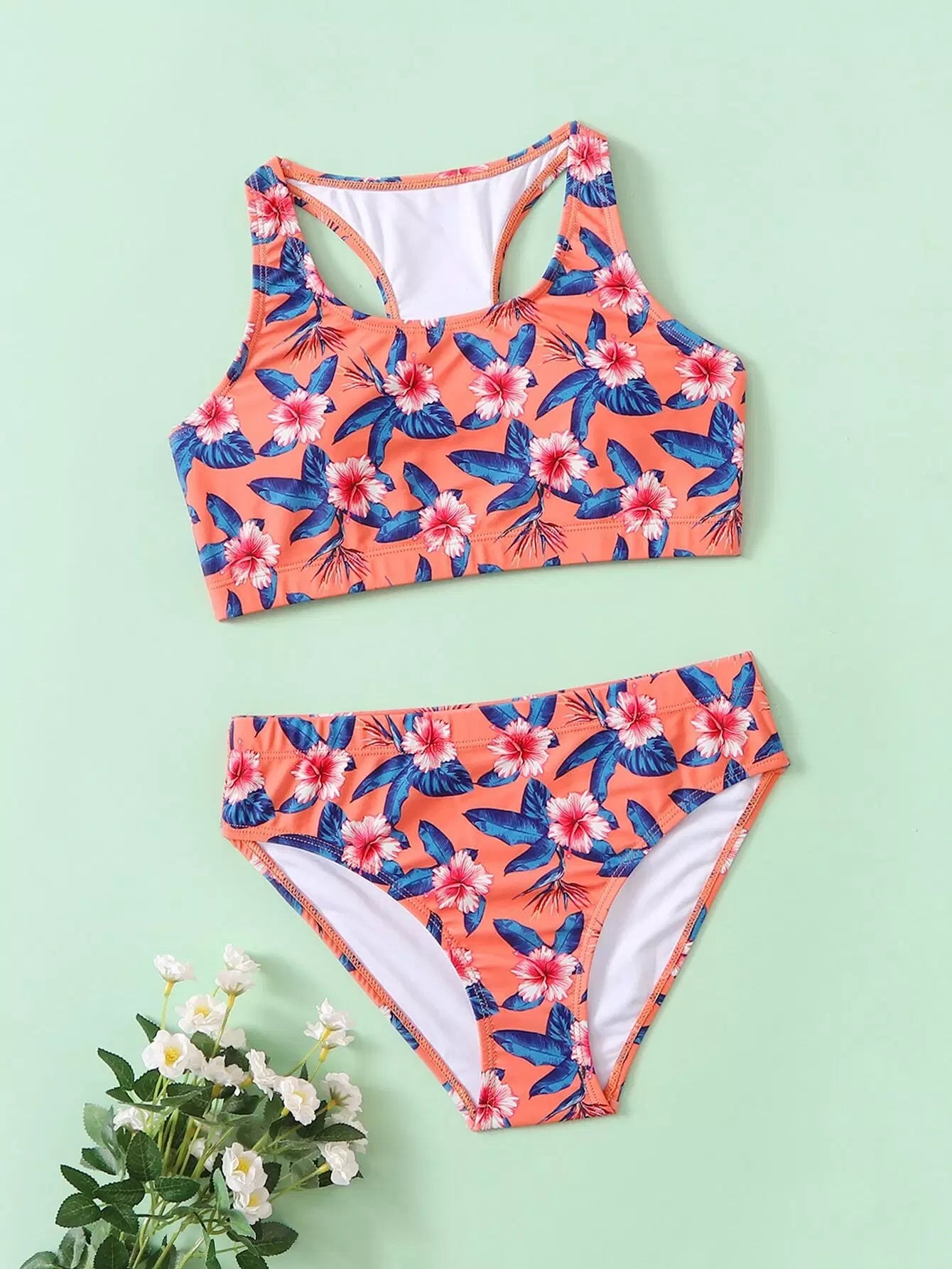 بدلة سباحة بيكيني استوائي بظهر استوائي للبنات