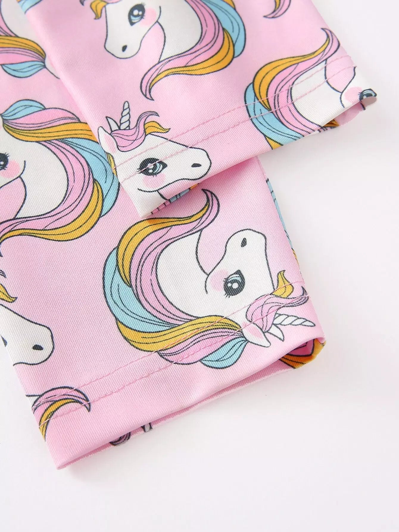الأطفال - طقم تيشيرت وبنطلون ضيق بغطاء رأس وطبعة وحيد القرن للفتيات