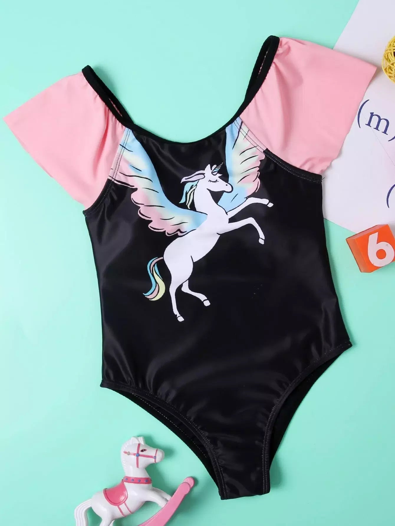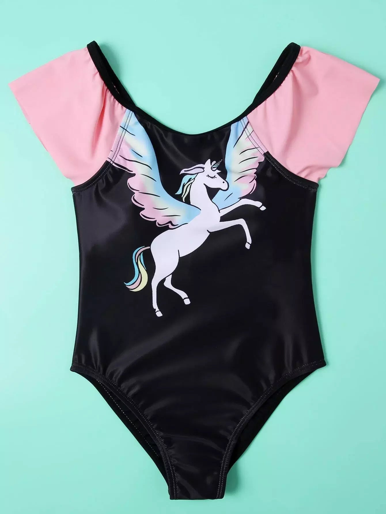بذلة سباحة بنات بطبعة يونيكورن كشكش قطعة واحدة