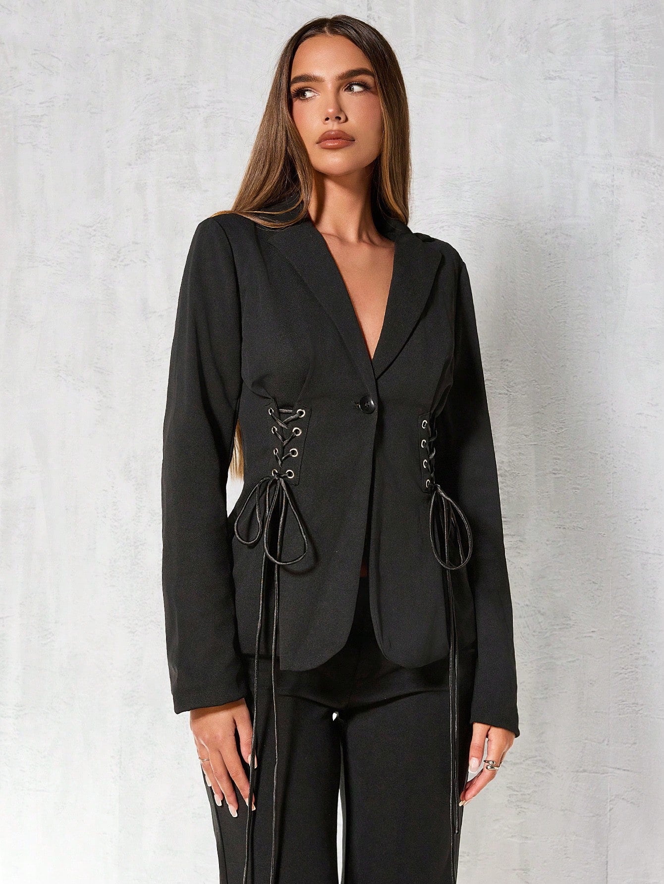 women Glamine 1pc Women Casual Crossover Tie Side Blazer Jacket