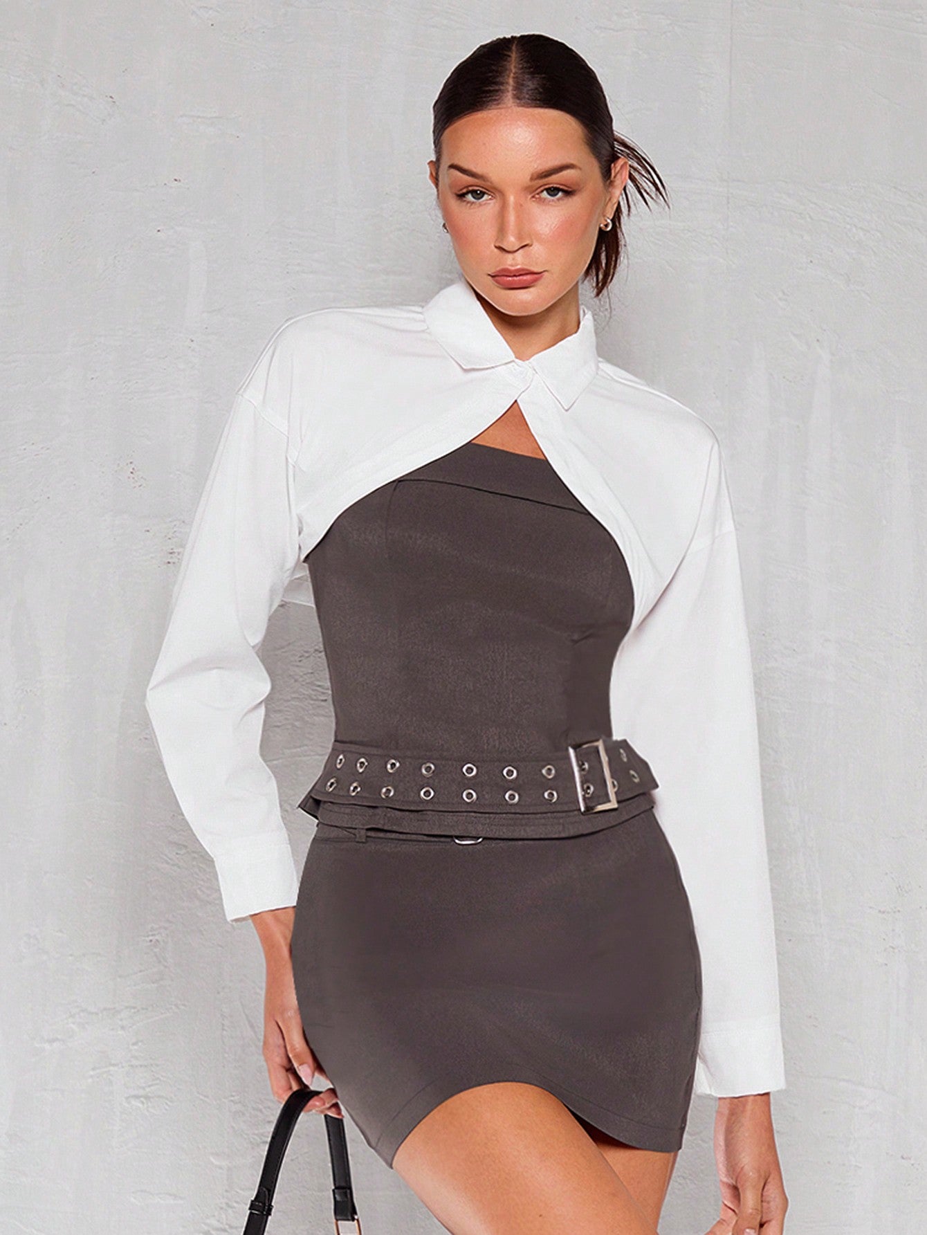 بلوزة قصيرة كاجوال نسائية بأكمام طويلة من Glamine Office Siren باللون الأبيض لفصل الربيع/الخريف