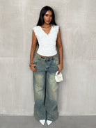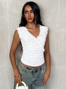 تيشيرت نسائي أبيض اللون من Glamine بحافة شبكية مكشكشة