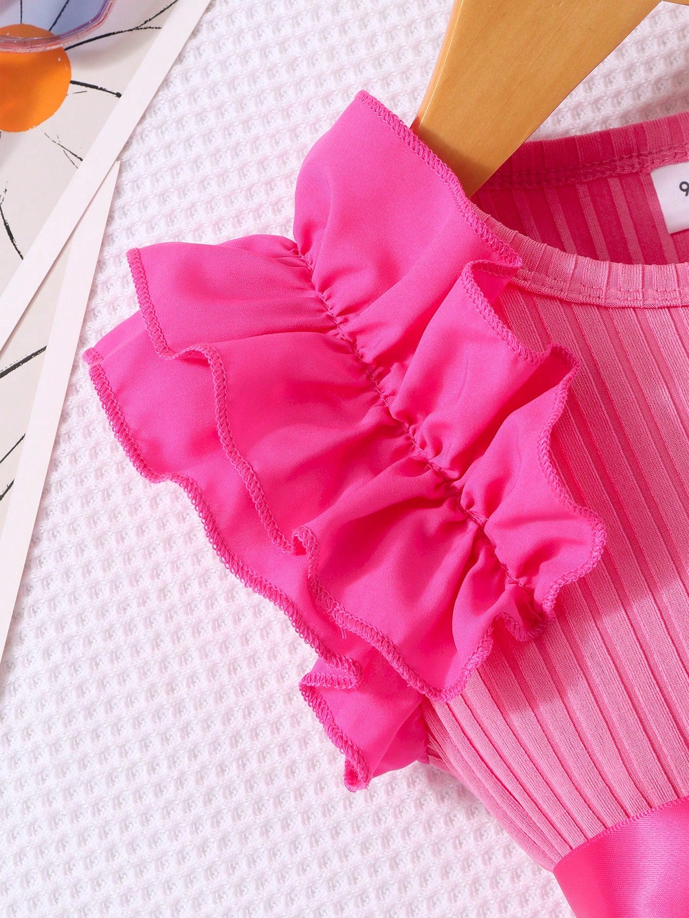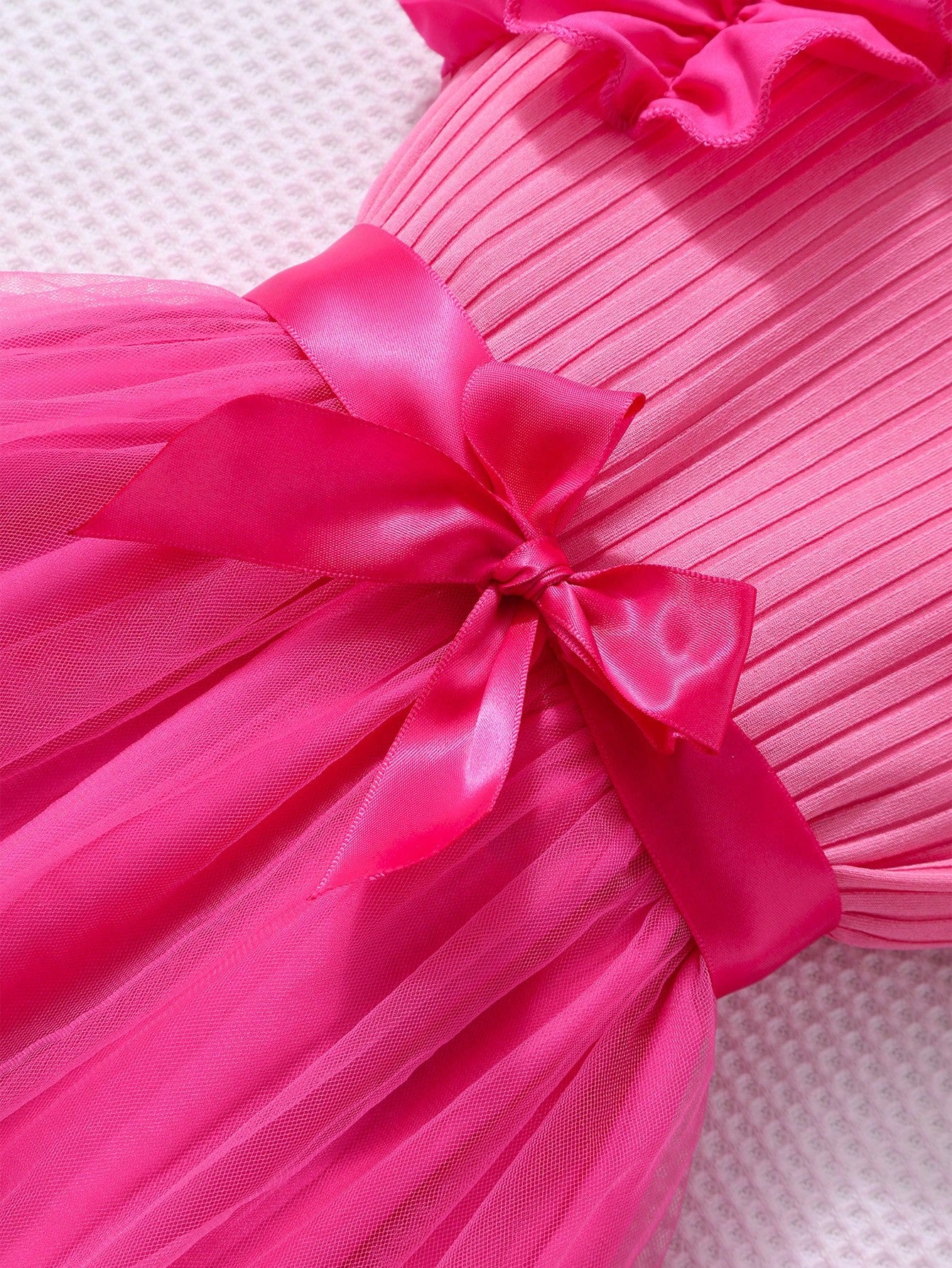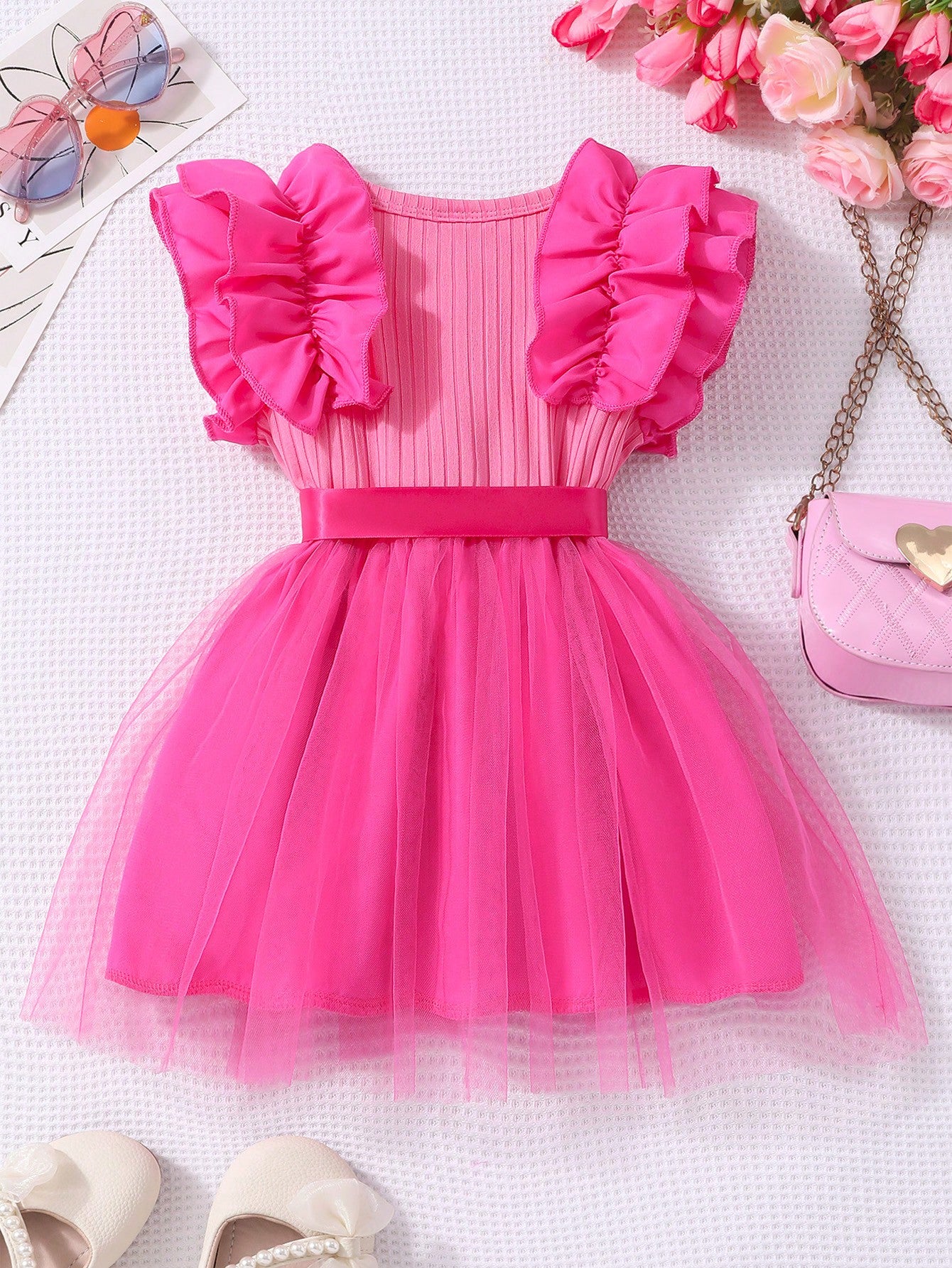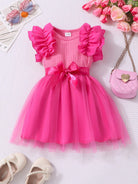 فستان أميرة من Glamorique Kids للبنات الصغيرات، بأكمام قصيرة مكشكشة، وشبكة مضلعة، وياقة دائرية، بدون حزام
