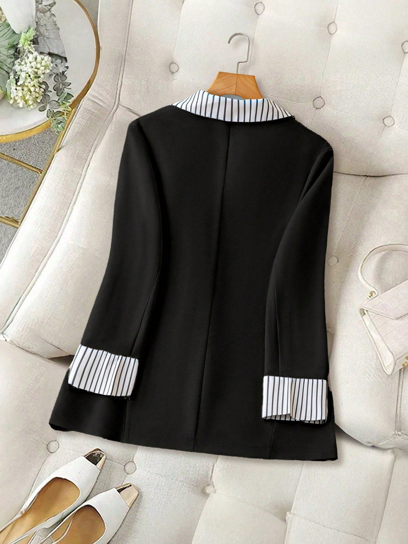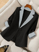 جاكيت بليزر كاجوال مخطط بأكمام طويلة وأزرار من GlowEve CURVE للنساء ذوات المقاسات الكبيرة