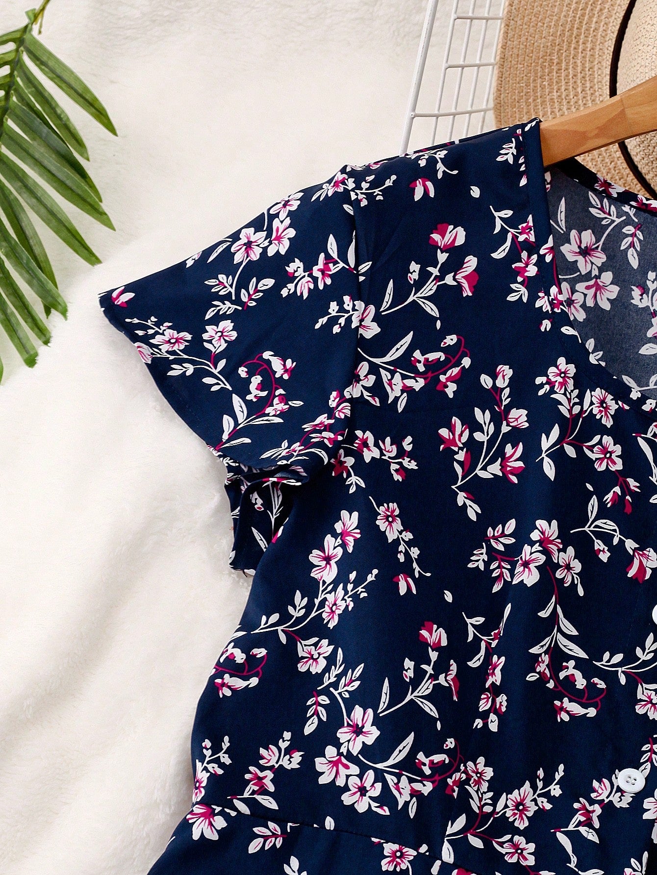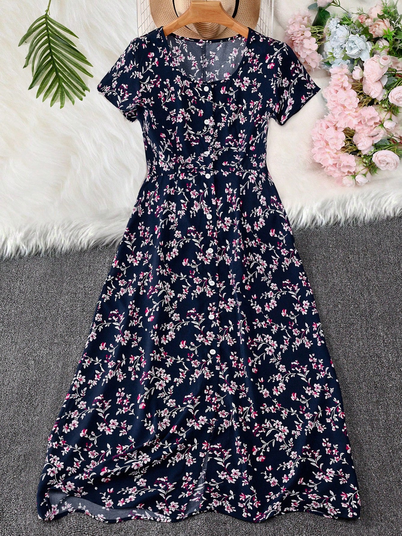 فستان GlowEve متوسط الطول مزين بنقشة زهور صغيرة وأزرار أمامية