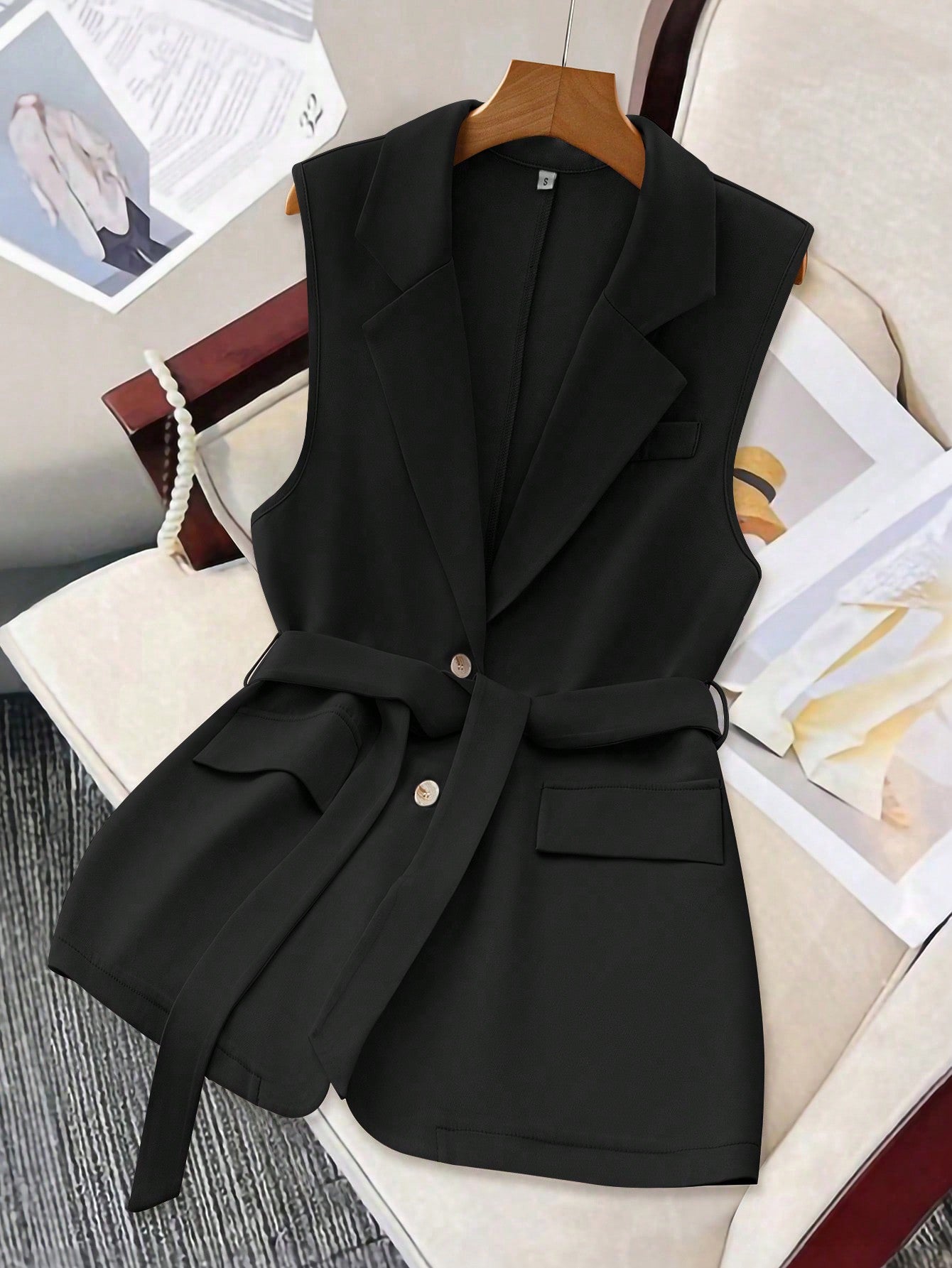 صدرية GlowEve ذات ياقة عريضة وتفاصيل قلابة بدون حزام