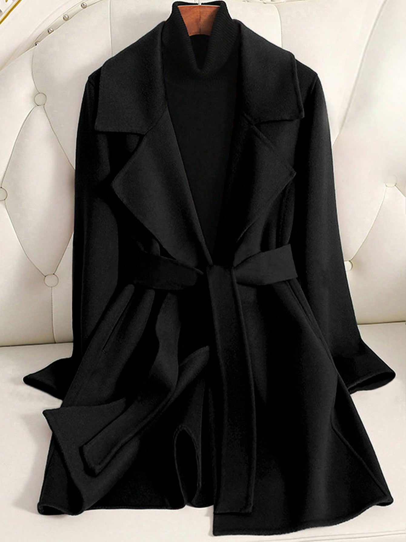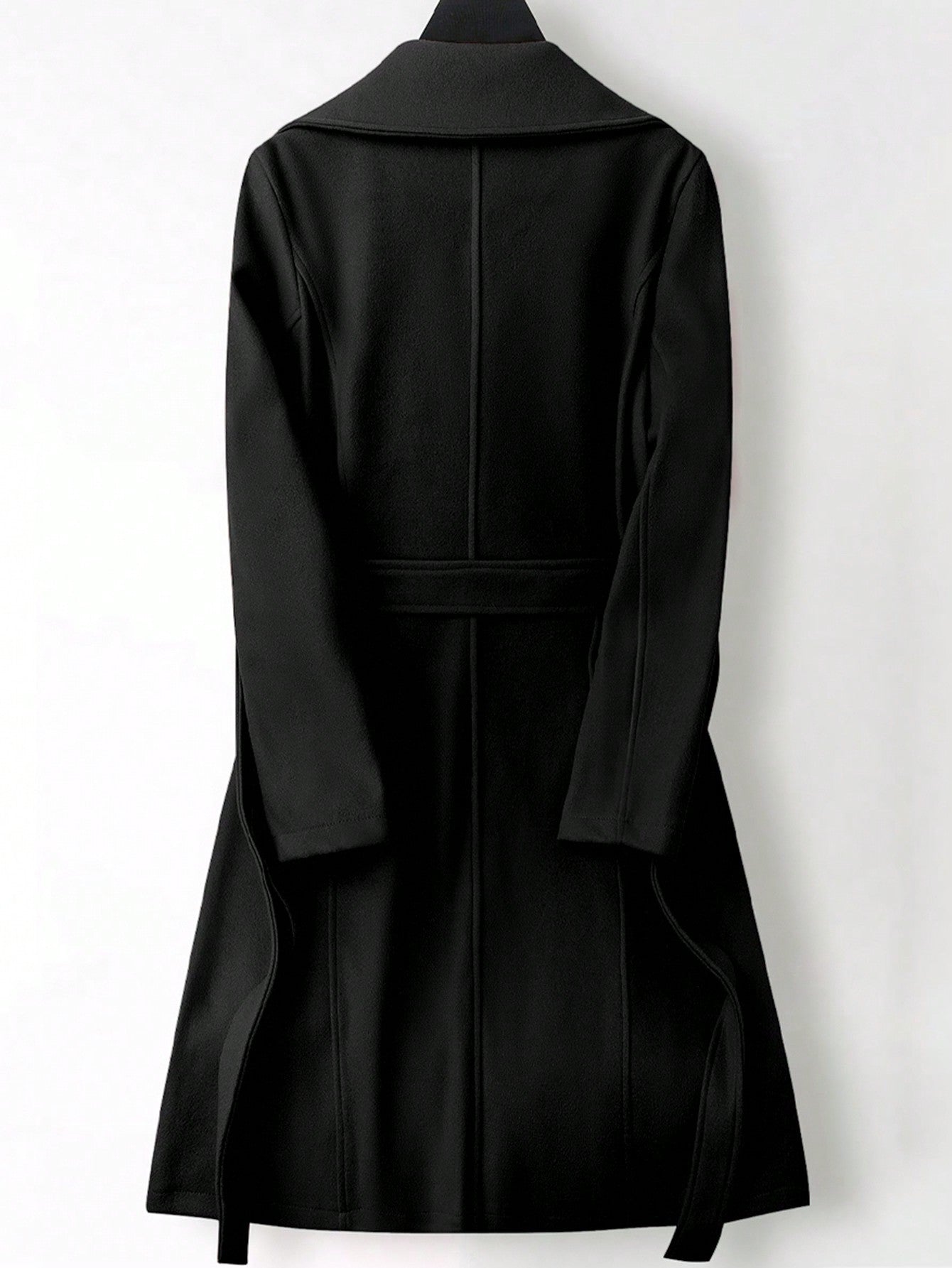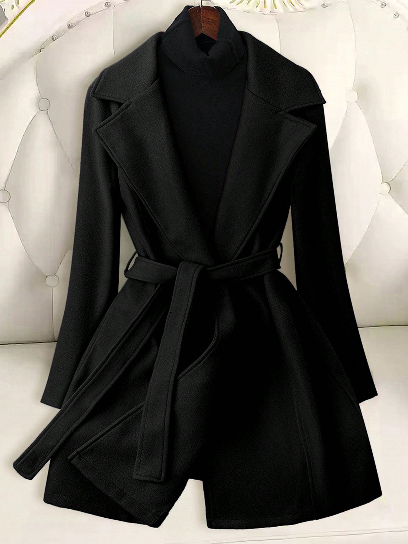 معطف نسائي أنيق بأكمام طويلة وخصر بلون موحد من GlowEve بدون حزام