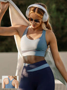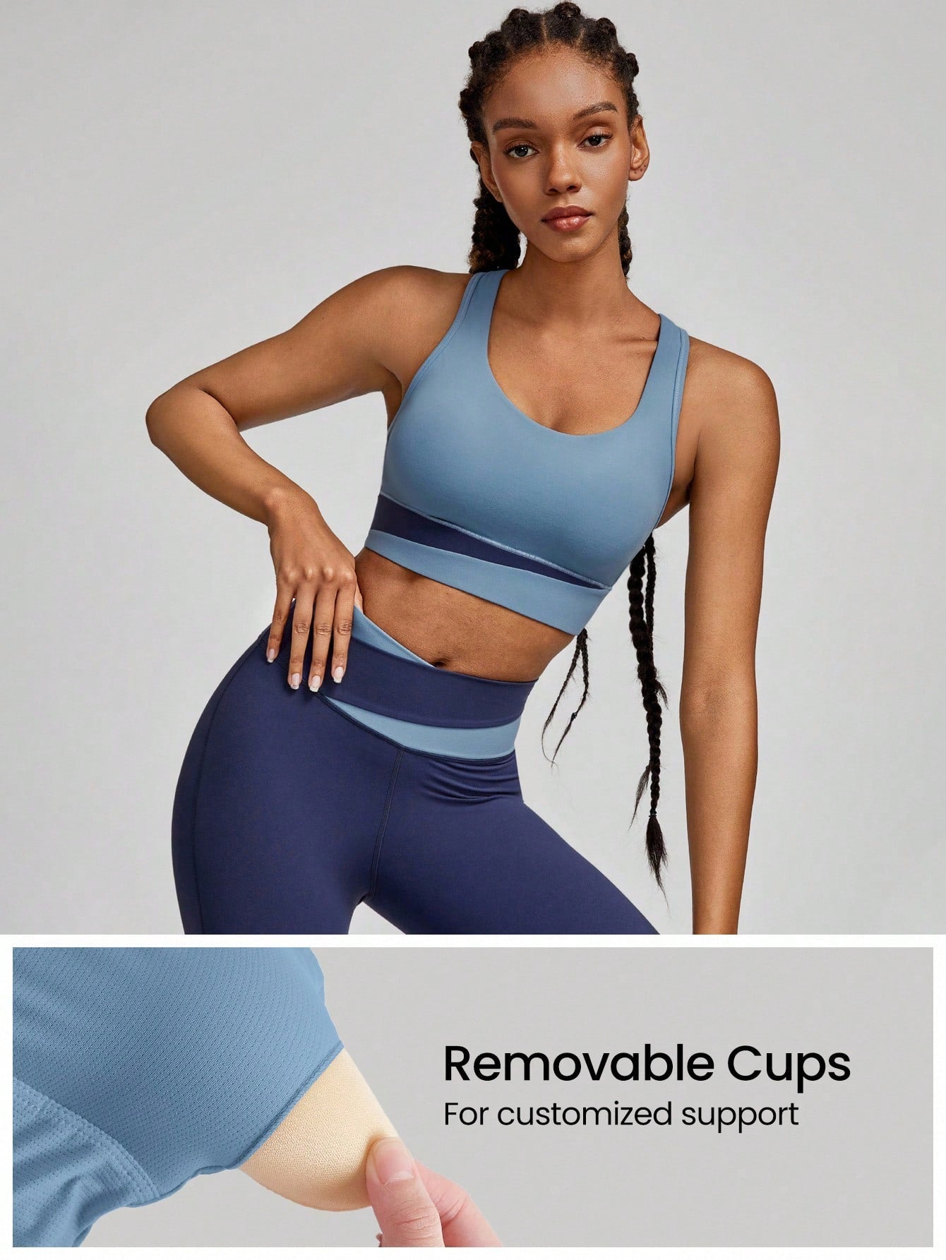 GLOWMODE FeatherFitâ„-Sculpt Two-Tone Sports Bra Medium Impact Workout Daily Gym Fall Winter