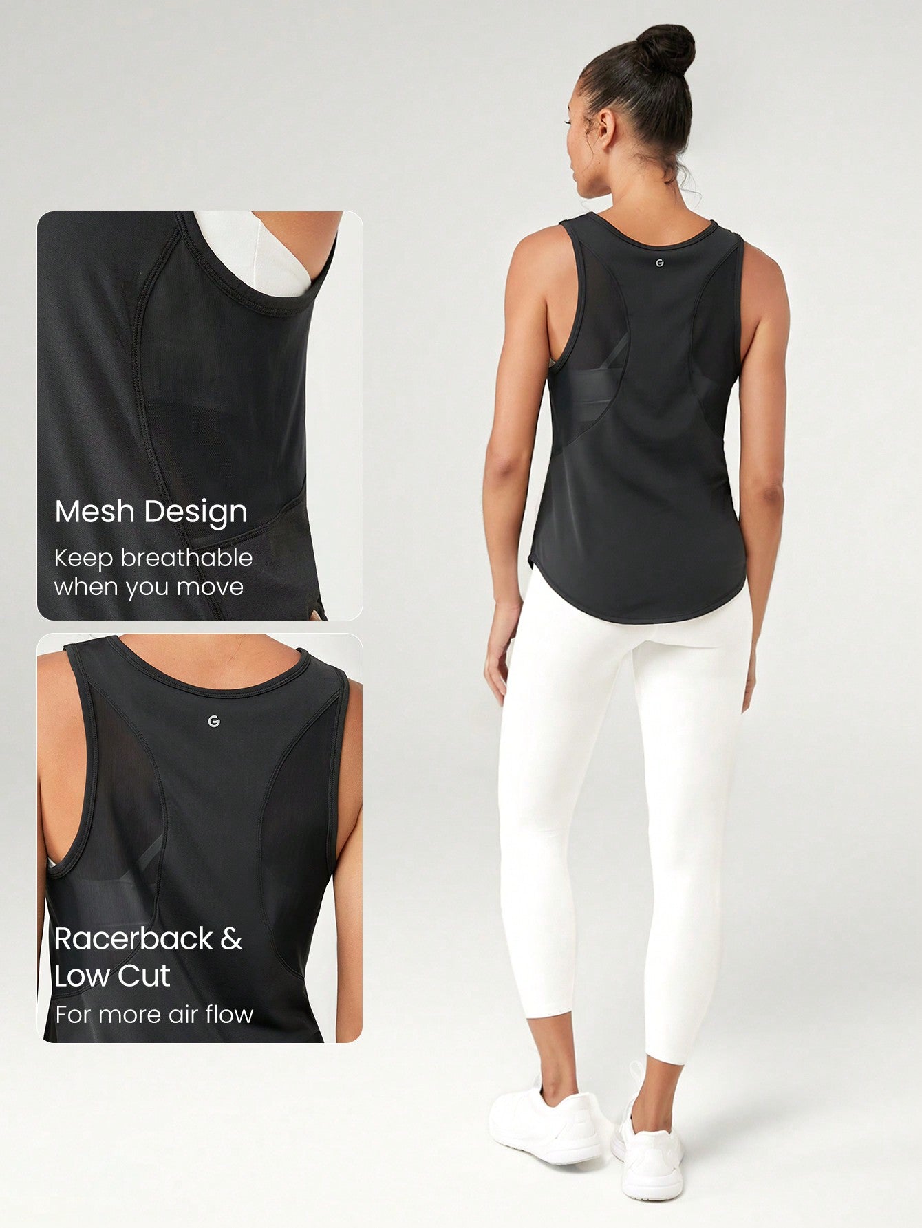 women GLOWMODE Lightweight Gear Up Mesh Curved Hem Tank Top Gym Workout Daily